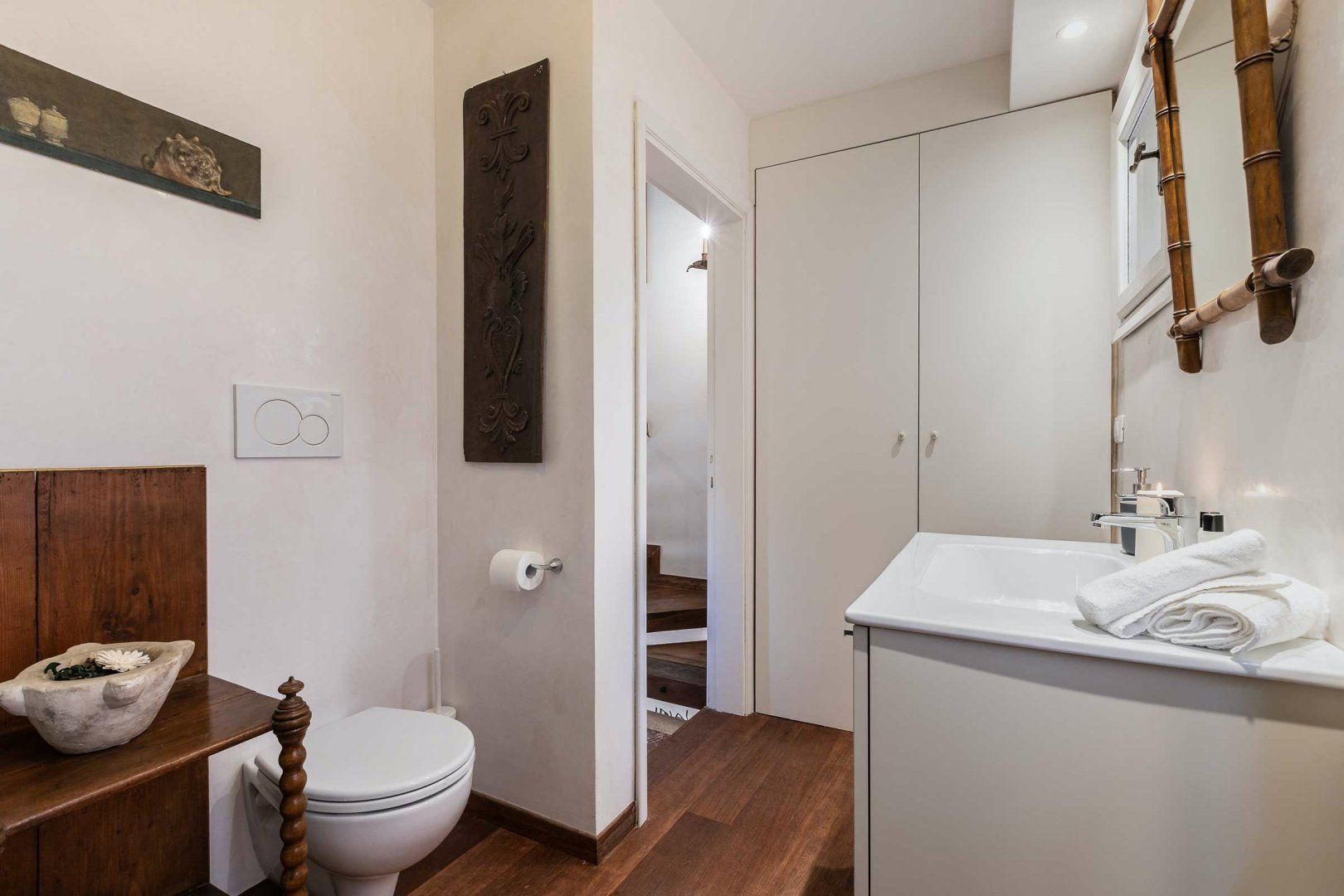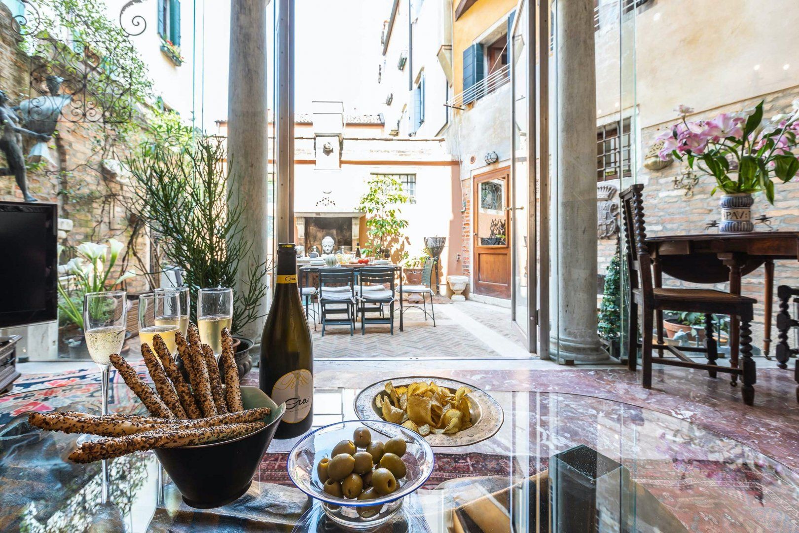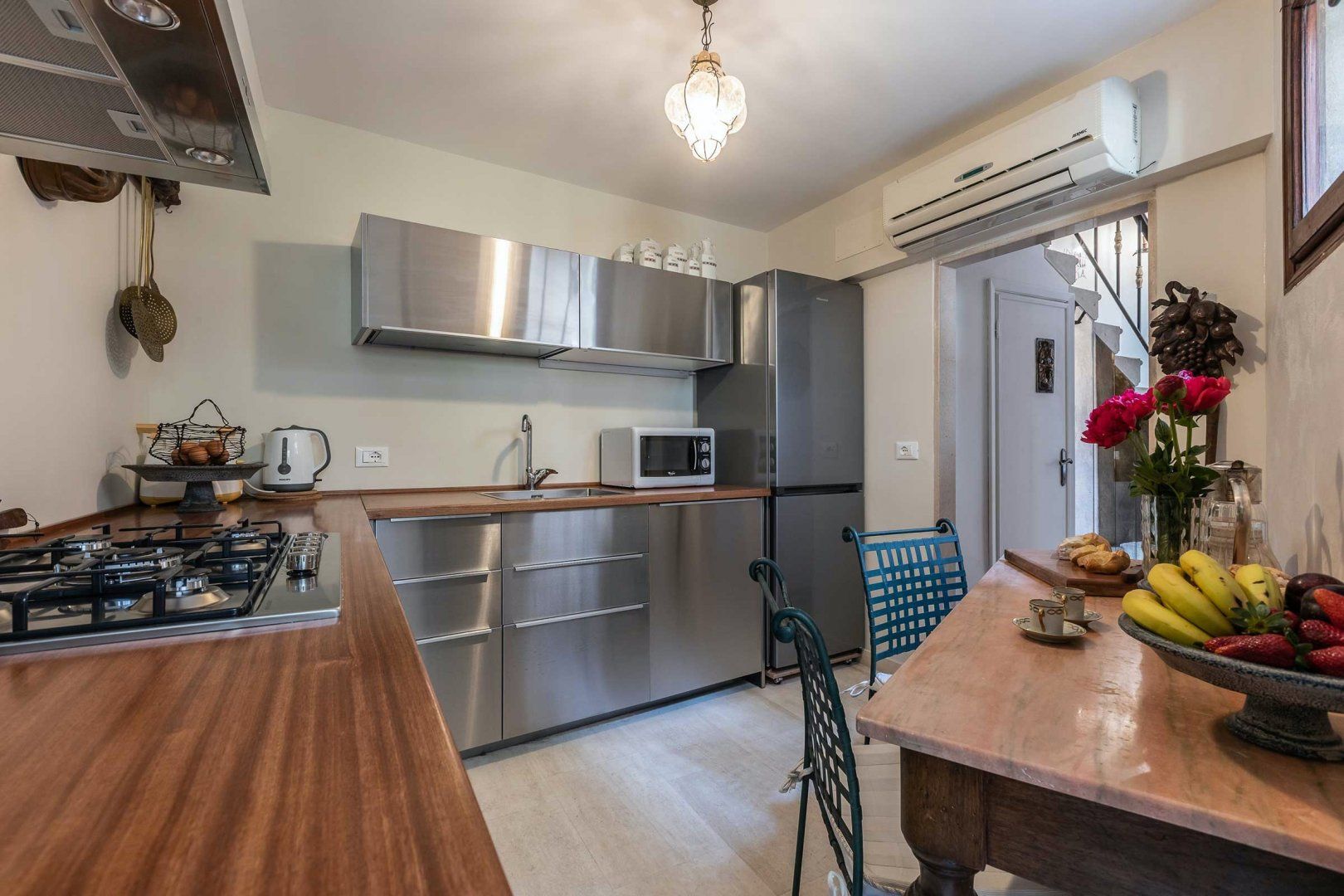 Complete with a four-poster bed, gorgeous little courtyard garden, and striking original stone staircase, this beautiful home feels as though it's been plucked from another era entirely. It offers a great blend of old and new, however, as it is equipped with a wonderfully contemporary kitchen in which we can just imagine whipping up a tasty homecooked meal. The home has been in the same family for generations, and you can really feel the love and care that's gone into maintaining it. The period villa also boasts a great location within the Dorsoduro District close to the Campo Santa Margherita where you will find loads of popular local eateries, bustling bars packed with Venetians, and some cafes perfect for people-watching.