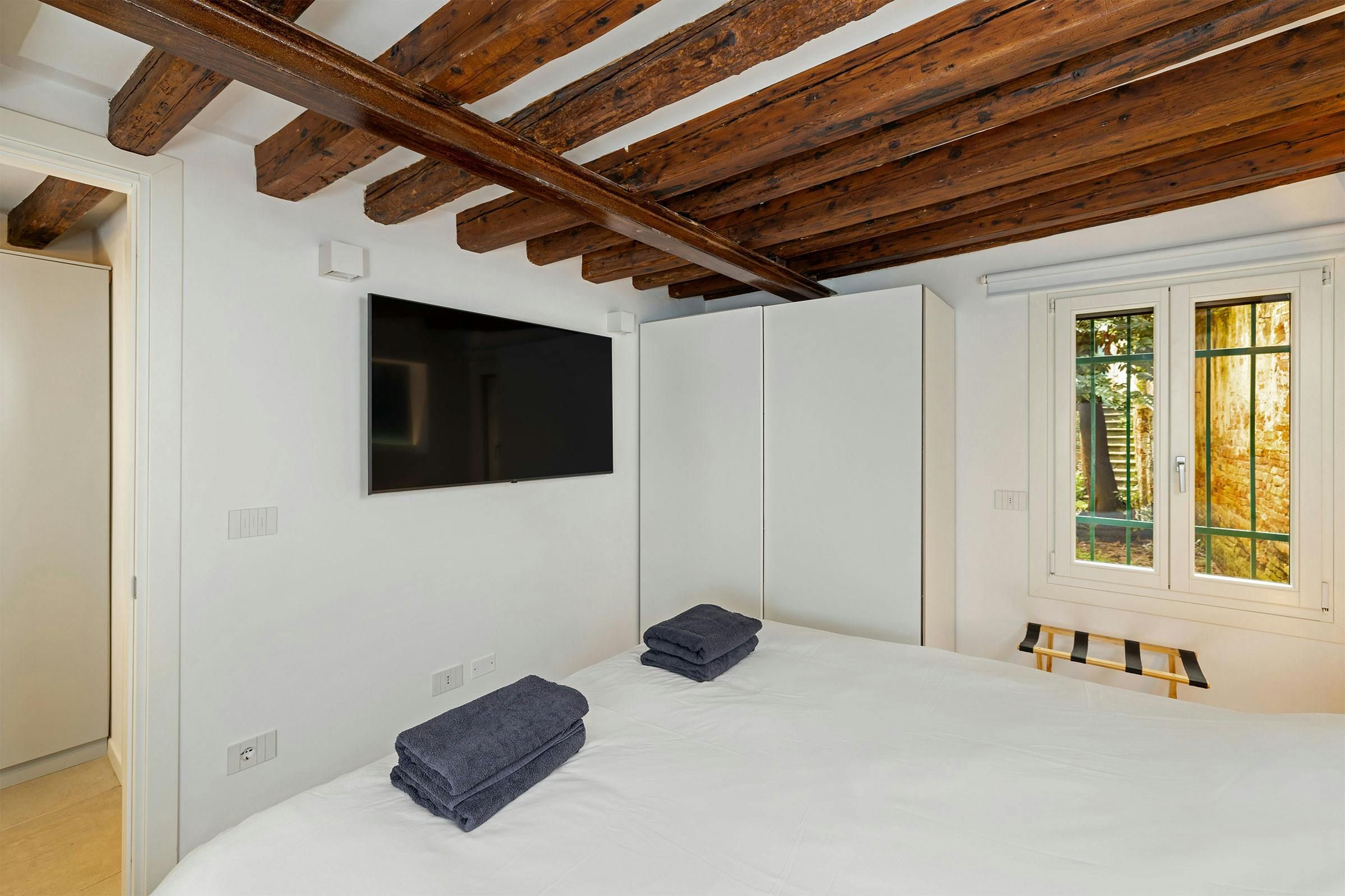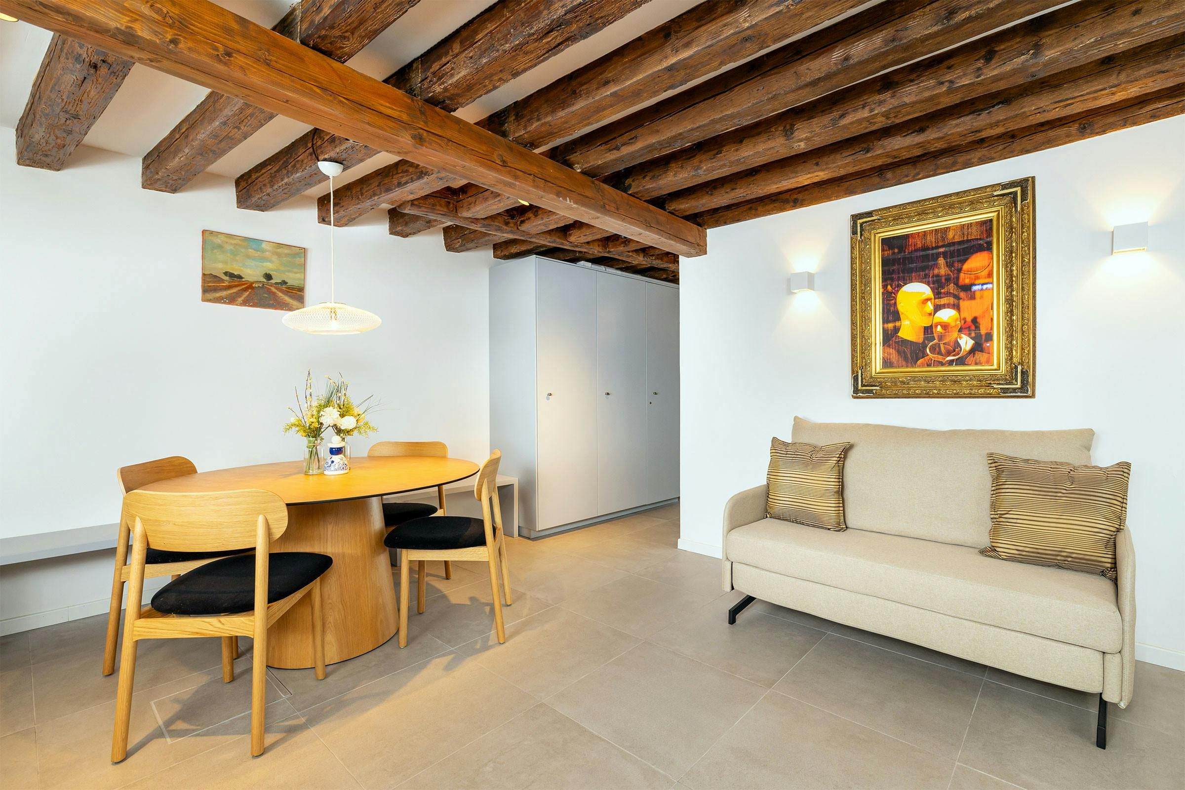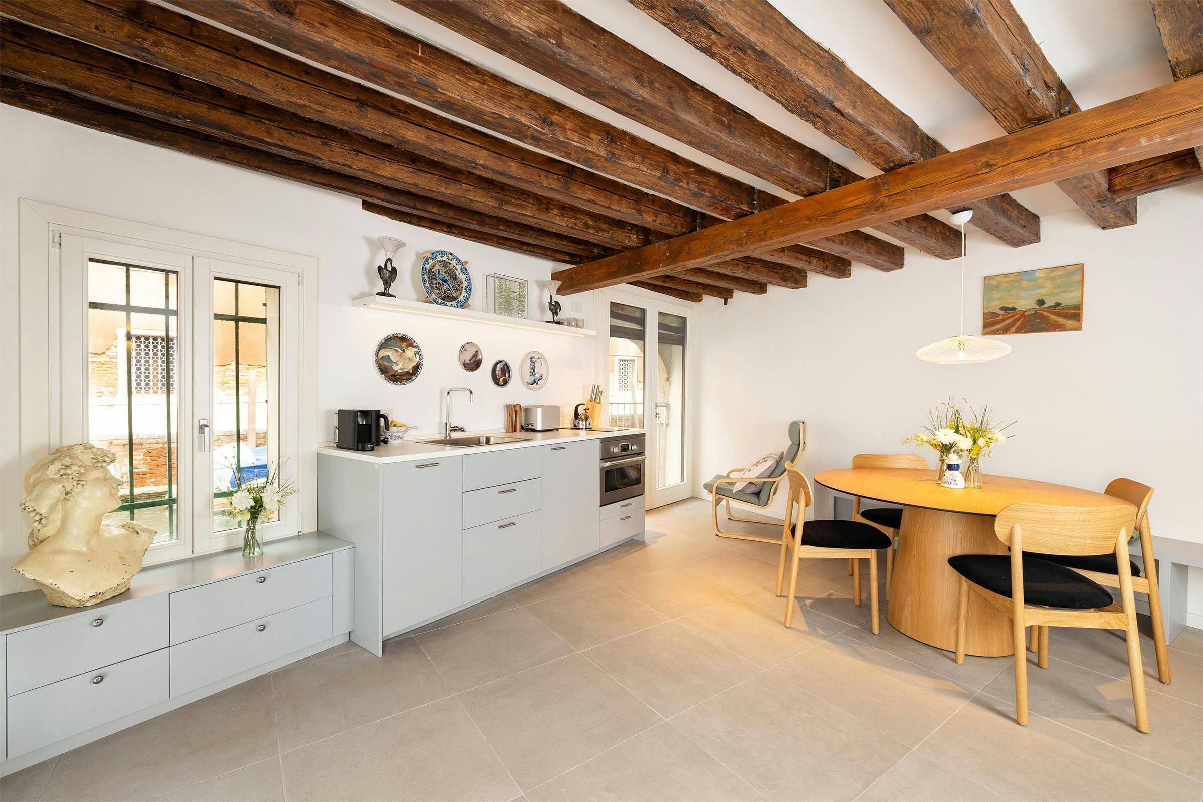 If you're after canal views, this apartment more than delivers. Perch on the chair in the picture window, a glass of wine in hand, and watch the gondolas glide right past – sounds like pure bliss. The scenery is certainly a showstopper, but the rest of the apartment is just as charming. We love the wooden beams and terrazzo Veneziano tiles. And, of course, the location speaks for itself. The famous San Marco Square is a fifteen-minute stroll away, while Cannaregio's canalside eateries are also within easy reach.