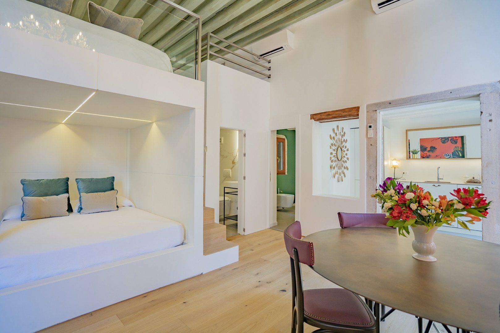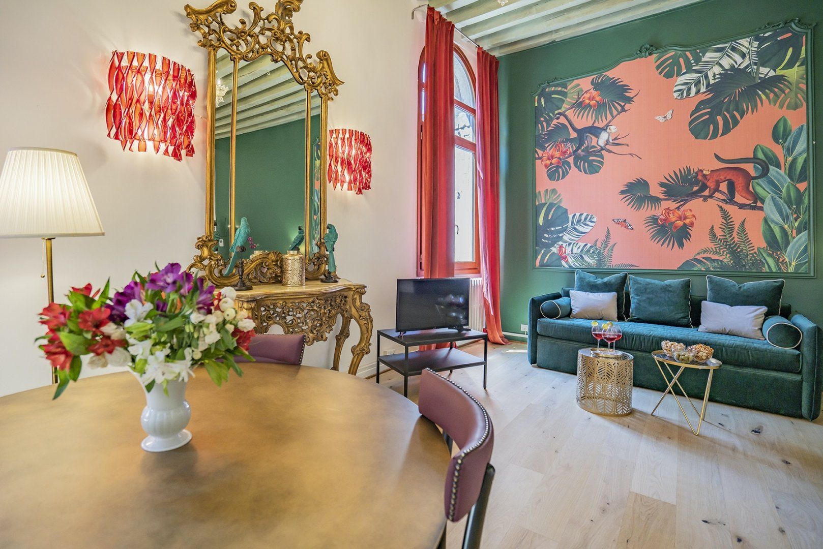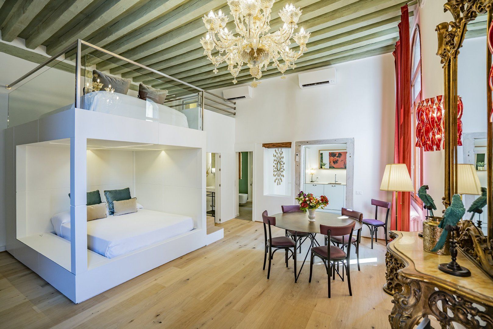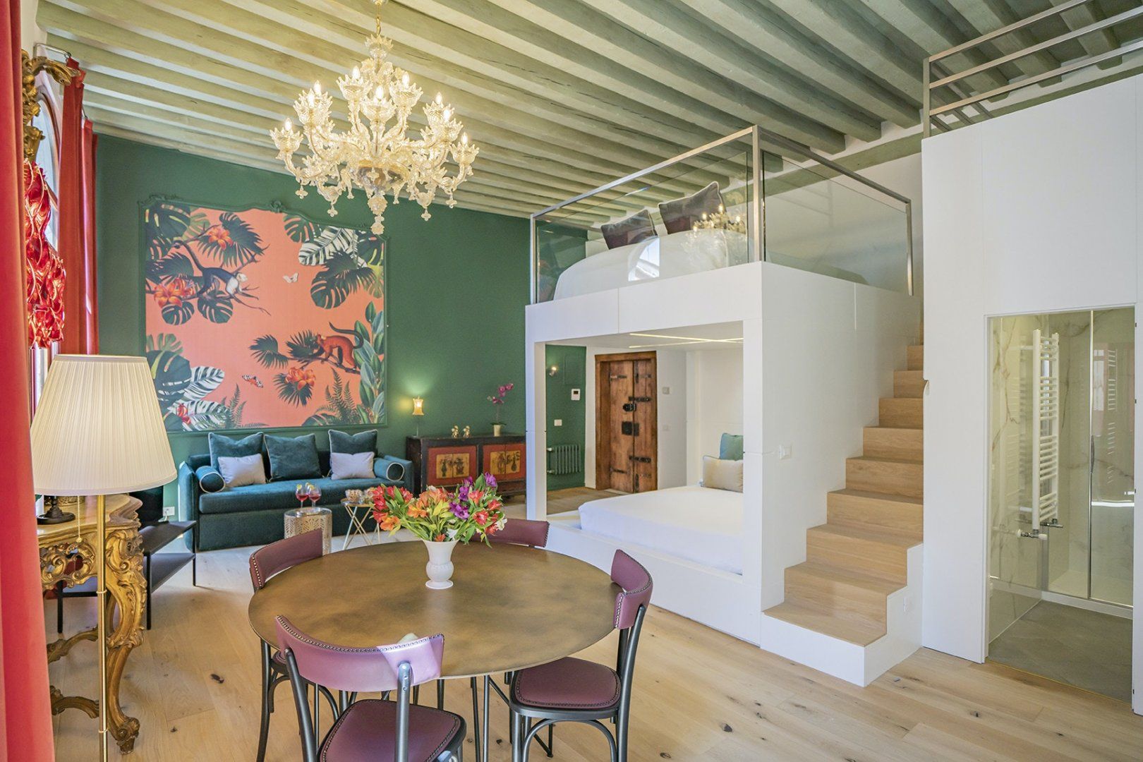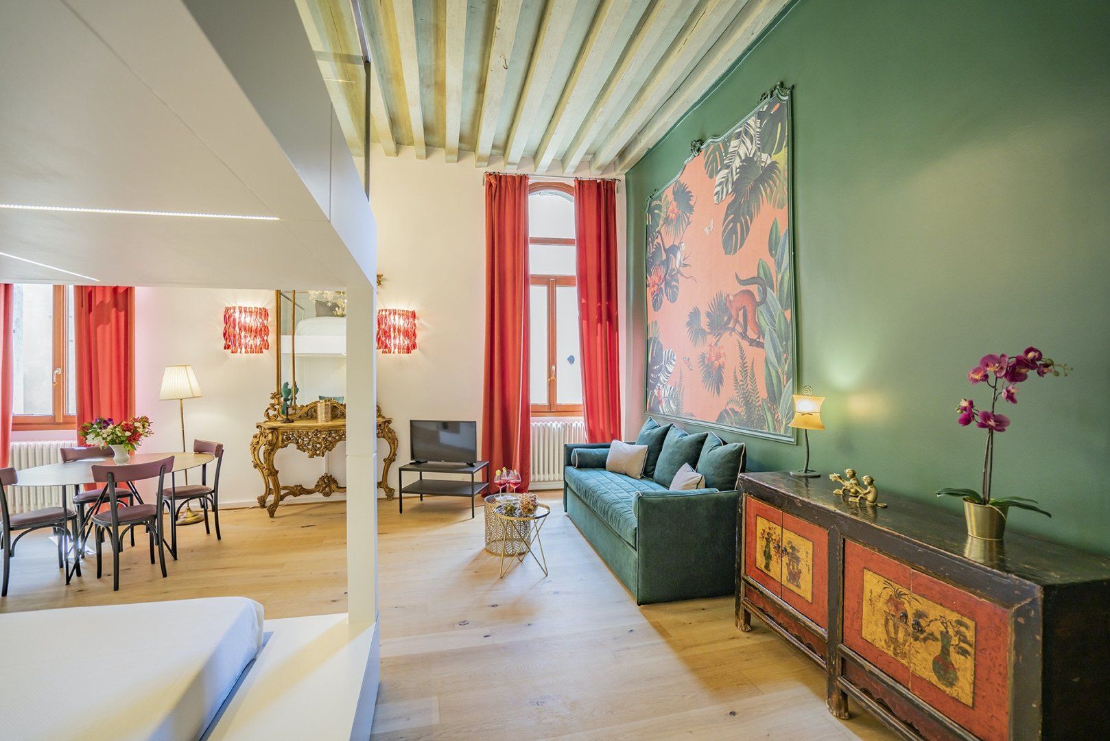 Housed in a historic canal-side palace and just a stone’s throw from the Rialto Bridge, this beautifully curated studio apartment blends luxury and Old World glamour in a dazzlingly modern way.