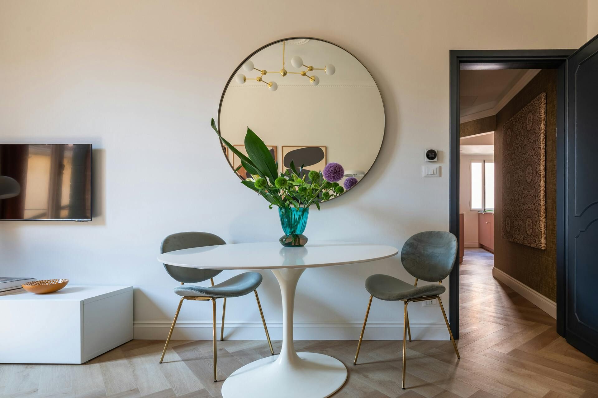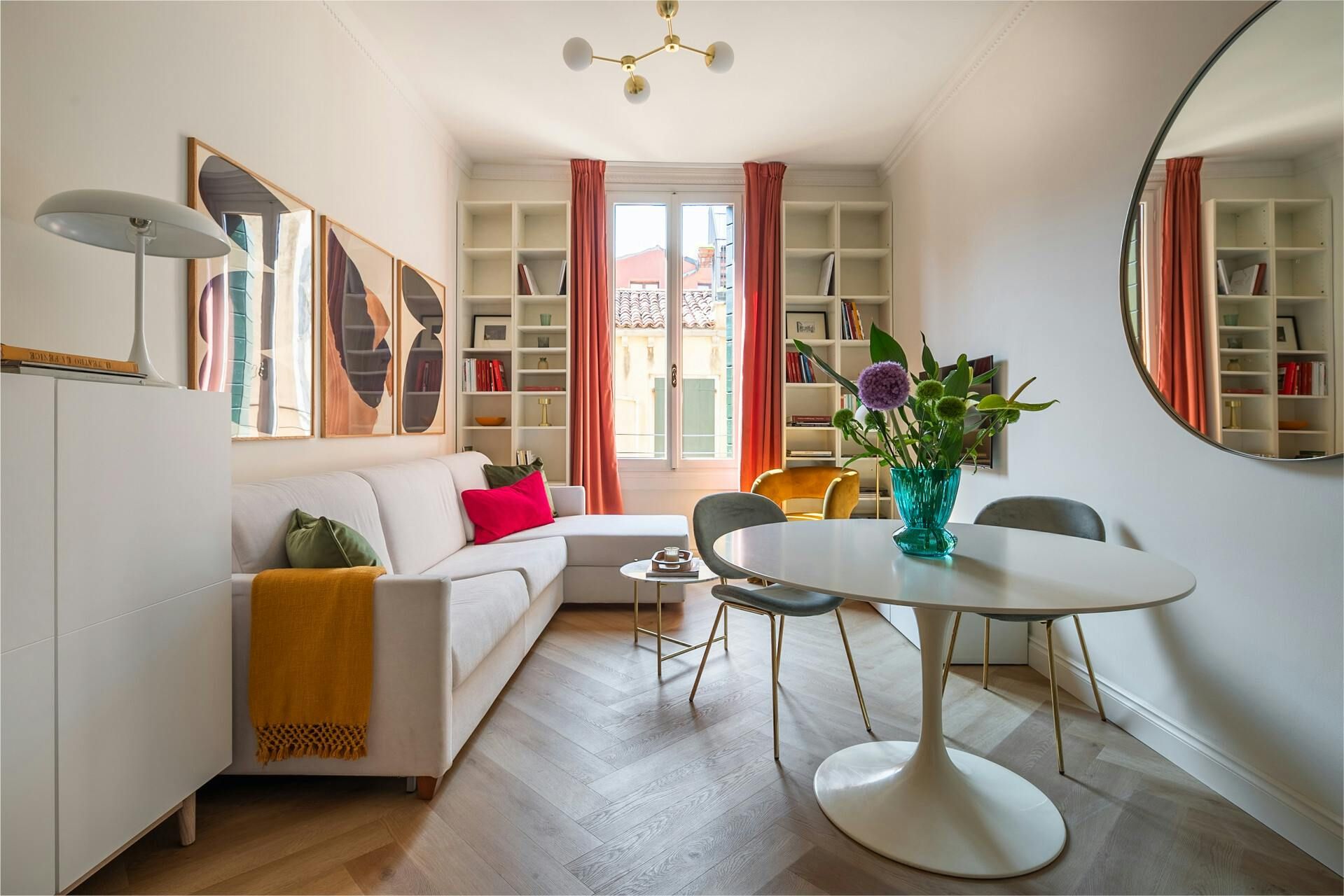 Located just moments from the iconic La Fenice Opera House and five minutes on foot from San Marco Square, this is as central as Venice apartments get. Not that you’d know it – despite its location, guests rave about how quiet it is at night here. Well-suited for a small family or group of friends sharing, there’s a sofa bed in the lounge area to sleep an additional guest. The desk space tucked away in a nook off the bedroom is a bonus, too, for anyone planning to work remotely.