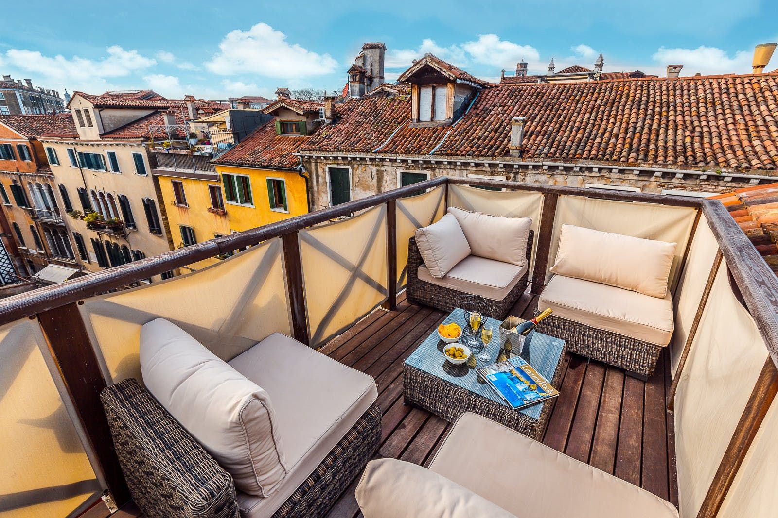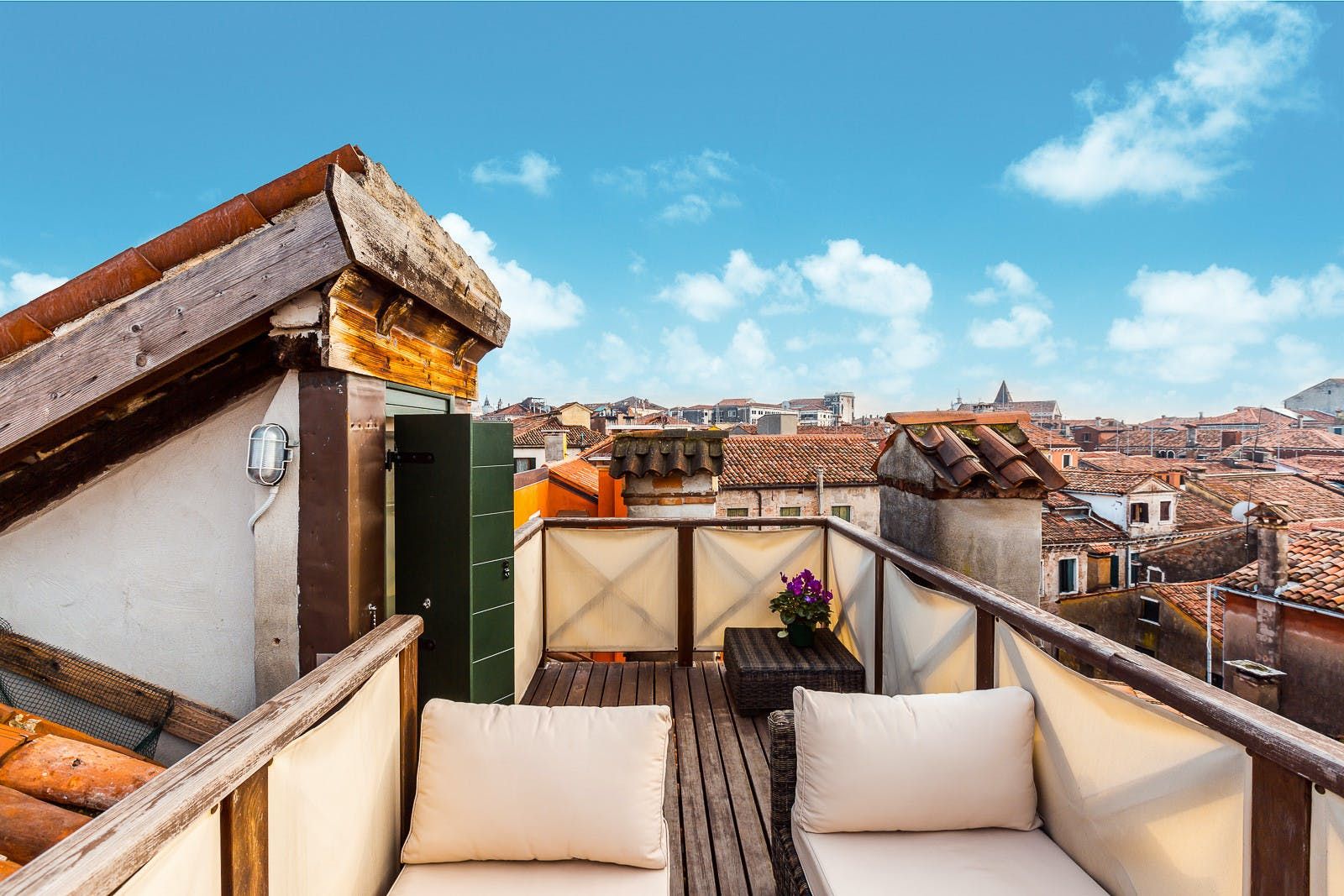 Drop your bags and explore Venice from this charming apartment in the San Samuele district. Located on the third and fourth floors and with its own rooftop terrace (which is on the smaller side but has lovely views), there are a lot of stairs here. Guests with reduced mobility may wish to look elsewhere, but families and friends hoping to make the most of Venice are in luck. It's an easy stroll to a grocery store, wine shop, and a range of cafes. And with several vaporetto (canal boat) stops close by, you'll be exploring the city in no time.