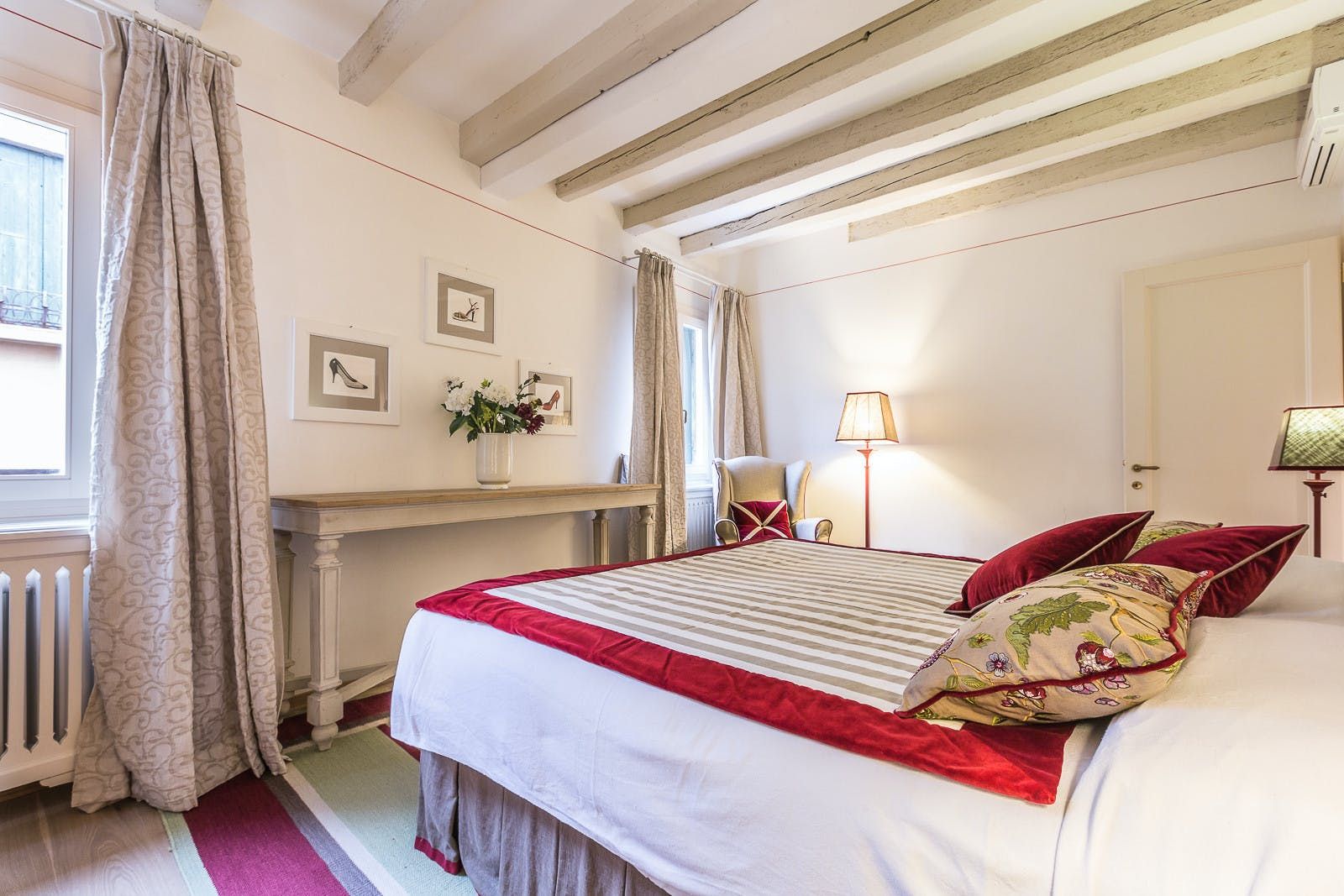 Home truths: *This home is on the third and fourth floors, with a lot of steps to the third bedroom and to the rooftop terrace. The main staircase only has a bannister on one side, so it won't be the best option for those with reduced mobility and small children should be supervised. *Not all bathrooms are pictured, but we expect consistency in quality and style throughout. *Given the home's central spot, expect to hear some street noise. *No cars are allowed in Venice, but you'll be close to the water bus stops for easy travel around the city. *The ceiling in some areas is on the low side. It might not be suitable for taller guests. *The traditional decor here may not be to everyone's taste.