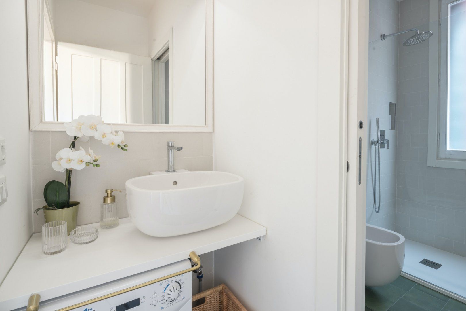 When you return home after a day on your feet, you’ll love being invited back by the tall ceilings and gorgeous parquet floors, illuminated by the arched windows. Every corner of this home exudes elegance, drawing on the timeless charm of Venice. Here, you can be inspired by the city from your own space and find the beauty in the little things – whether that’s journalling beside the window, trying your hand at a local dish in the kitchen, or sharing a bottle of wine around the wooden dining table.