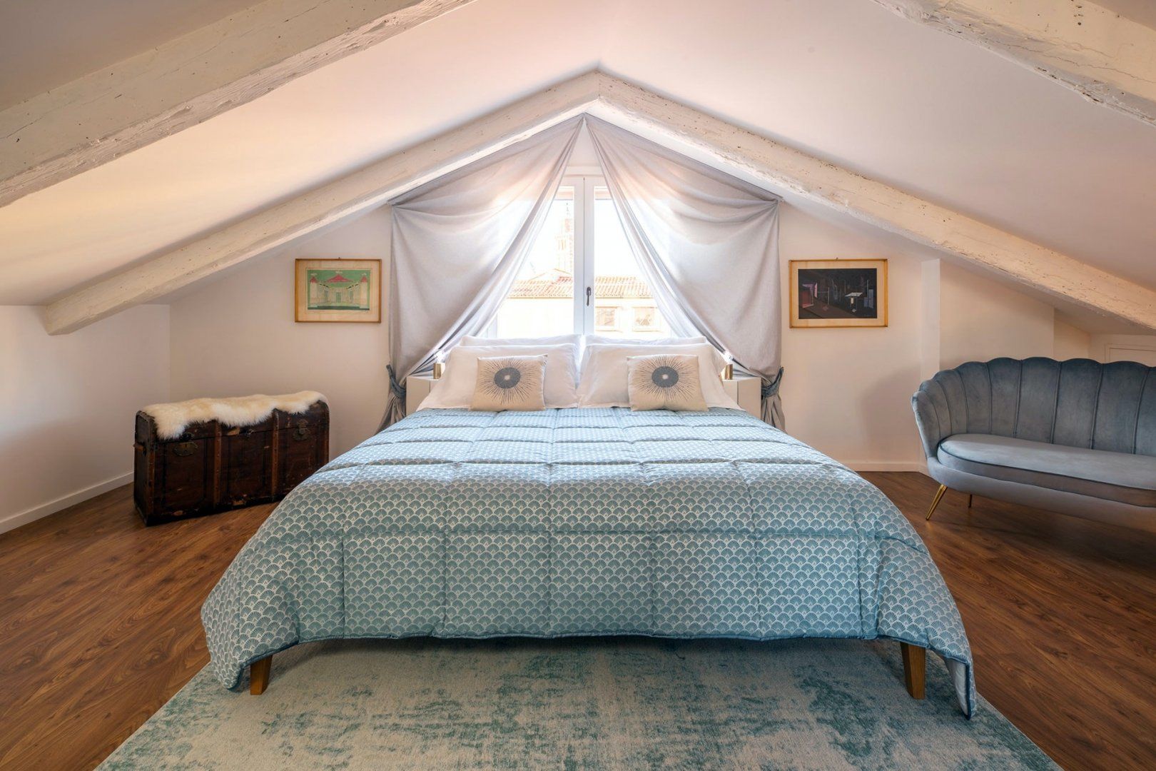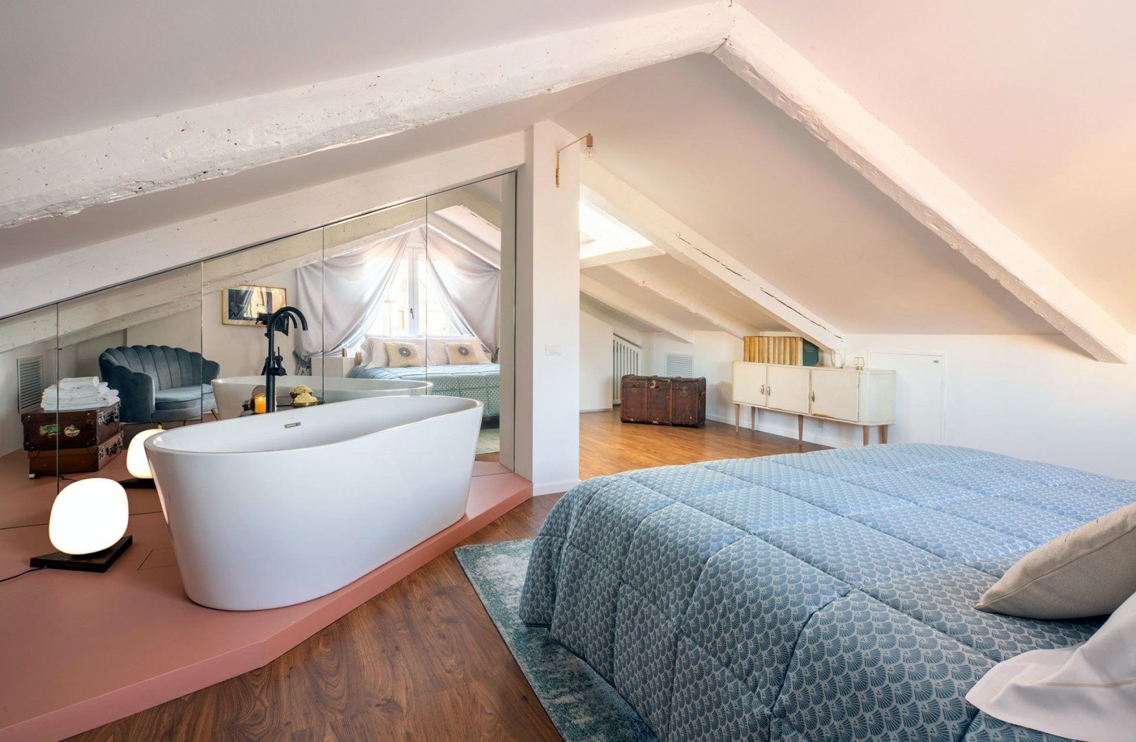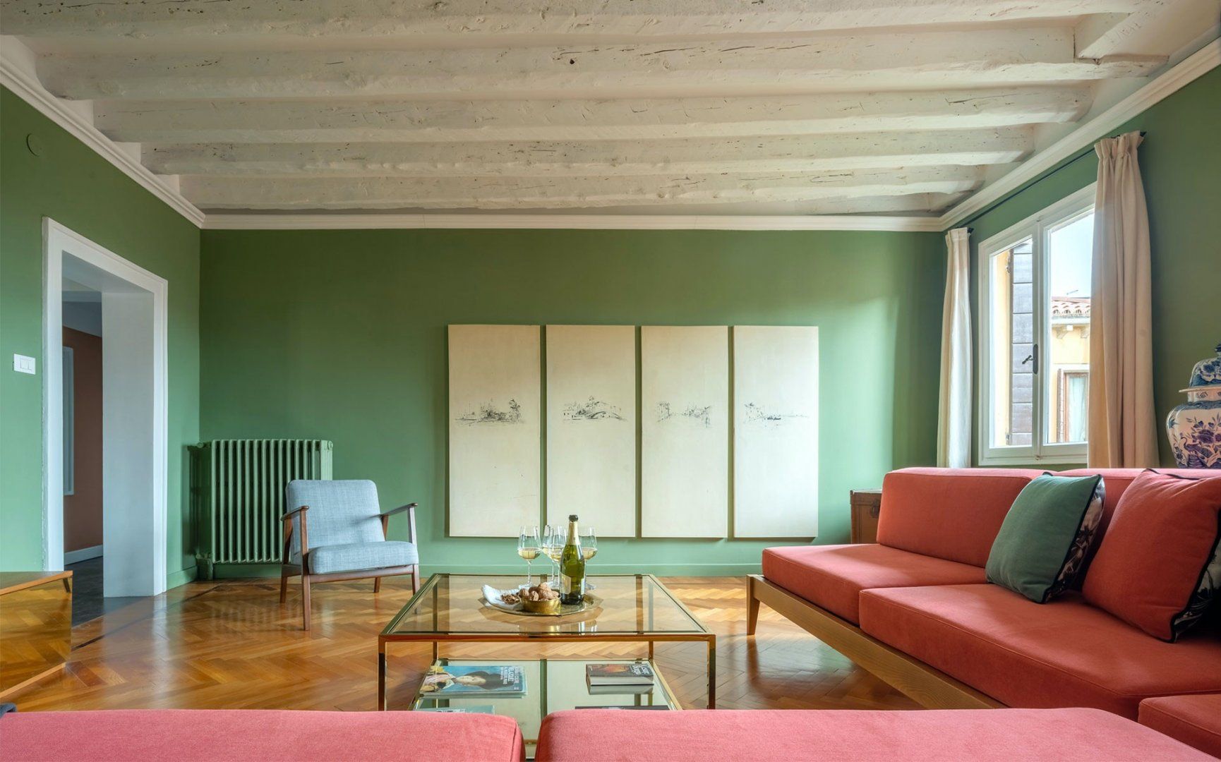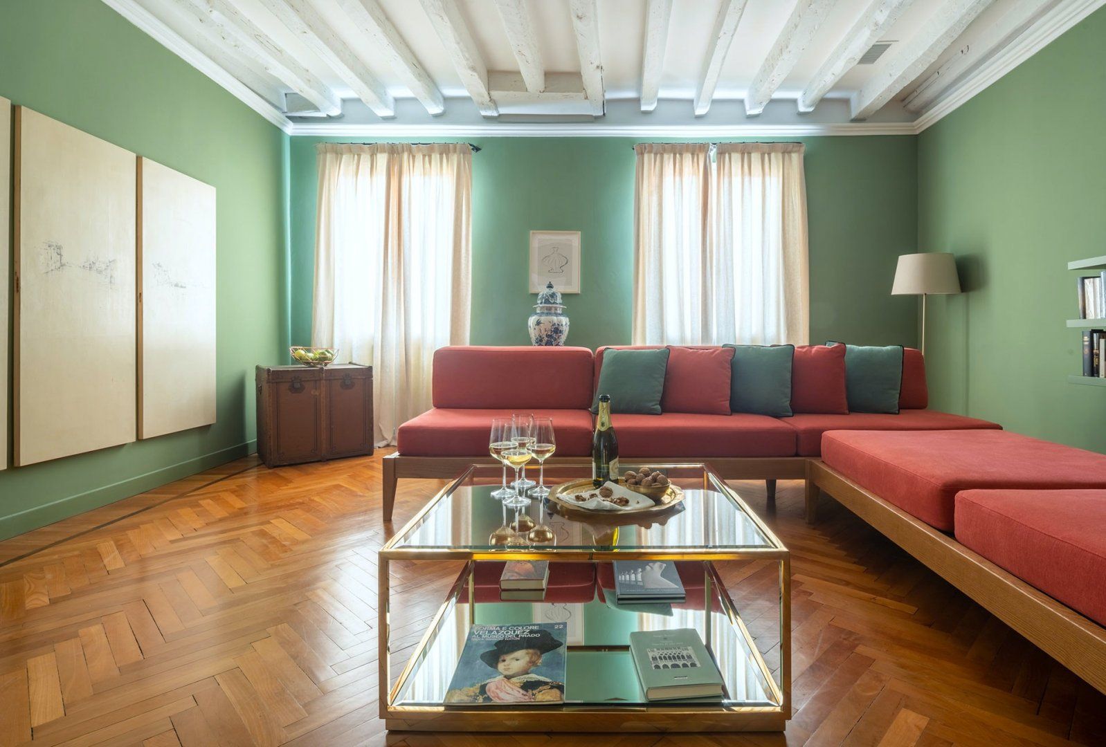 Situated within the calmer San Marco district, this contemporary apartment is curated with accents of mid-century furniture – creating a relaxing base for exploring Venice. While the home can sleep five guests comfortably, the walk-through bedroom may be better suited to families. We love the master bedroom tucked away in the loft – from where you can enjoy panoramic views of San Marco from the freestanding bathtub. The Fenice Theatre is just opposite the apartment, and with a Vaporetto stop a three-minute walk away, you can travel across the city with ease.