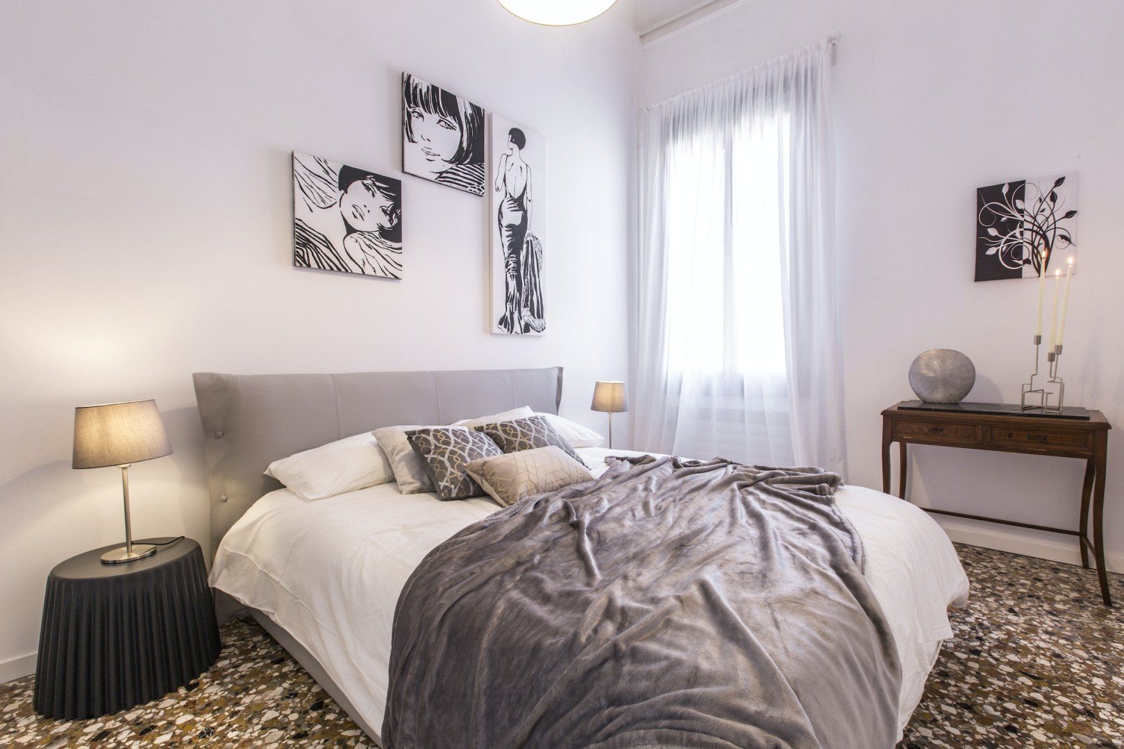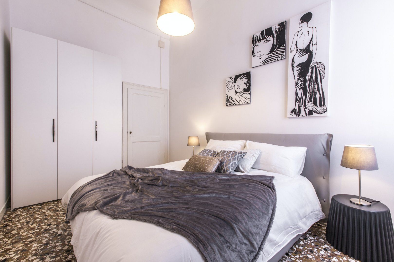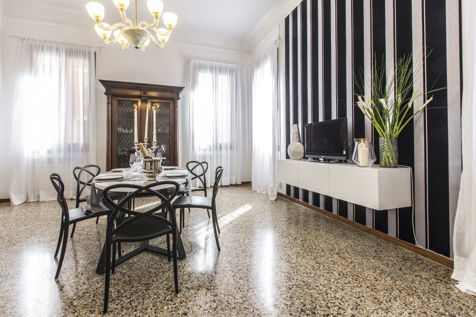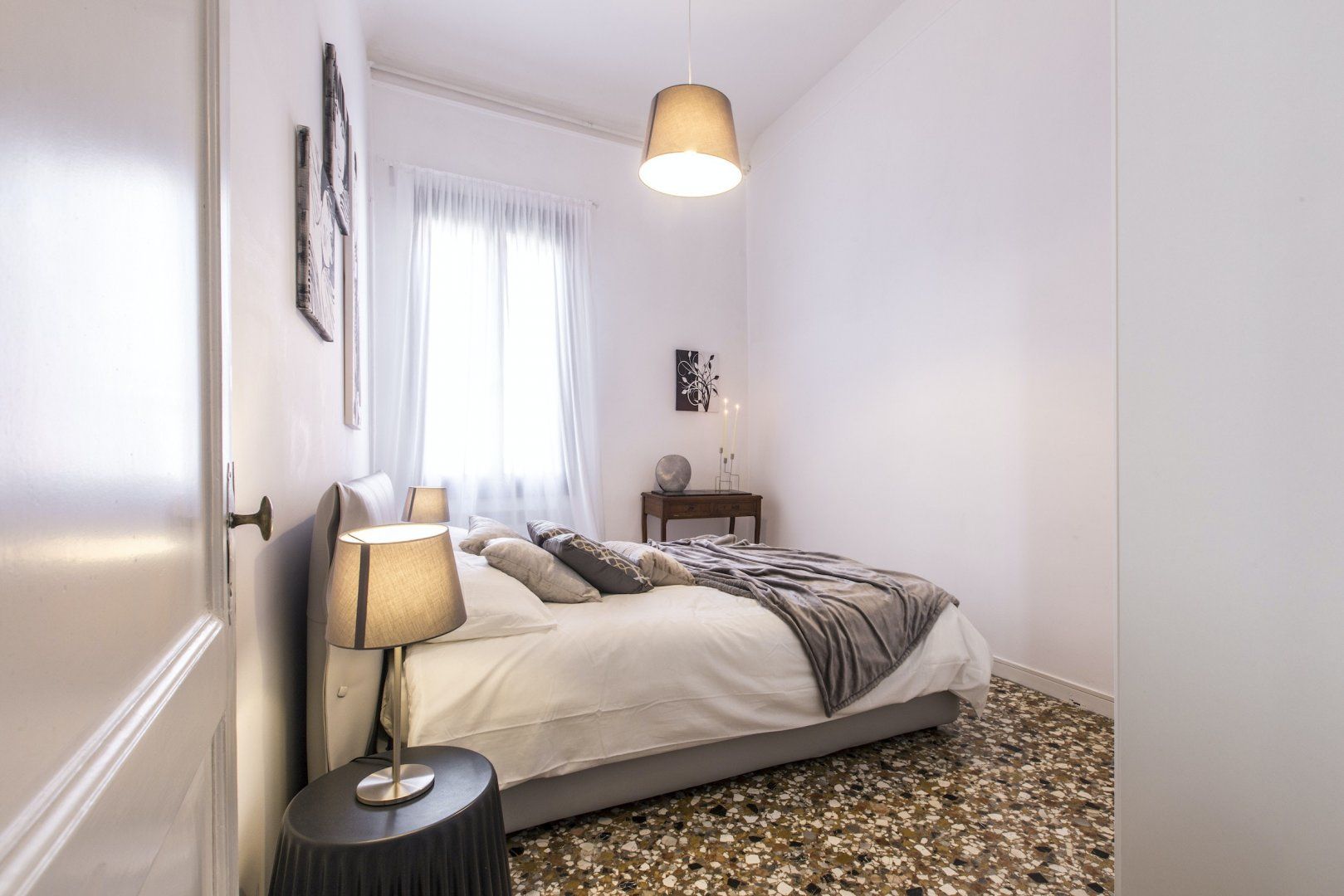 We simply love the cool monochrome palette, and think it contrasts wonderfully with the accents of the original dark wood features and the traditional marble flooring which give the space character. We're already imagining ourselves sipping Aperol Spritz in the grand living spaces before heading out to sample the fayre in some of the nearby eateries. Or, for something more low-key, perhaps enjoying a homecooked meal filled with rich Italian flavours in the elegant dining area.