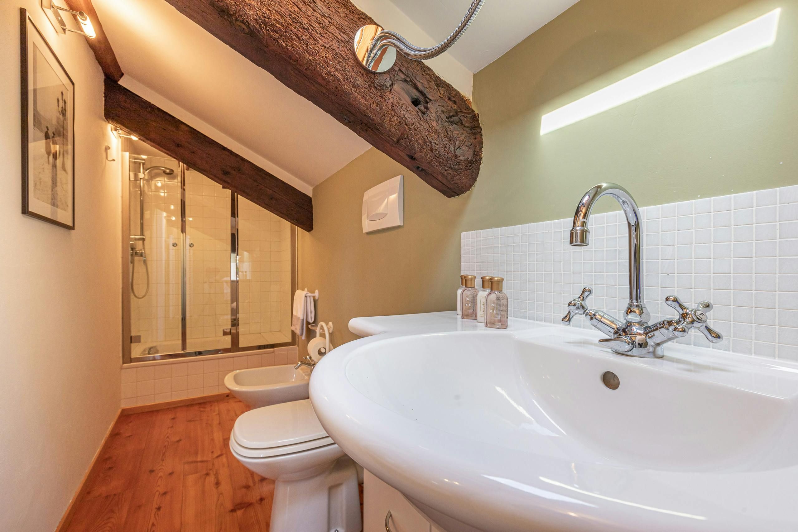 Home truths: *There's no lift here. You'll need to be able to climb stairs to reach the entrance of the home. The third bedroom is also accessed via the terrace, which is up another flight of steps. *The terrace is high up. It wouldn't be suitable for someone who has a fear of heights, and any young children need to be supervised at all times. *Toiletries aren't provided, so you'll need to bring your own. If you want to stock up on arrival, the nearest supermarket is a short walk away. *Given the central spot, expect to hear some noise throughout your stay. *There's a ground-floor laundry room here that may be shared with other guests. *You won't need a car in Venice. Instead of driving, explore on foot.