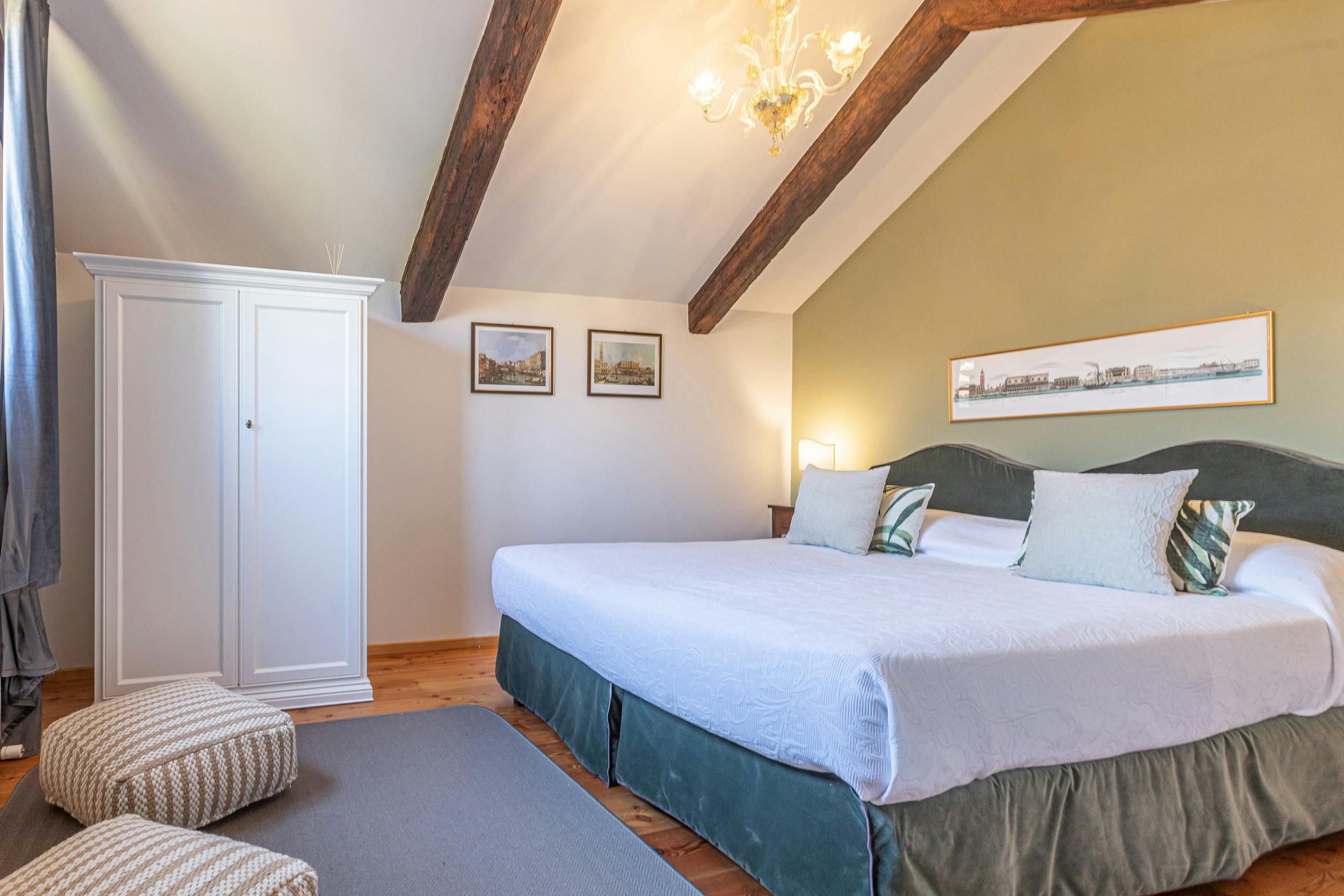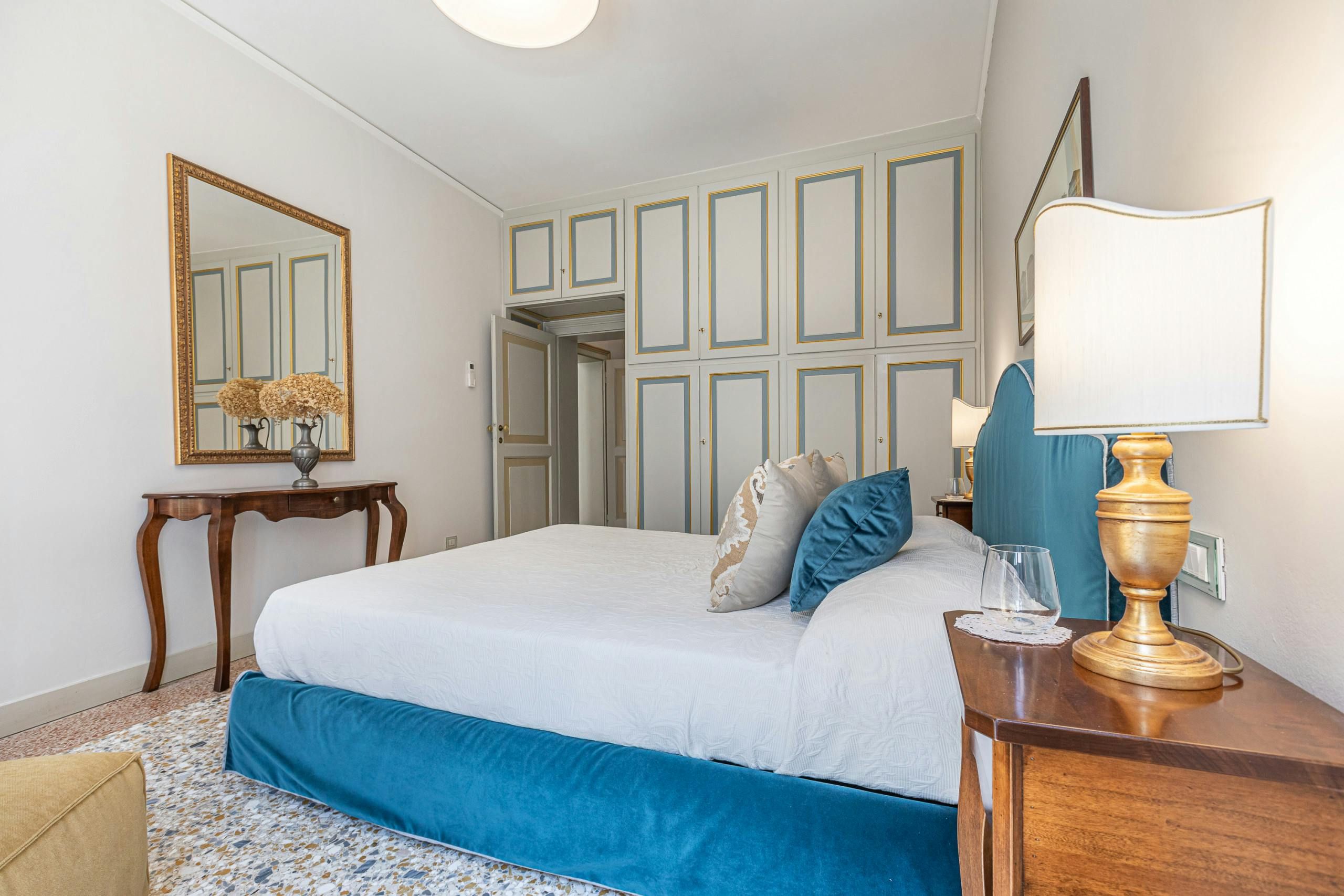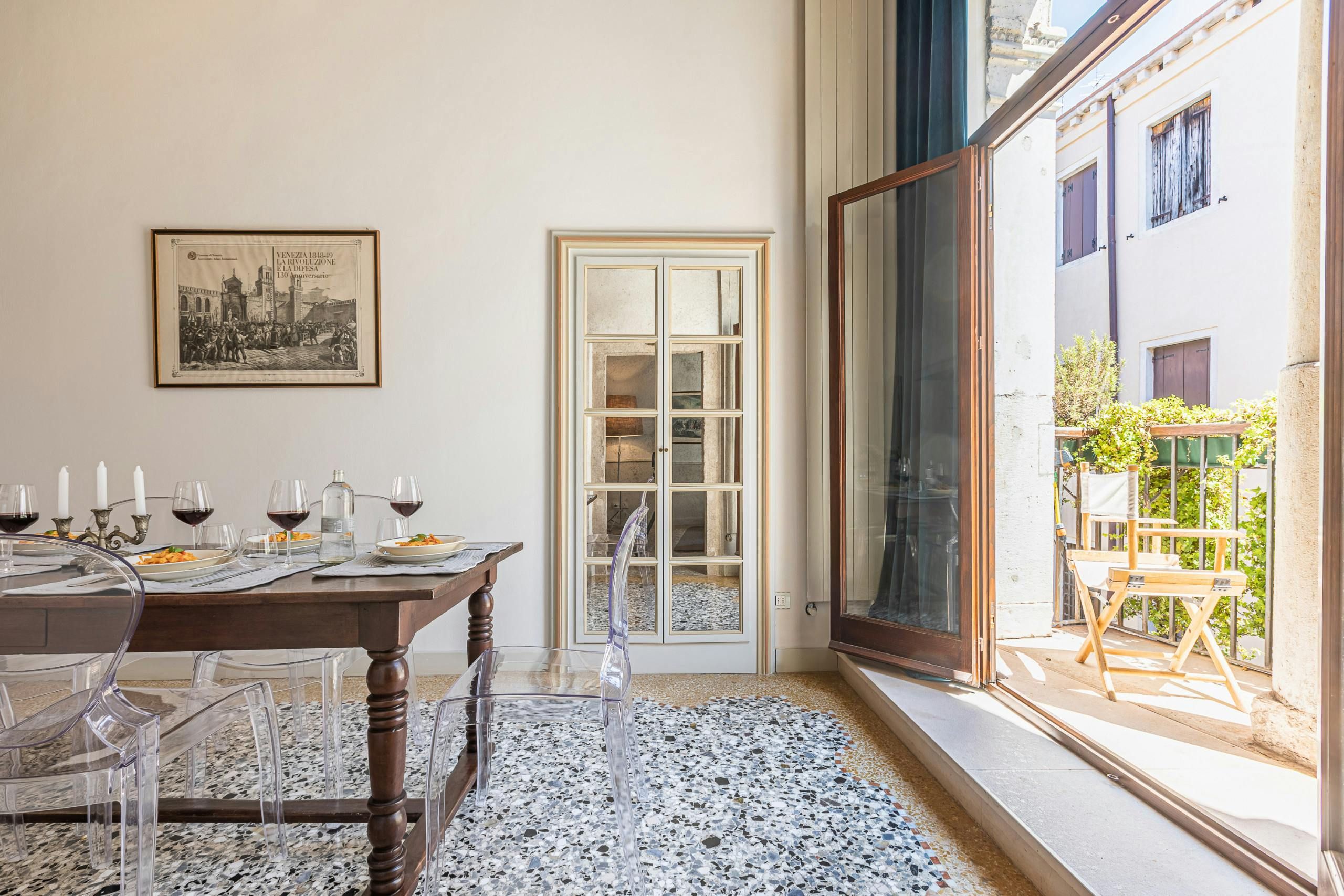 What's a Venice home without bewitching canal views? Nestled in the artsy Dorsoduro district and spread over two floors, this home is perfect for couples who want their own space when travelling with others. We're swooning over the traditional Venetian decor, as well as the ivy-covered Juliet balcony that overlooks the bridges on Rio Del Malpaga. However, it's the rooftop terrace that first grabbed our attention here – a perfect spot for afternoon cocktails in the sunshine. After a few of those, take a short stroll over to the nearby trendy bars and restaurants or spend the day exploring the city on foot – there's plenty within walking distance.