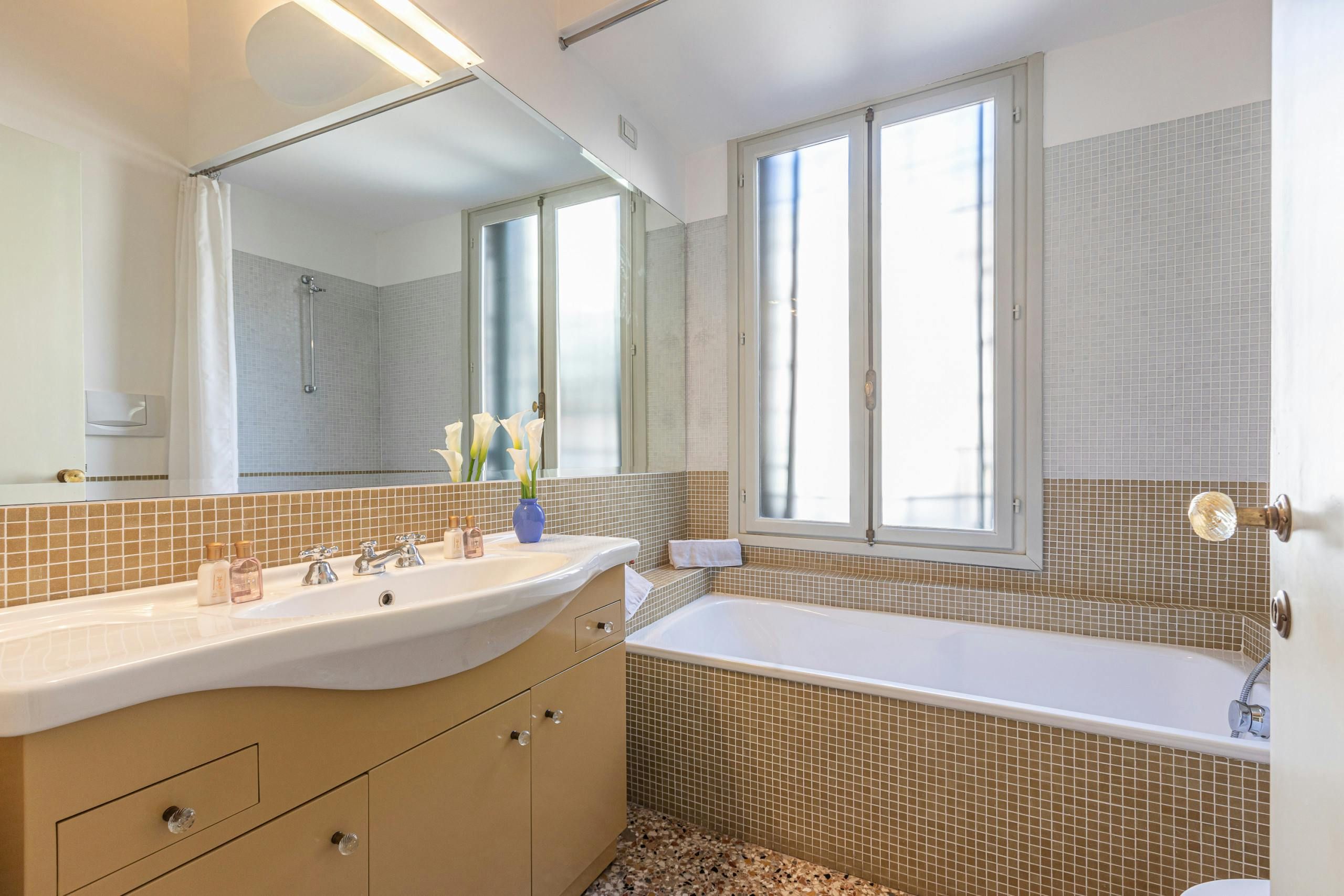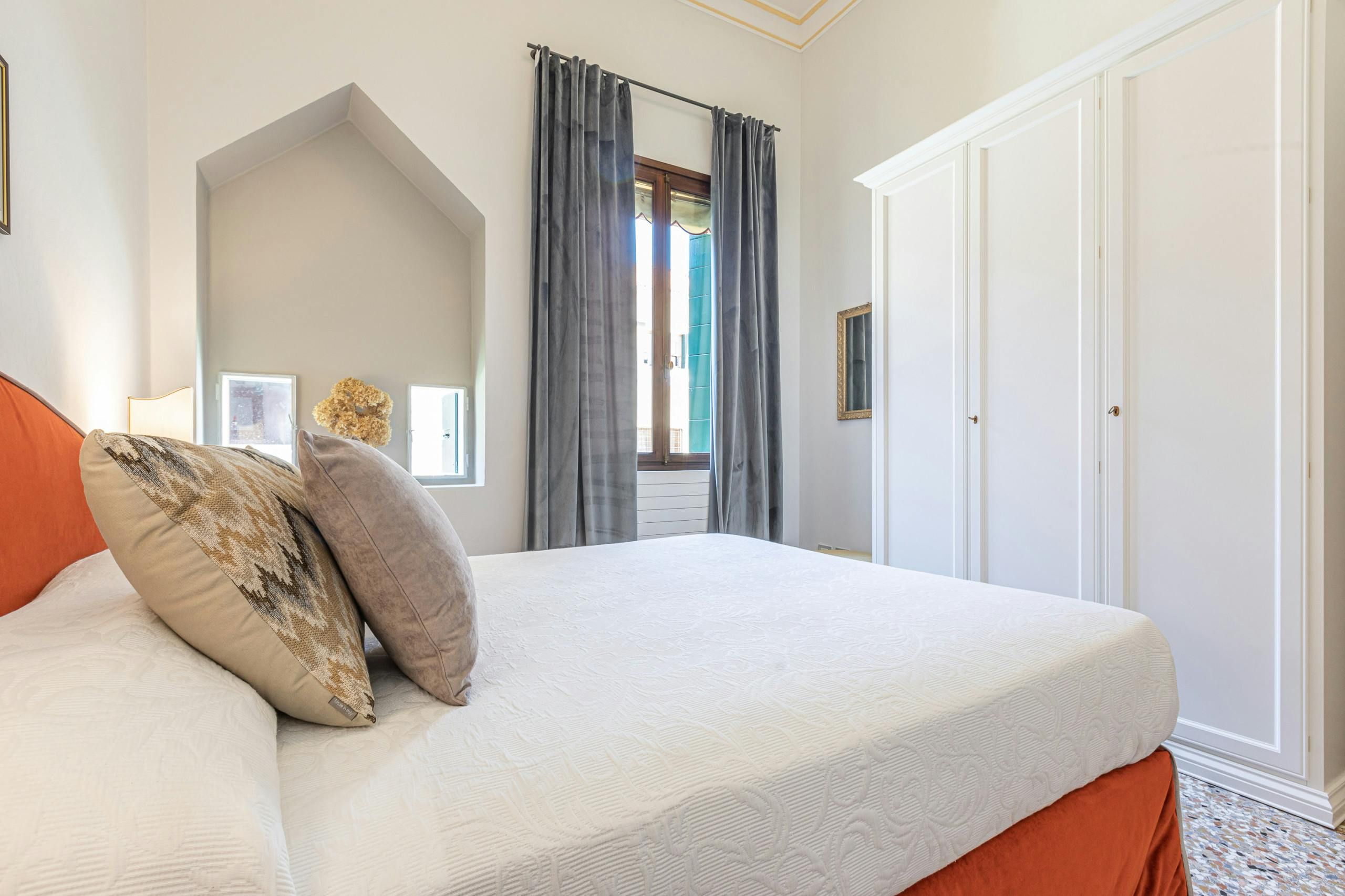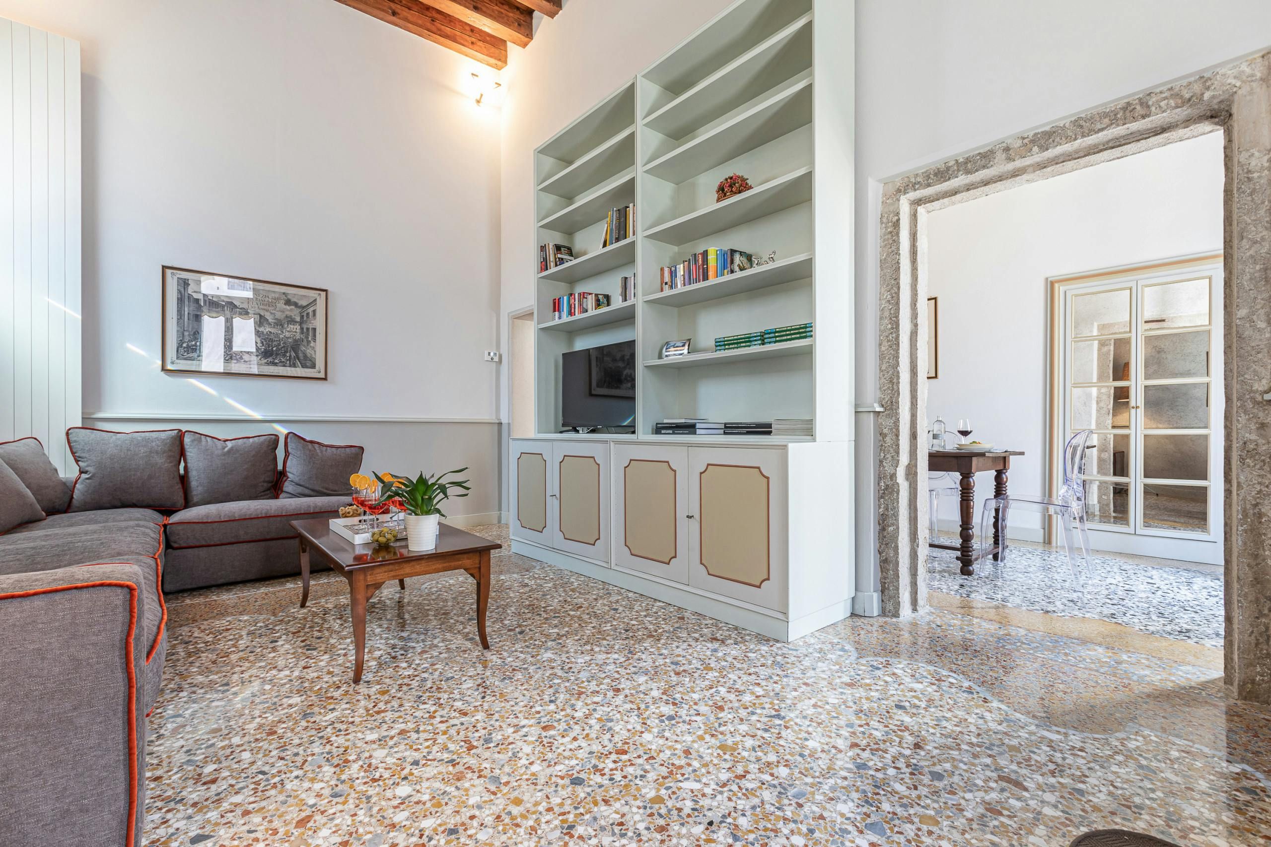 What's a Venice home without bewitching canal views? Nestled in the artsy Dorsoduro district and spread over two floors, this home is perfect for couples who want their own space when travelling with others. We're swooning over the traditional Venetian decor, as well as the ivy-covered Juliet balcony that overlooks the bridges on Rio Del Malpaga. However, it's the rooftop terrace that first grabbed our attention here – a perfect spot for afternoon cocktails in the sunshine. After a few of those, take a short stroll over to the nearby trendy bars and restaurants or spend the day exploring the city on foot – there's plenty within walking distance.