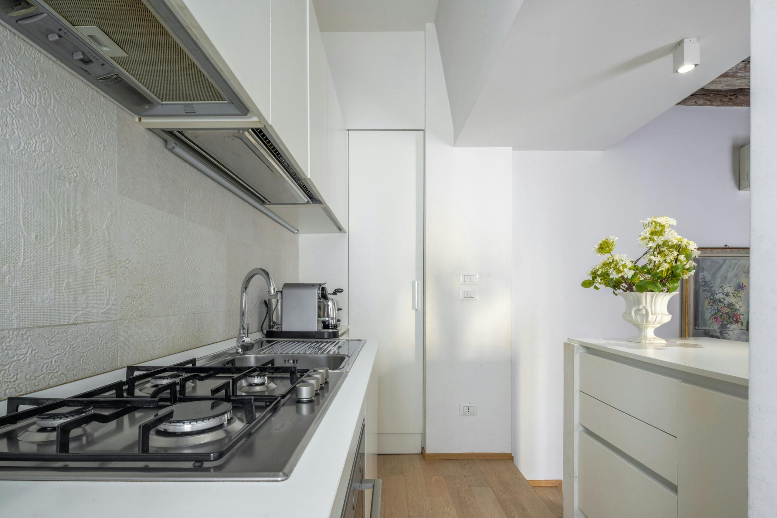 Where do we start with this home? Do we have a chat about the fantastic location or the apartment itself? Let’s begin with the beautiful views of the canal from the living room – you’ll love watching the gondolas glide past. If you’re here in summer, you’ll be glad to know that this apartment has air conditioning too. What about the address then? Well, it’s just over a five-minute walk from Rialto Bridge and just over a ten-minute stroll to Piazza San Marco.
