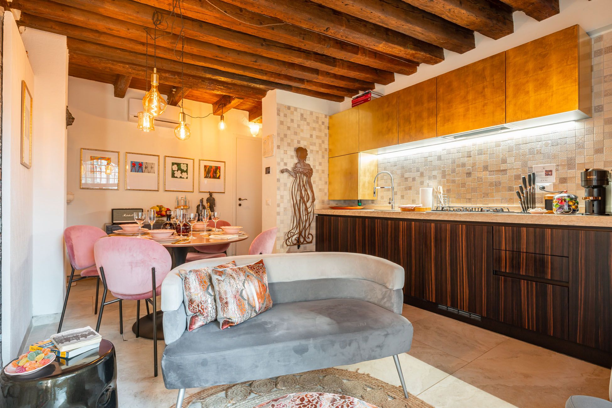 Think of Venice, and your mind conjures the image of gondoliers navigating the canals. That iconic view can be admired from every window in this stunning apartment, which sits at canal bridge level. The apartment is in a historic palazzo dating back to the 14th century, having been carefully renovated to preserve its heritage. You can look forward to exposed stone walls, historic art, and modern, minimalist furniture. Leaving the charms of this delightful abode, you only need to walk eight minutes to reach Piazzo San Marco and the Rialto Bridge.