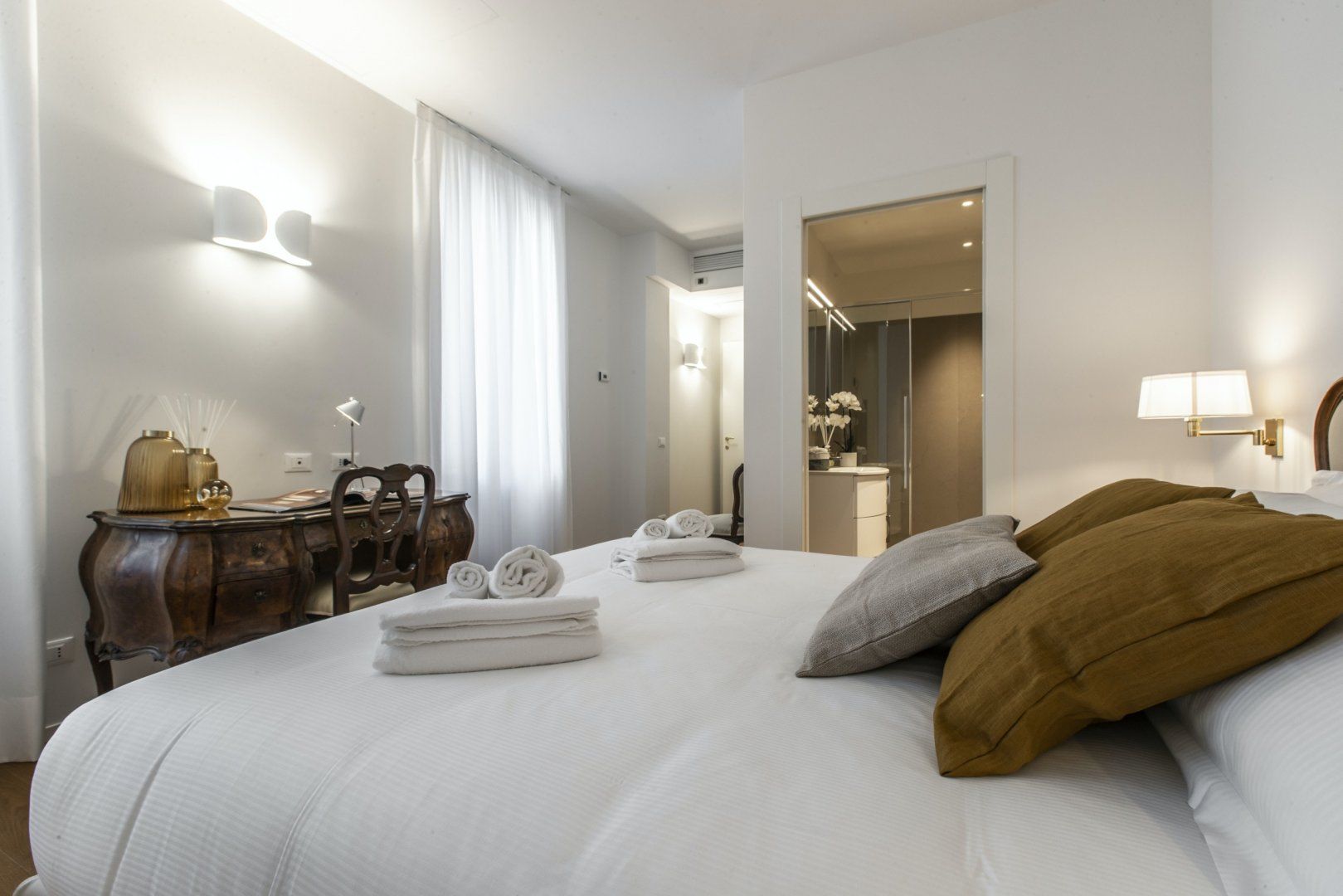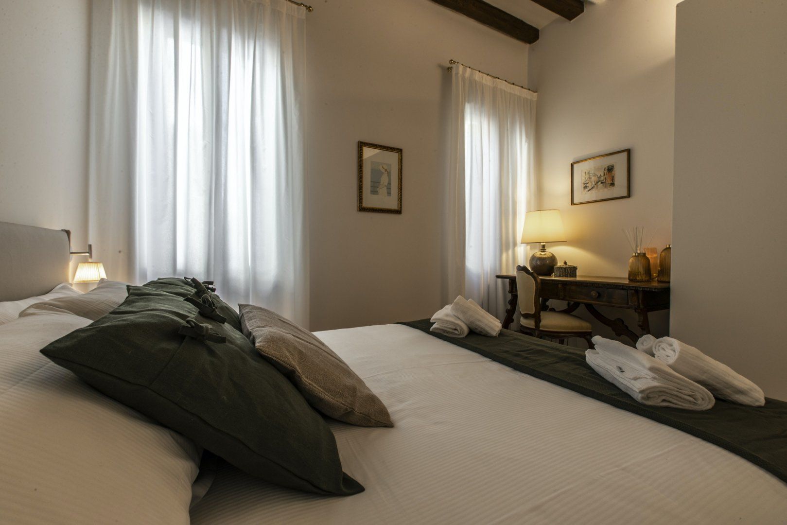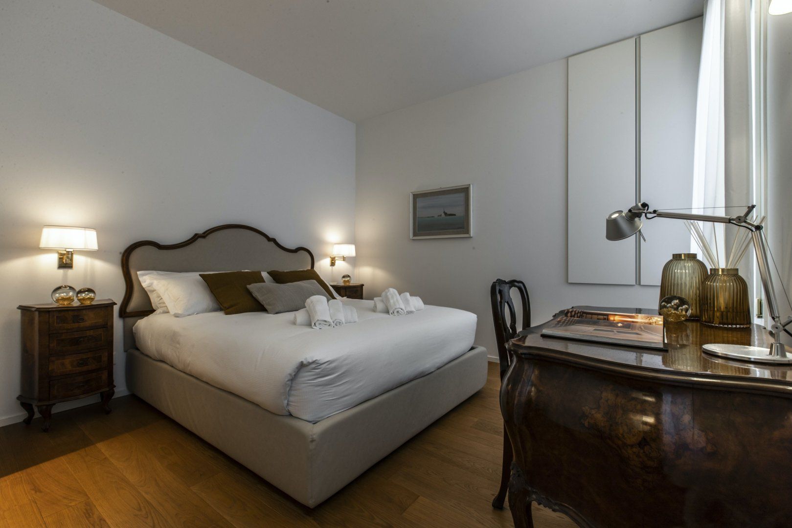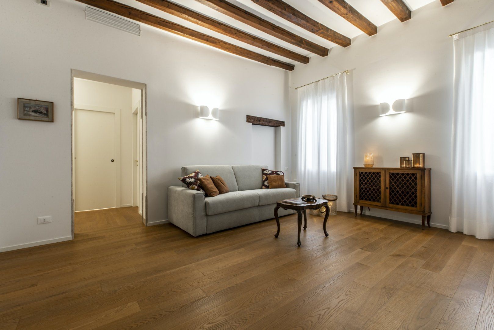 Inside a historic building near Piazza San Marco, this apartment combines modern living with original features seamlessly. The wooden ceiling beams and mix of vintage and contemporary furniture create a cosy space, but the best thing about this home lies just outside. Open the window and you can watch the gondolas sail along Venice's world-famous canals, so location-wise it’s ideal if you’re keen on staying in a central spot. There’s a full kitchen here, giving you the option to cook with the amazing ingredients you can buy from the city's incredible array of shops.