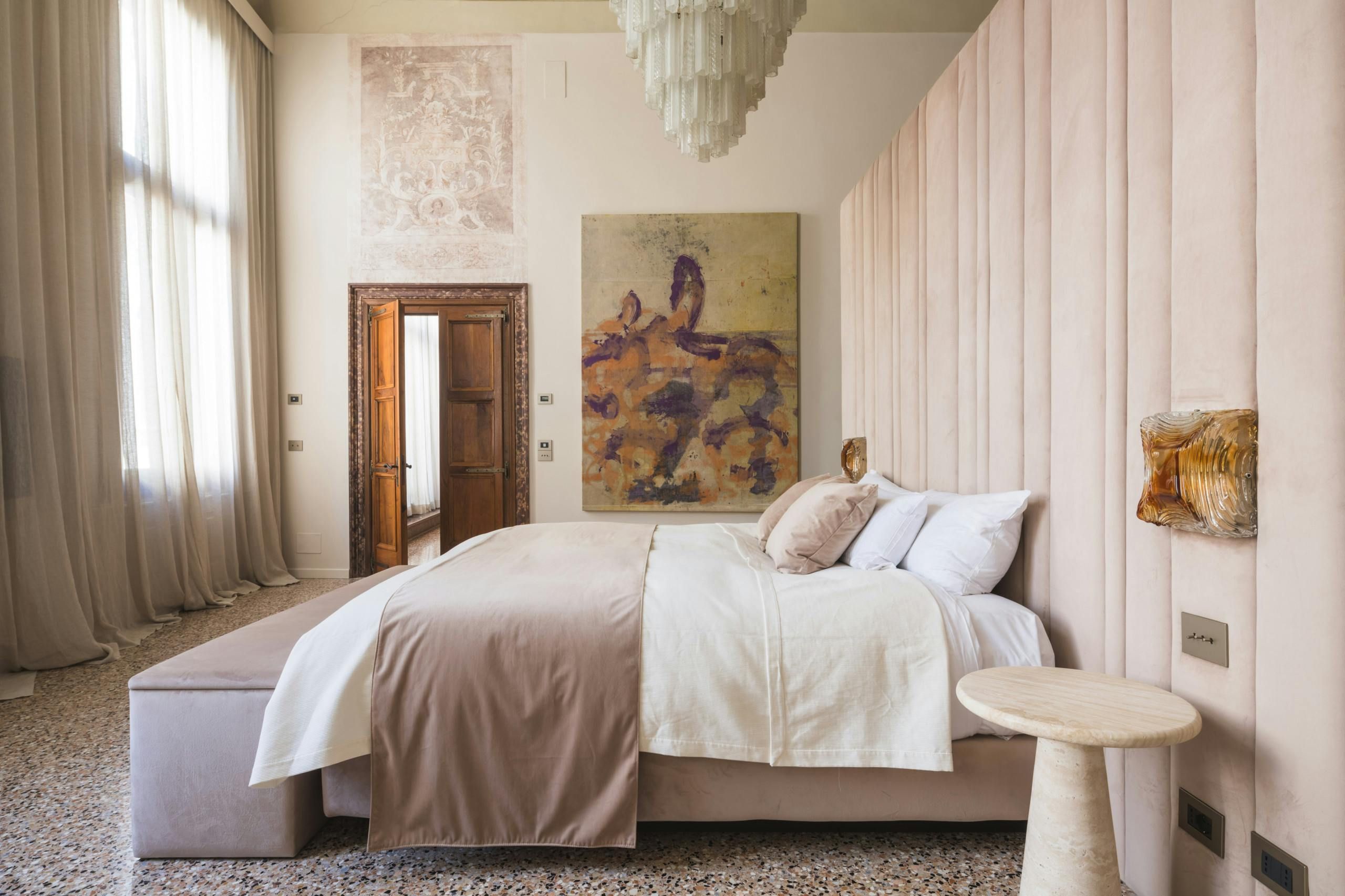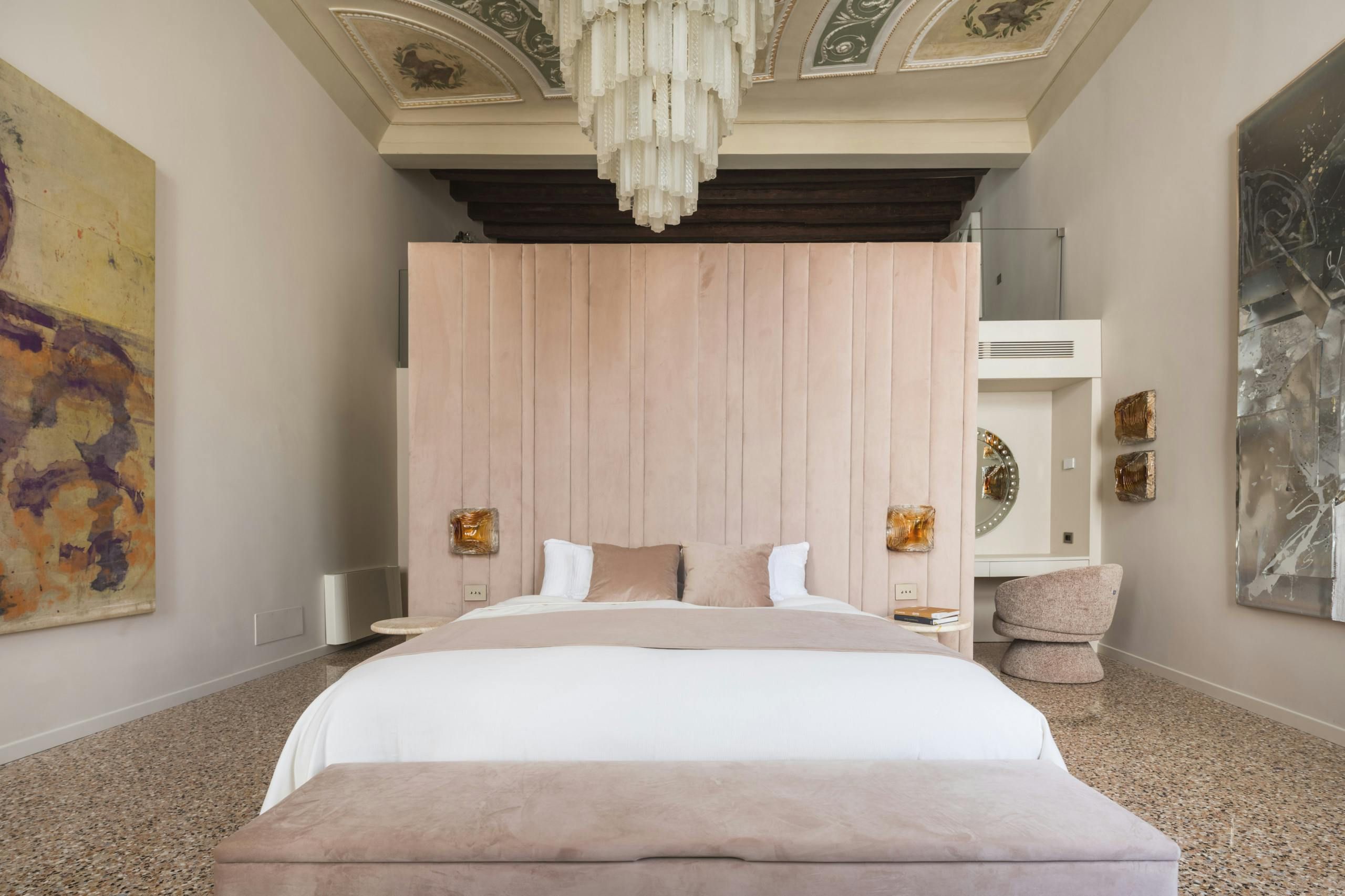 Luxurious and cool, this apartment is an unforgettable base in Venice. It’s in a 19th-century palazzo overlooking Rio de la Panada, a seven-minute walk from Rialto Bridge and twelve minutes from St Mark’s Square. Accessed via a courtyard, this grand apartment blends the charm of the past with the owner’s passion for art and design – don’t miss the walk-in wardrobe graffitied by a well-known street artist. The double-height living room and open-plan kitchen look out onto the canal, the perfect spot for socialising.