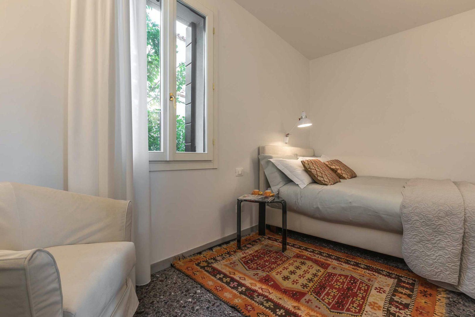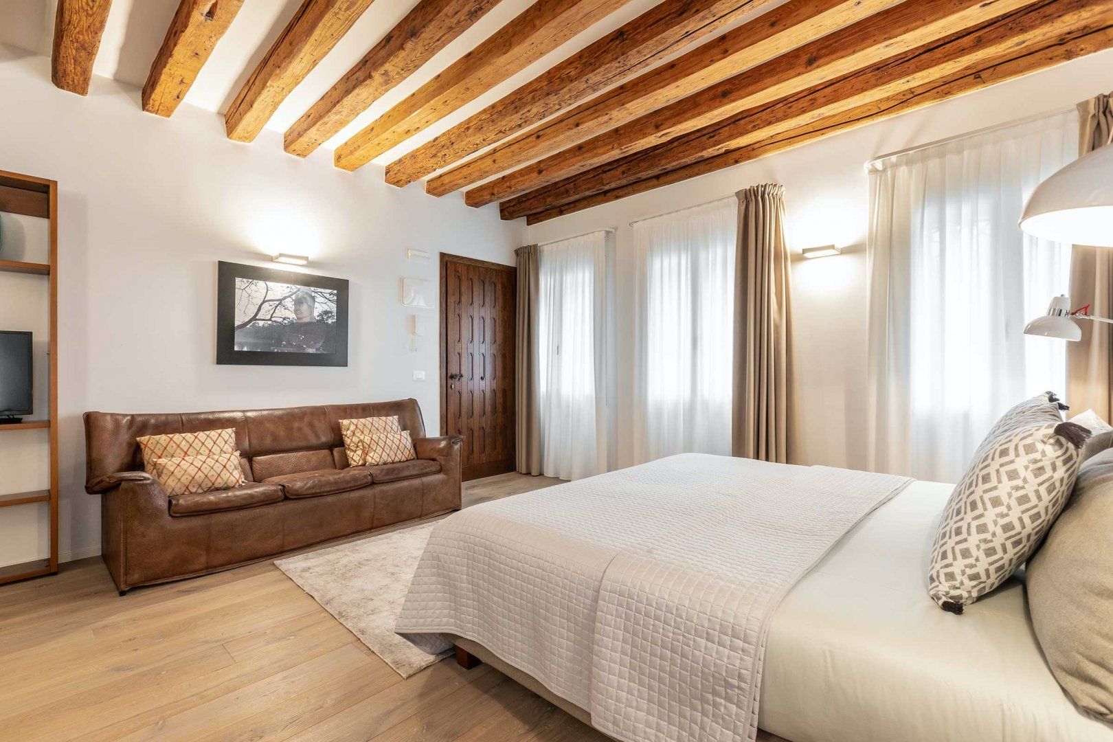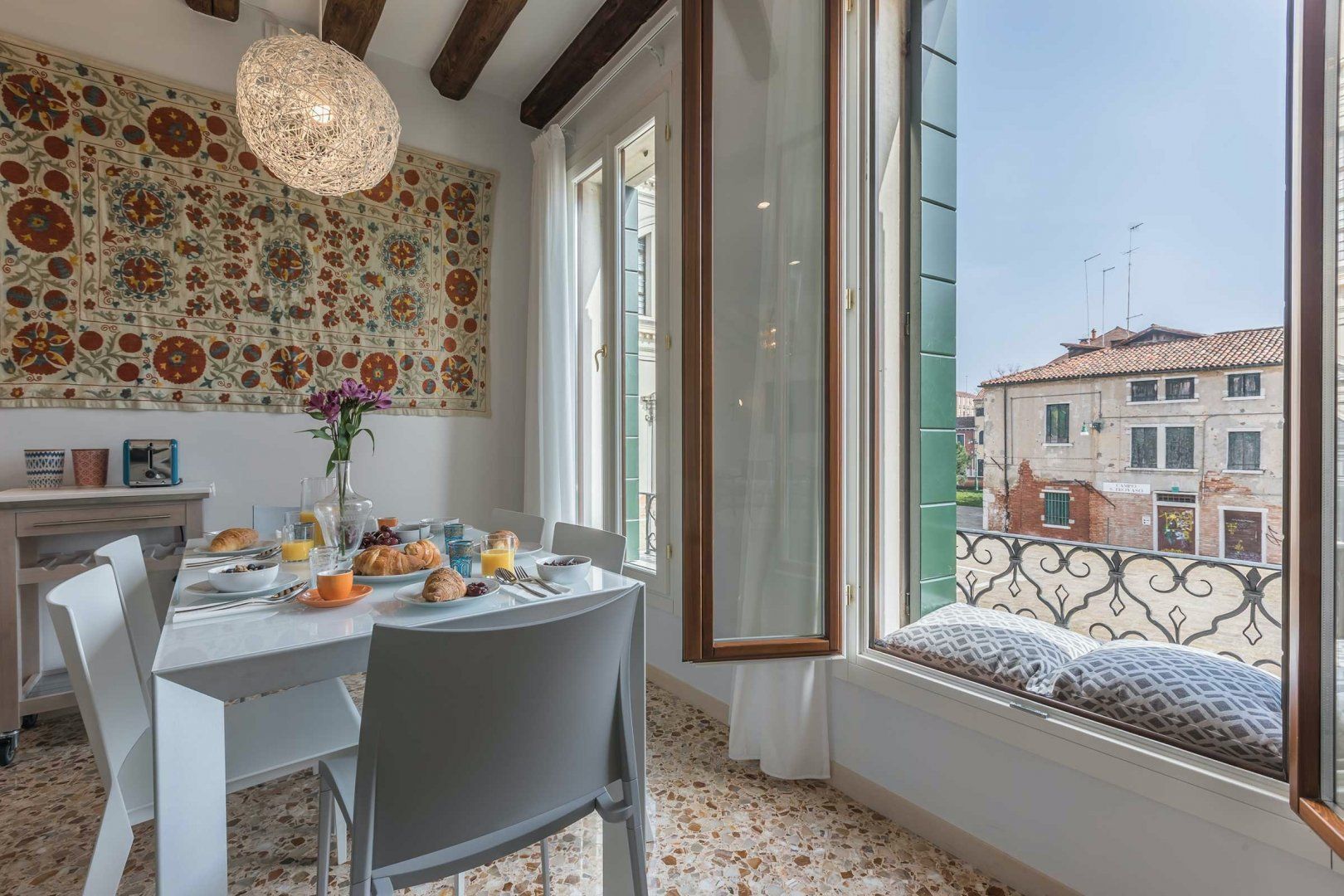 This elegant apartment is spread across two floors of a historic palazzo, boasting fantastic views of the canal and the San Trovaso Church. You’ll be in a great location from which to explore Venice and enjoy gondola rides, but far enough from the usual tourist spots to enjoy some tranquillity too. This is an ideal base for a family, with plenty of space for everyone in the party to find a little private nook. There are some stairs to climb here, and the kitchen may be on the compact side, but still, this is a great find.