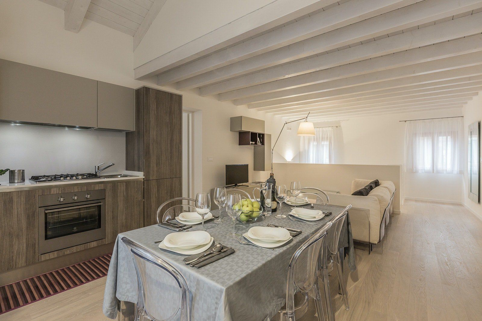 Cute, quirky, and bijou, this stylish three-bedroom apartment spread over three floors of a traditional Venetian building in the heart of Venice’s bustling San Marco neighbourhood offers a comfortable base for discovering the best of this unique city. We especially love the authentic wooden beams that give the space character and think the south-facing terrace off the master bedroom provides the perfect place to sip a morning coffee and plan the day ahead. Step outside the home and you will find a host of independent shops, cosy cafes, and restaurants serving mouth-watering Italian fayre, while the world-famous Rialto Bridge and the sprawling Piazza San Marco are within easy reach too. Water bus and Gondola services are also easily accessible.