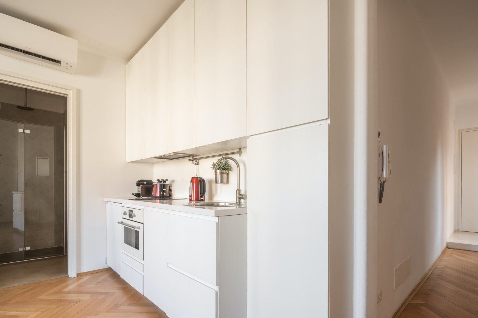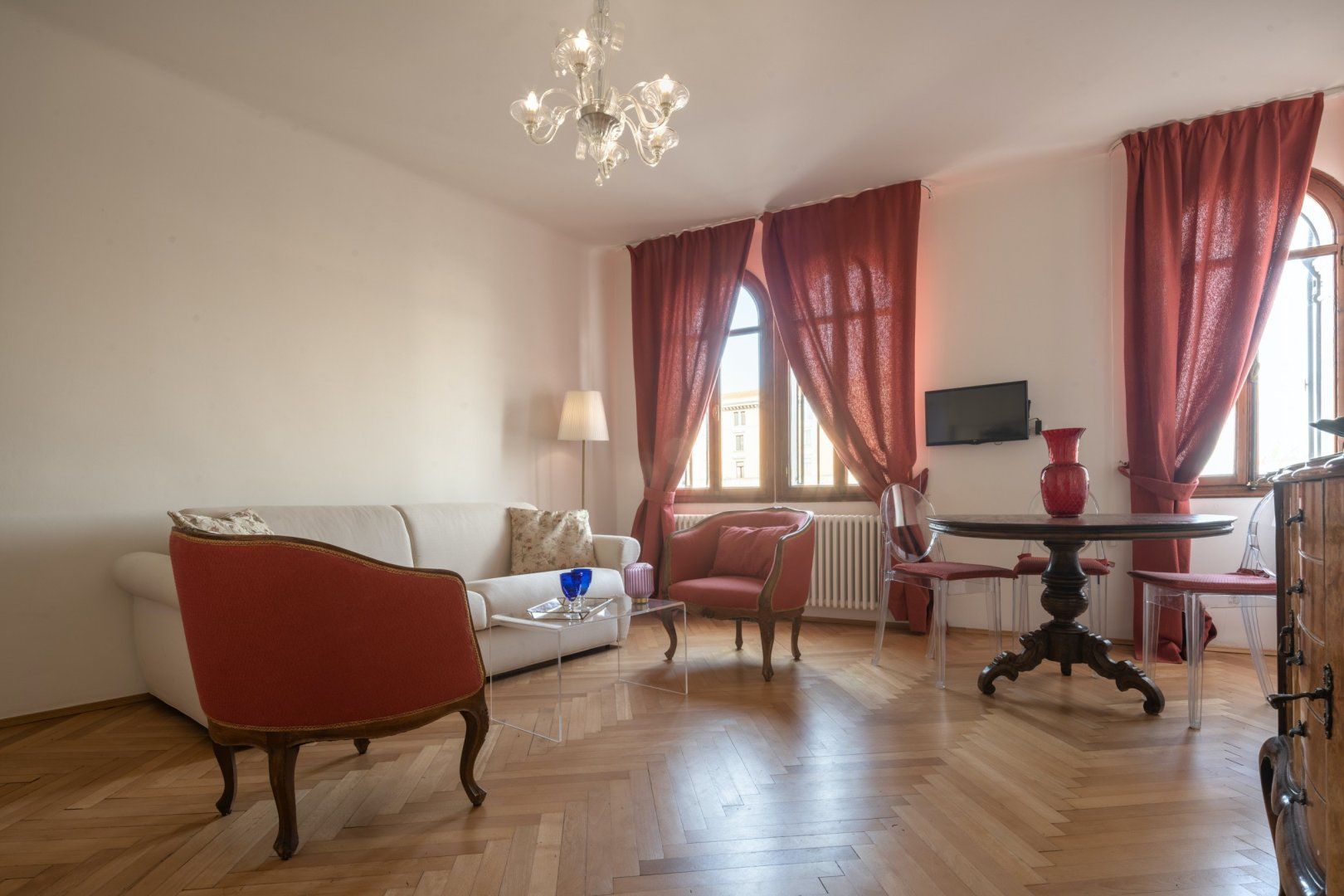 The slightly dated decor aside, this apartment makes for a great central base in Venice, with views of the Grand Canal and Santa Lucia train station handily just a bridge away. You’ve also got a plethora of nearby vaporetto (water bus) stops nearby to take you to St Mark’s Square, Rialto Bridge, Lido, or directly to the airport, making it perfect for those with a tightly packed itinerary. While its location is definitely a strong point, the home isn’t without its merits. The views are a plus, the parquet floors and arched windows add old-world charm, and we’re particularly smitten with the tiled en-suite bathroom with its swish rainfall shower.