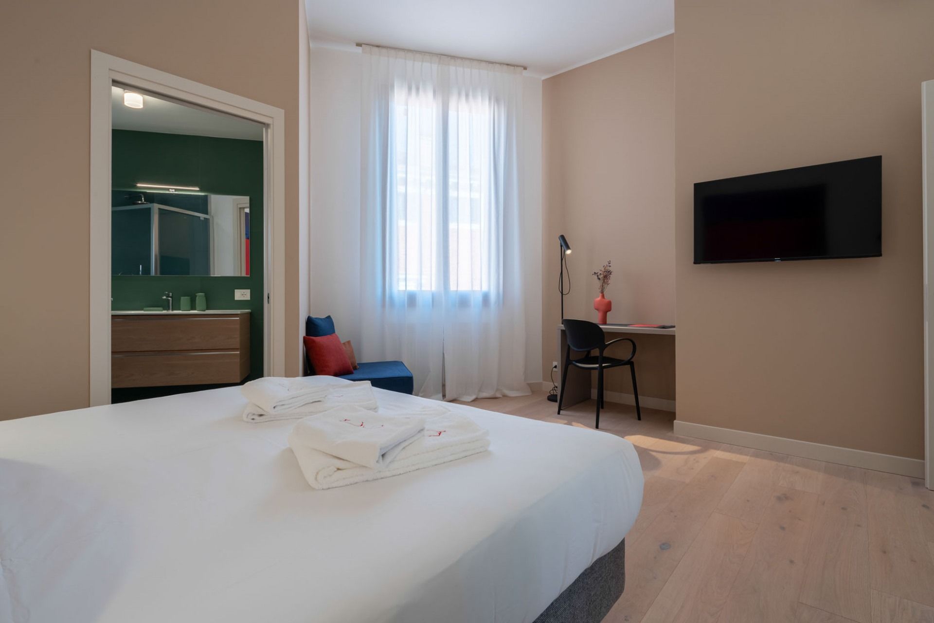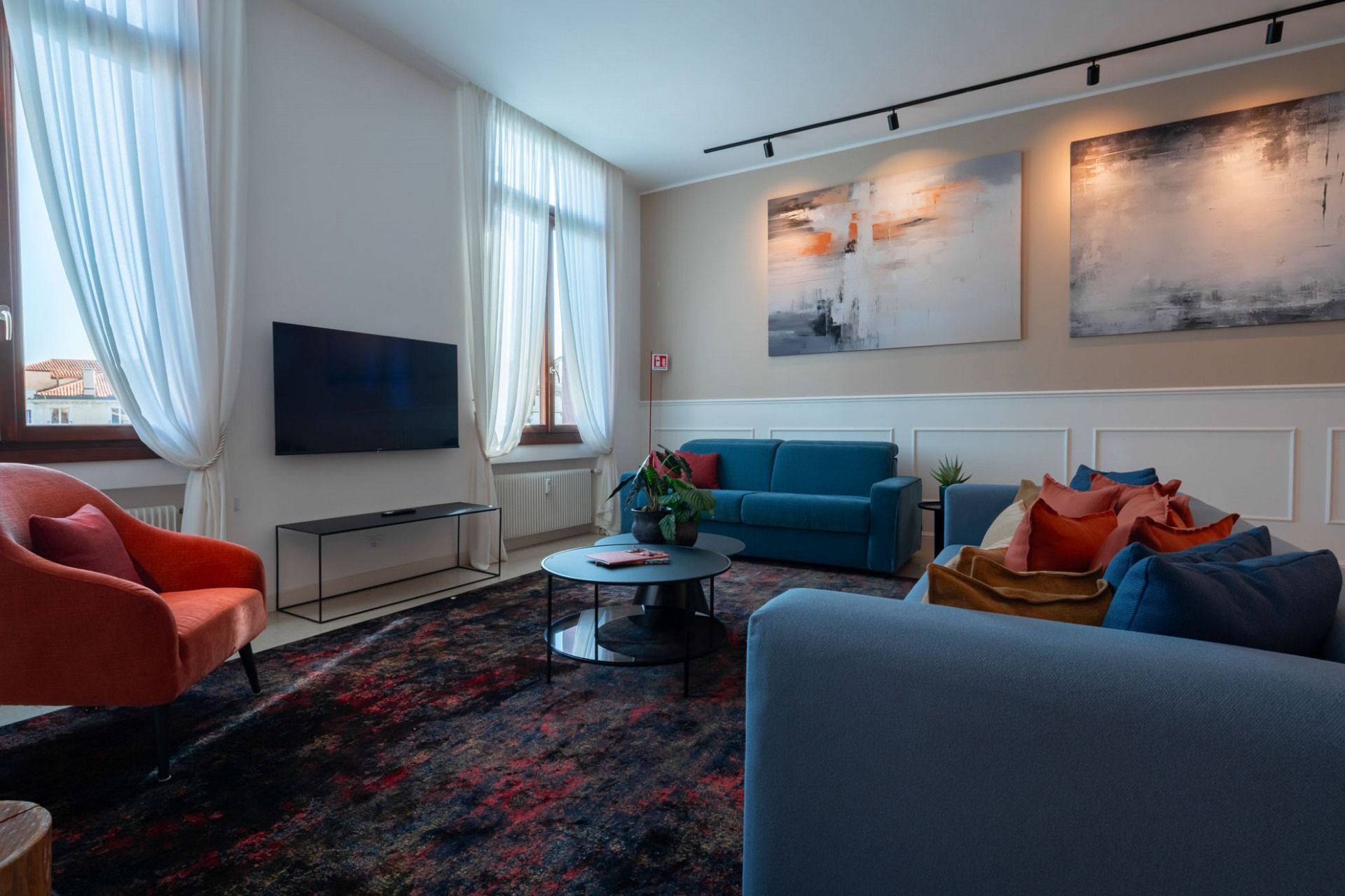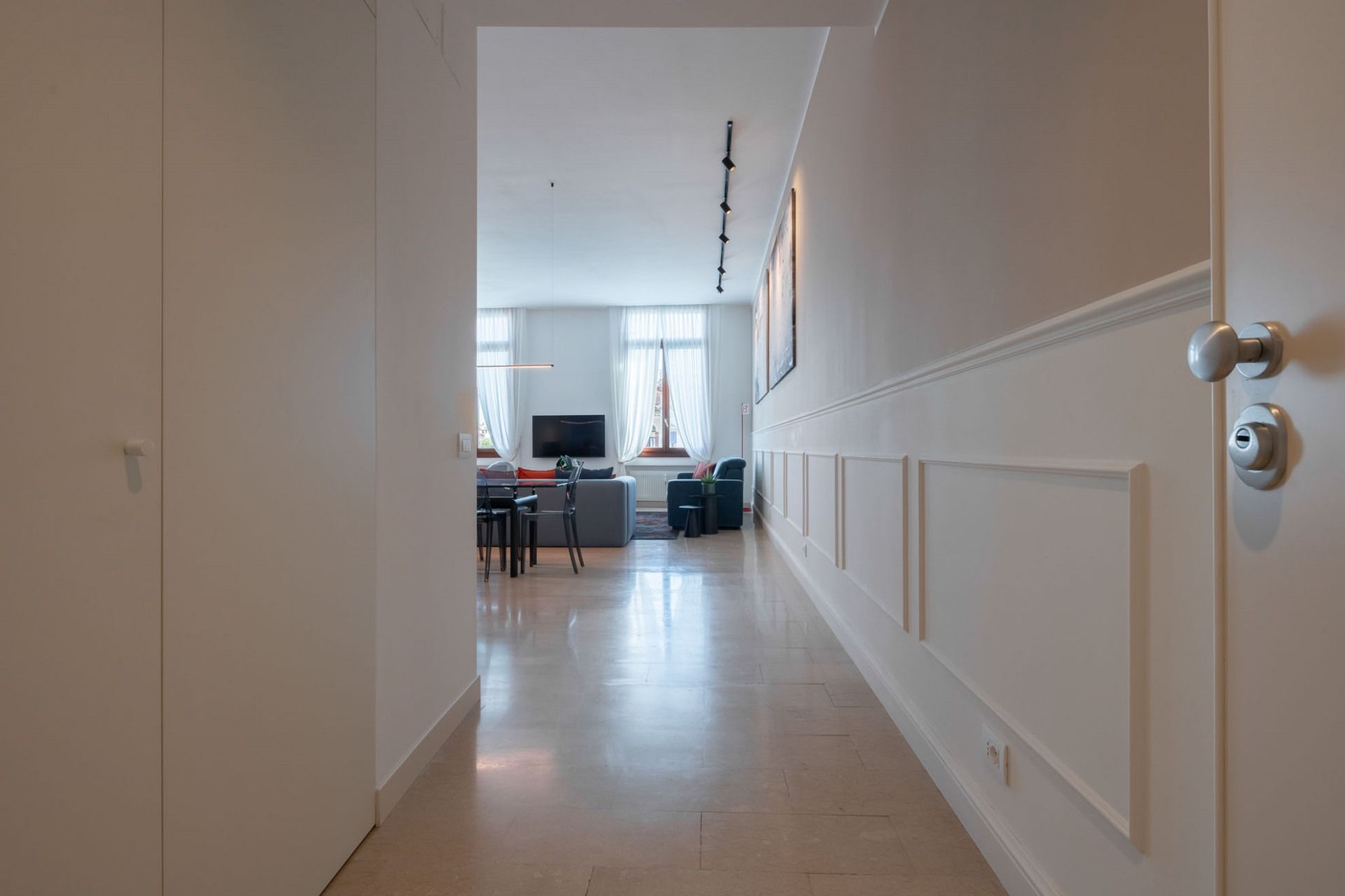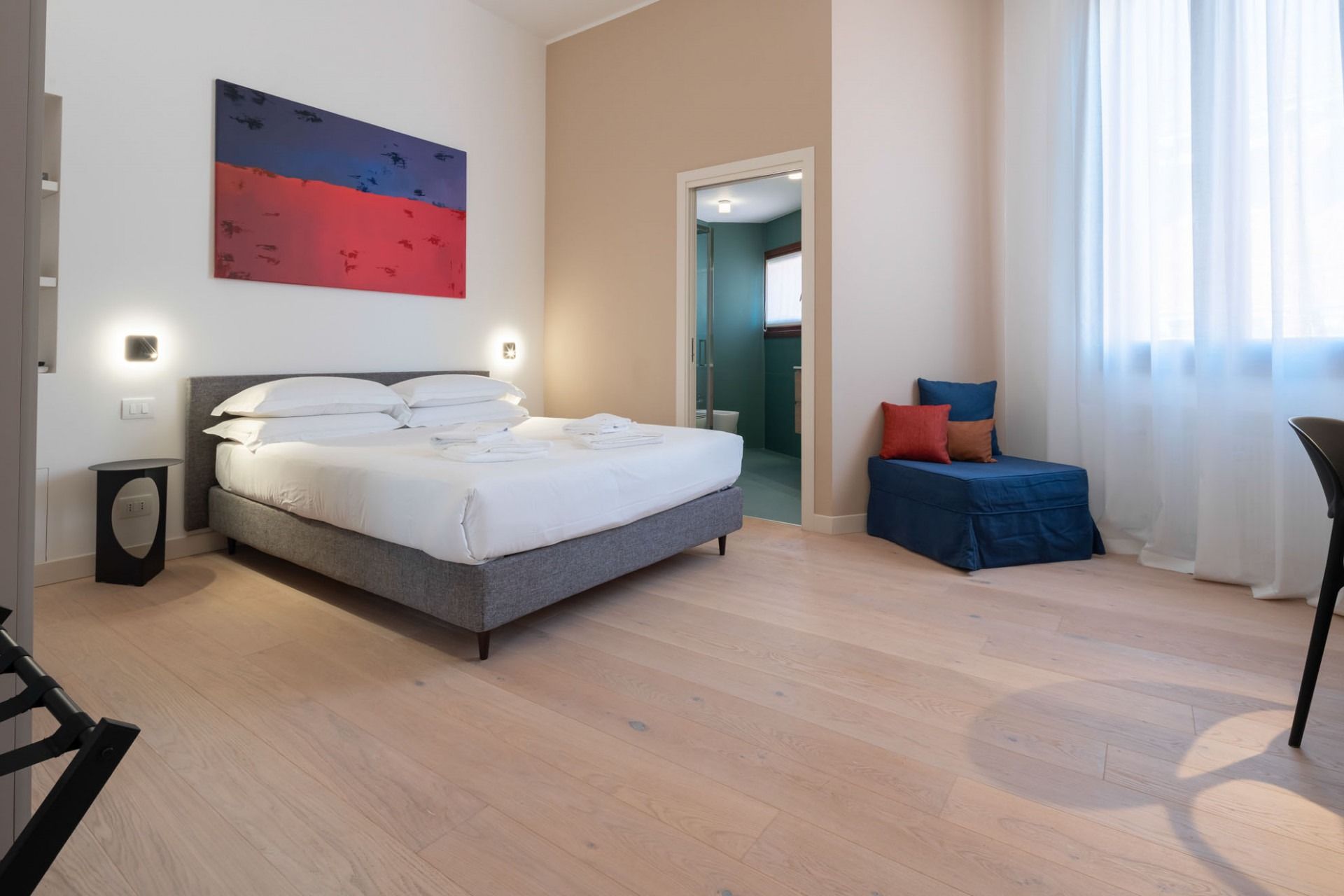 This modern Venetian apartment sits right on the canal with views of turquoise waters and passing gondolas. Housed in an old Venetian apartment building, it's got high ceilings and tall windows for the best glimpses of the surroundings. The open kitchen makes it easy to gather over hearty breakfasts before a day of exploring. When you're ready to venture out, step out the door and into a gondola to visit landmarks like the Basilica, before winding down the day in a local waterside trattoria.