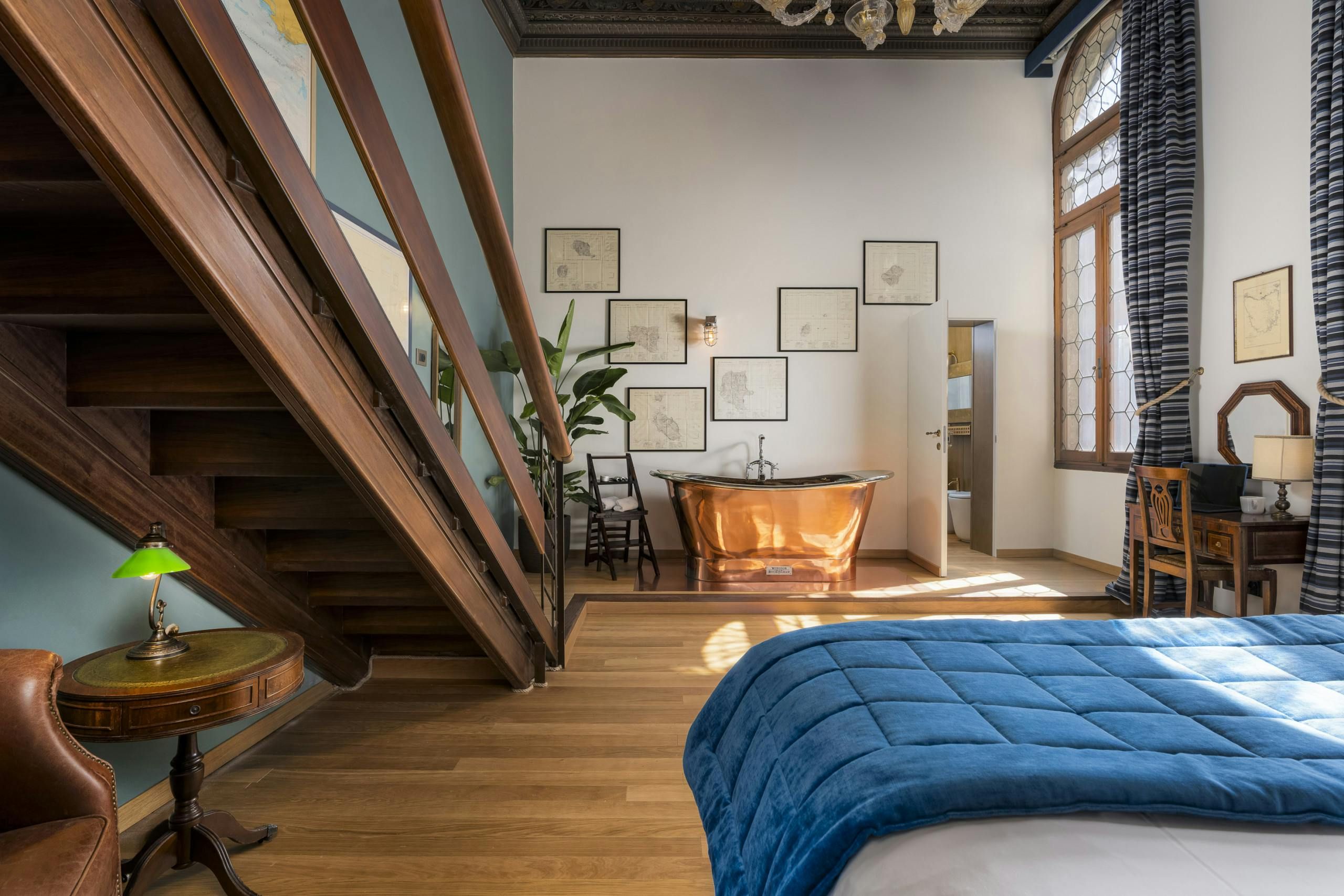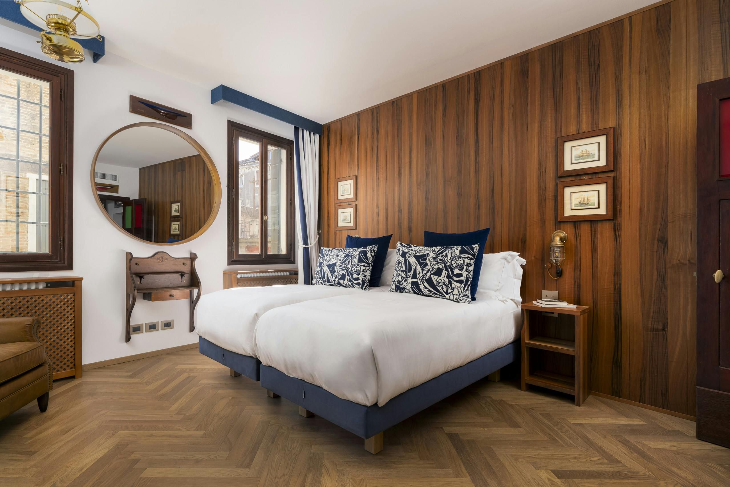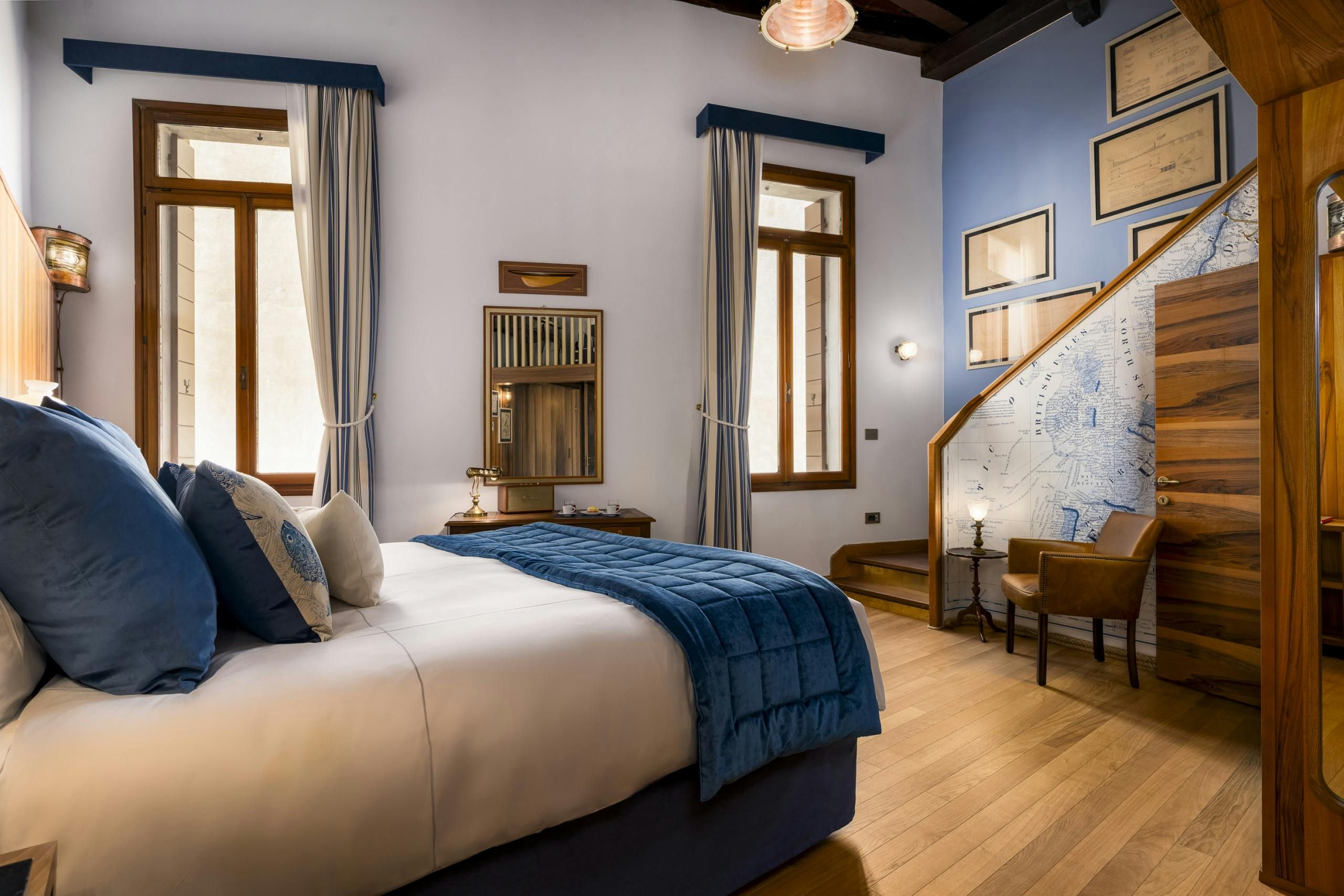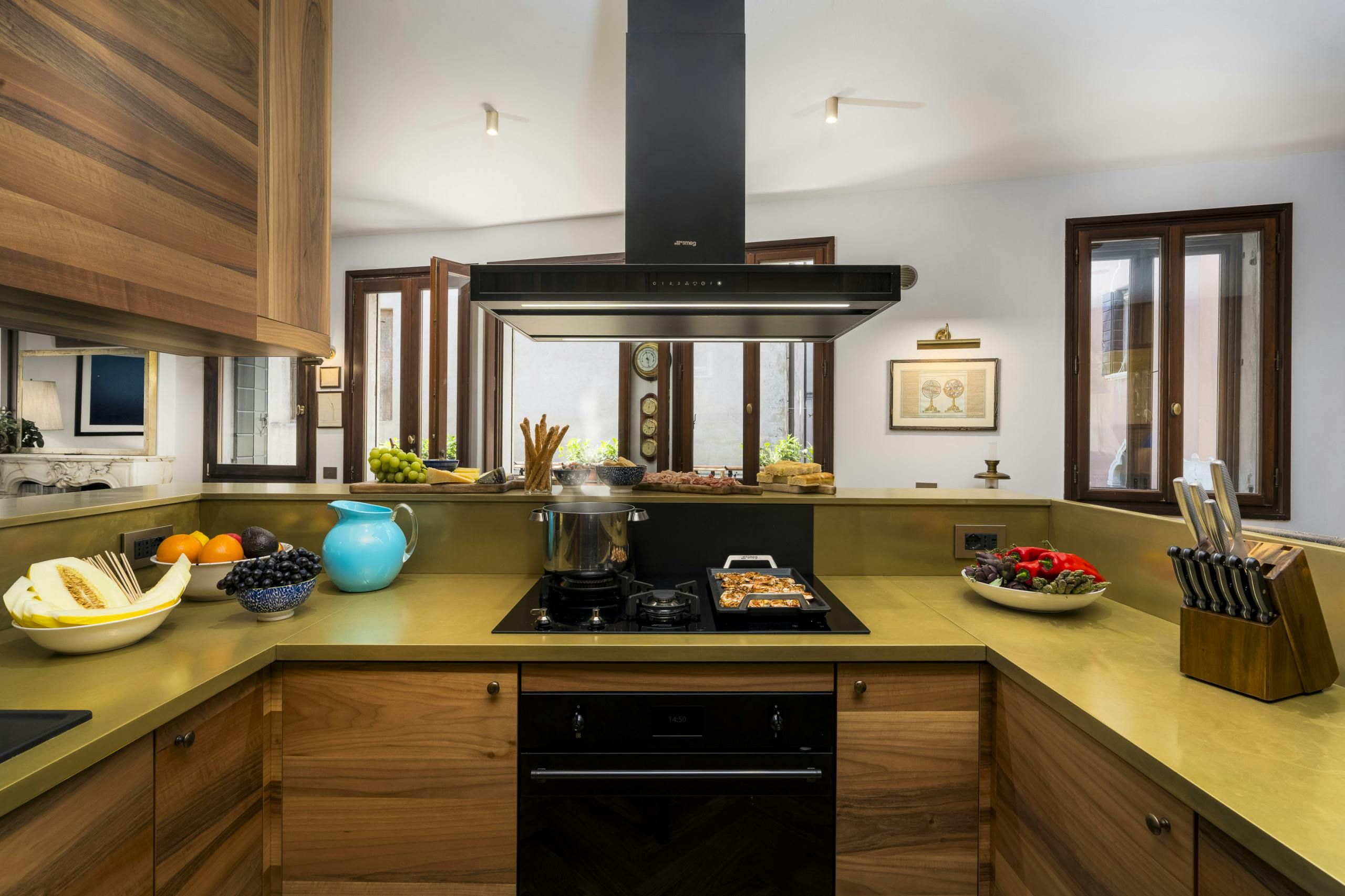 This stunning home is a unique find. It’s owned by a husband and wife who double as a professional superyacht captain and chef, and has been designed with traditional yacht clubs in mind. Unsurprisingly, there’s an abundance of nautical influences and maritime antiques throughout the home. One of the showstopping features is a wood-beamed hideaway with a bar and pool table, and another is the balcony that looks out over gondolas gliding by. Location-wise, this home couldn’t be any better – Rialto Bridge is less than five minutes away, and you can reach St Mark’s Square in ten minutes.