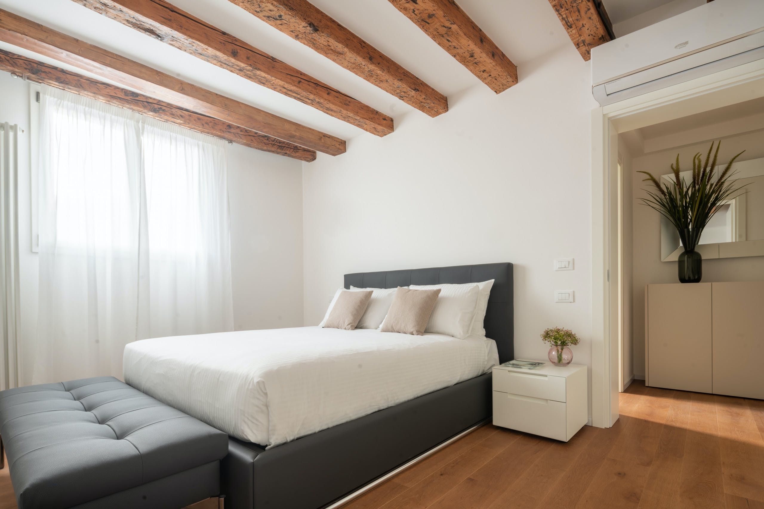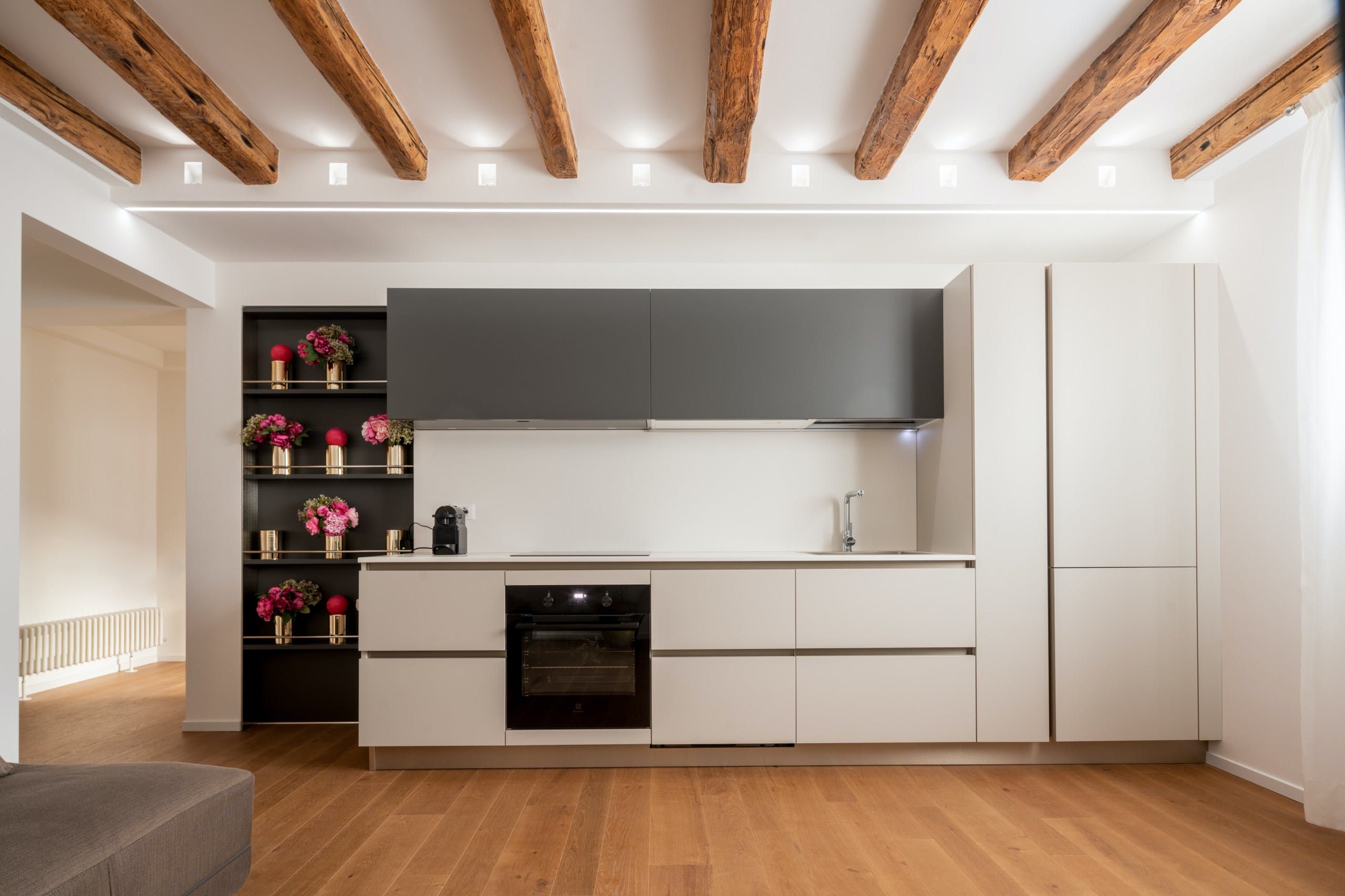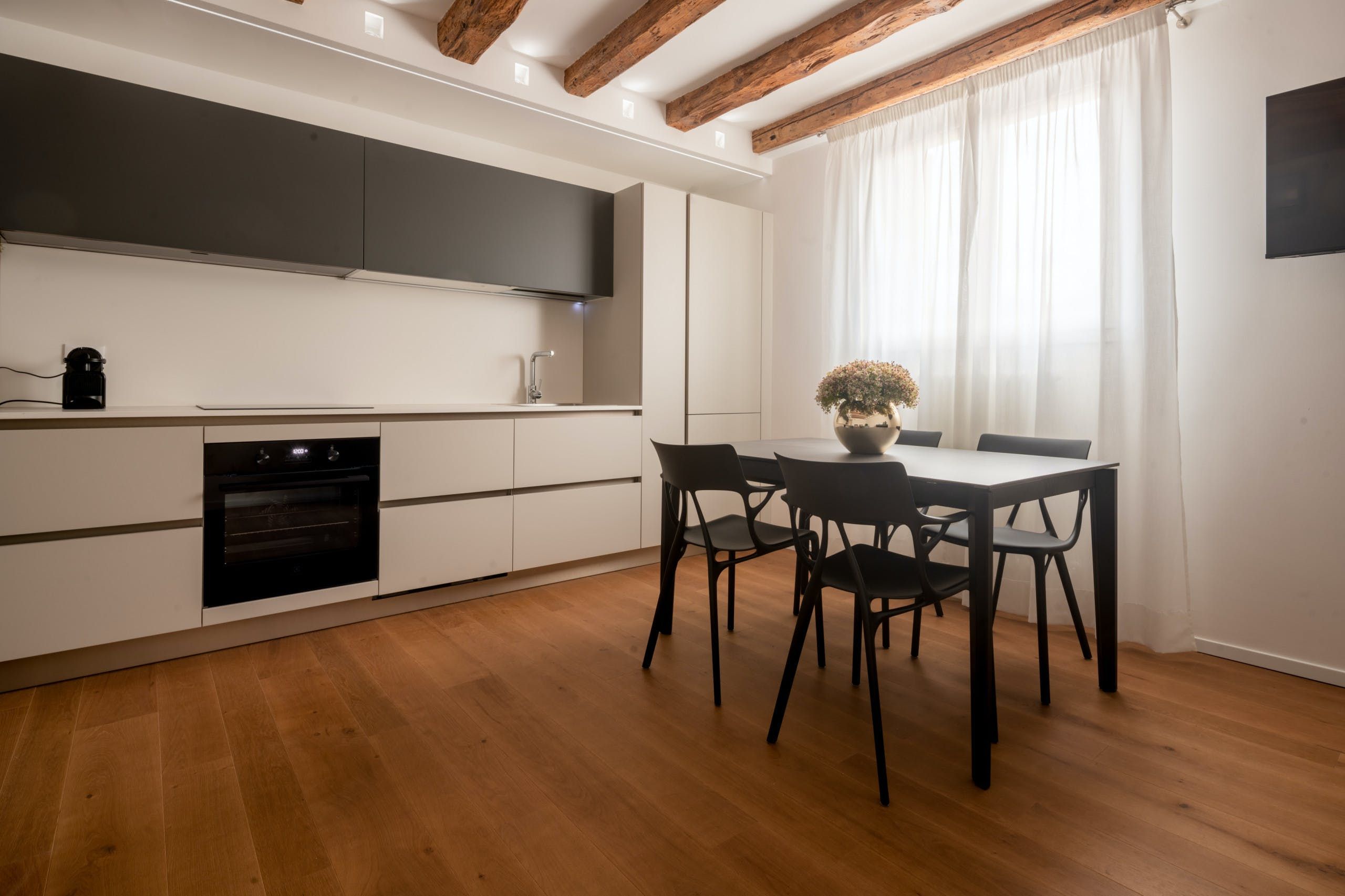Ideally located in Venice’s Santa Croce neighbourhood, this contemporary gem is within easy walking distance of the city’s historic hotspots, cultural institutions and canals. You’ll need to climb some stairs to reach this first-floor apartment, but once inside you’ll be welcomed in by sleek designs and original beams. The space is practical, with plenty of room for a couple or solo traveller. Though it could be a little brighter, we love the modern kitchen for whipping up negronis and pasta at home. That said, you’ll have your pick of Venice’s authentic eateries on your doorstep.