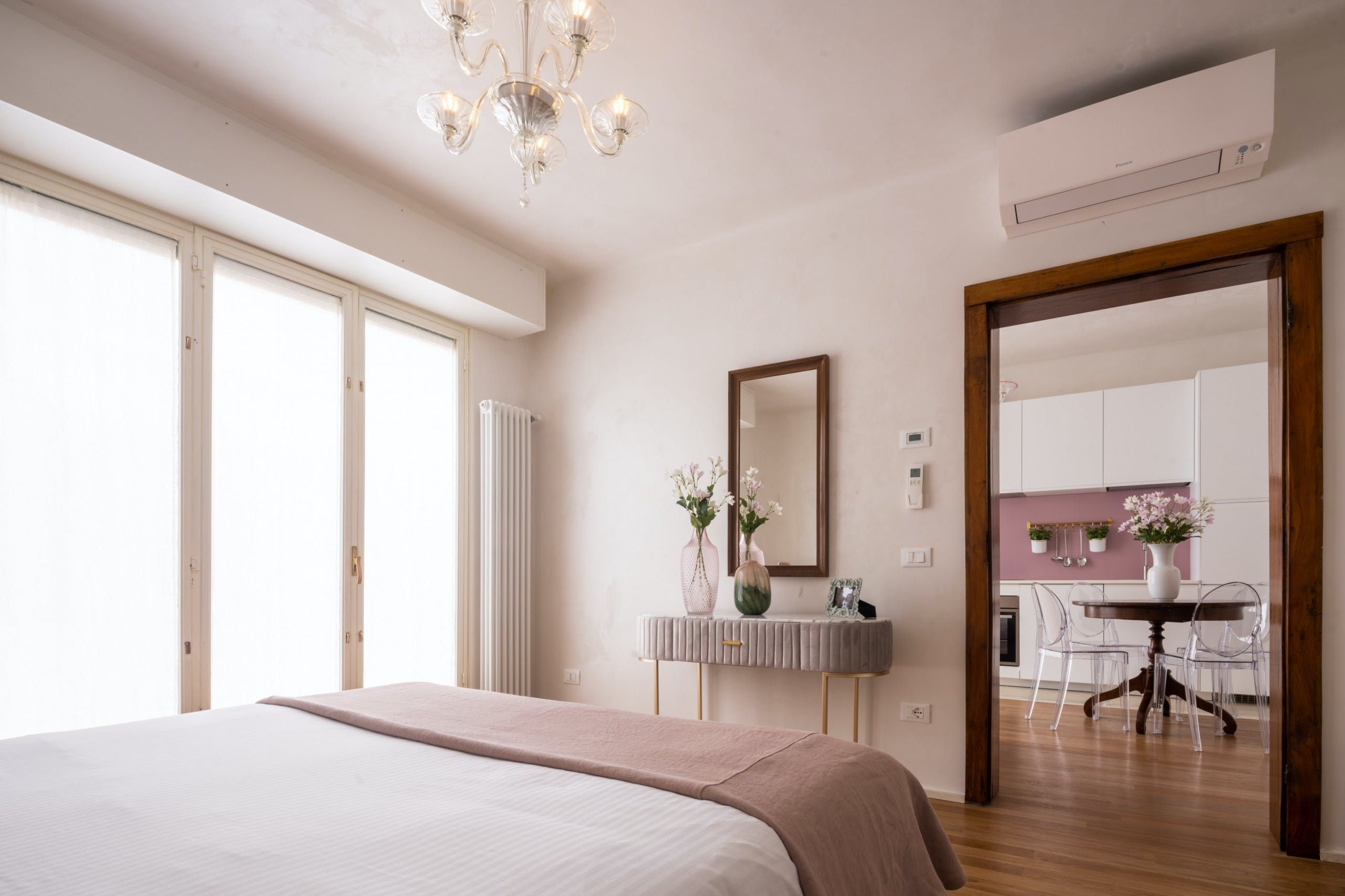 You’ll find this apartment just footsteps from Venice’s main railway station – ideal if you’re arriving or departing by train. The canalside streets surrounding this place are home to myriad restaurants, cafes and gelato parlours – not to mention that the main sights of Venice are easily reached on foot (or by water taxi). The furnishings are simple here, but the decor is a pink-hued delight. There’s room to dine in the kitchen area, and if you’re not using the double sofa bed in the living area, it feels like there’s plenty of space.