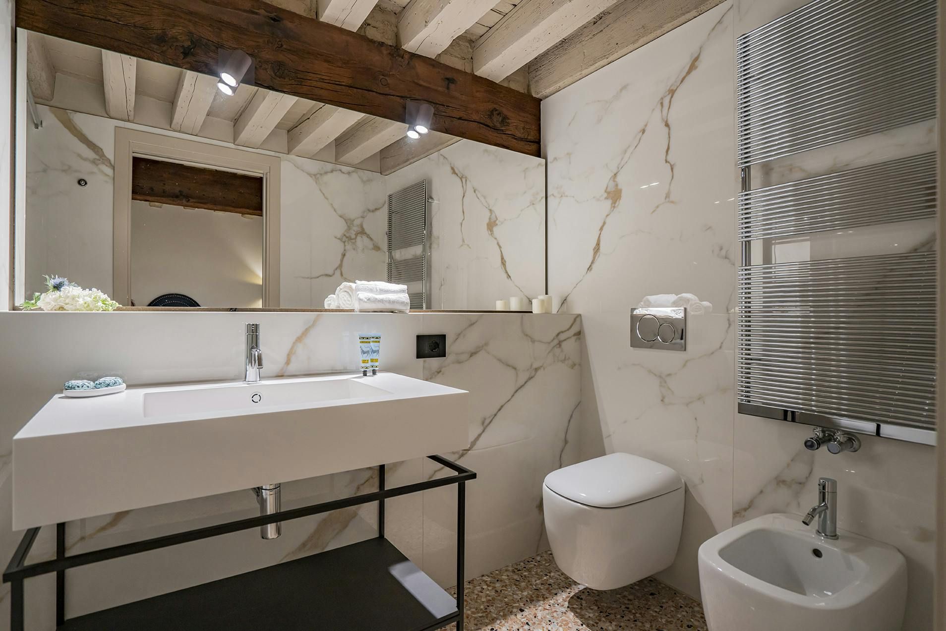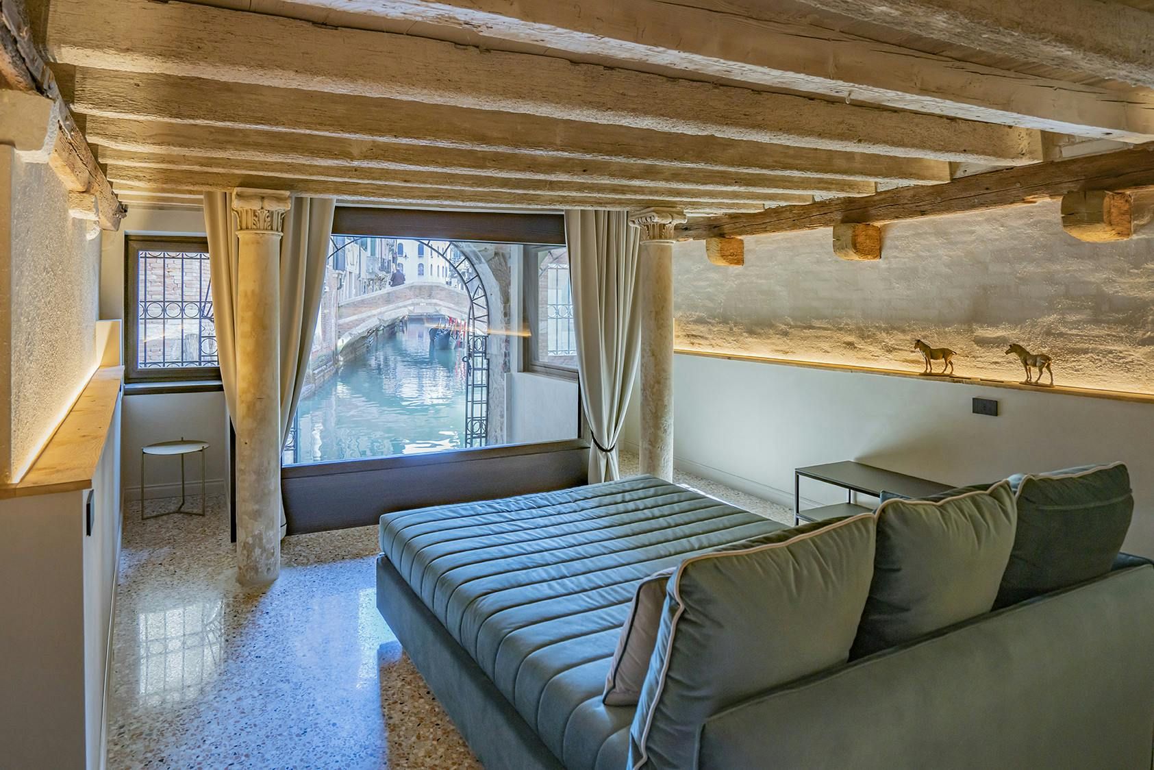 Framing the T-junction of the San Zulian and Bareteri canal through the arched water door, this Venetian apartment allows you to gondola-watch right from the comfort of your living room. Pair that with traditional tiles, stone and beams, and this home makes a pretty picture, even if it lacks a bit of brightness. Luckily, with so many landmarks – St. Mark’s Square and the 18th-century church of Santa Maria Della Fava is a must – within walking distance, you'll have plenty of natural light as you explore.