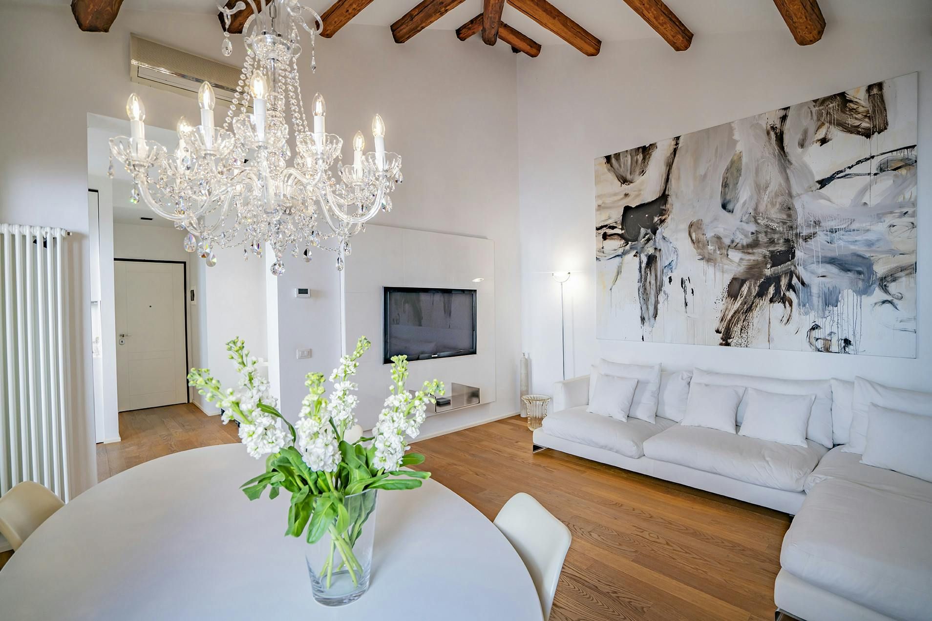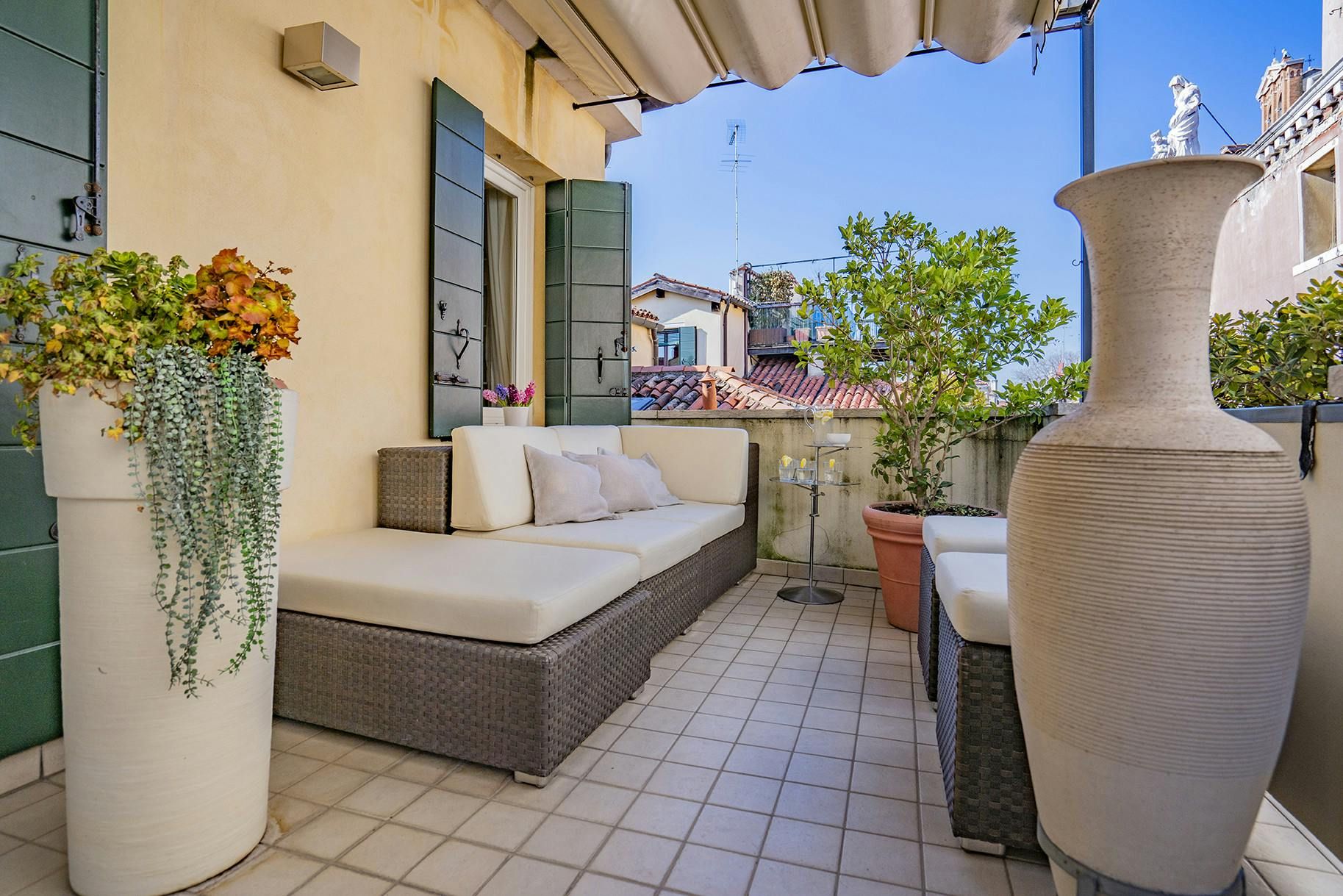 Located on the peaceful border of Cannaregio and Castello, this bright penthouse is perfect for those looking for a base to explore Venice. With easy access to St. Mark’s Square and the Biennale Pavilions at Arsenale, you can experience the city at your own pace here. This third-floor penthouse is only accessible by stairs, so be prepared to carry your luggage up – though with two terraces above the city, it’s worth the climb. Take in the characterful street of Barbaria de le Tole and admire the monumental statues on the facade of the nearby church of the Ospedaletto with a glass of Prosecco in hand – you have all the ingredients for a memorable Venetian stay.