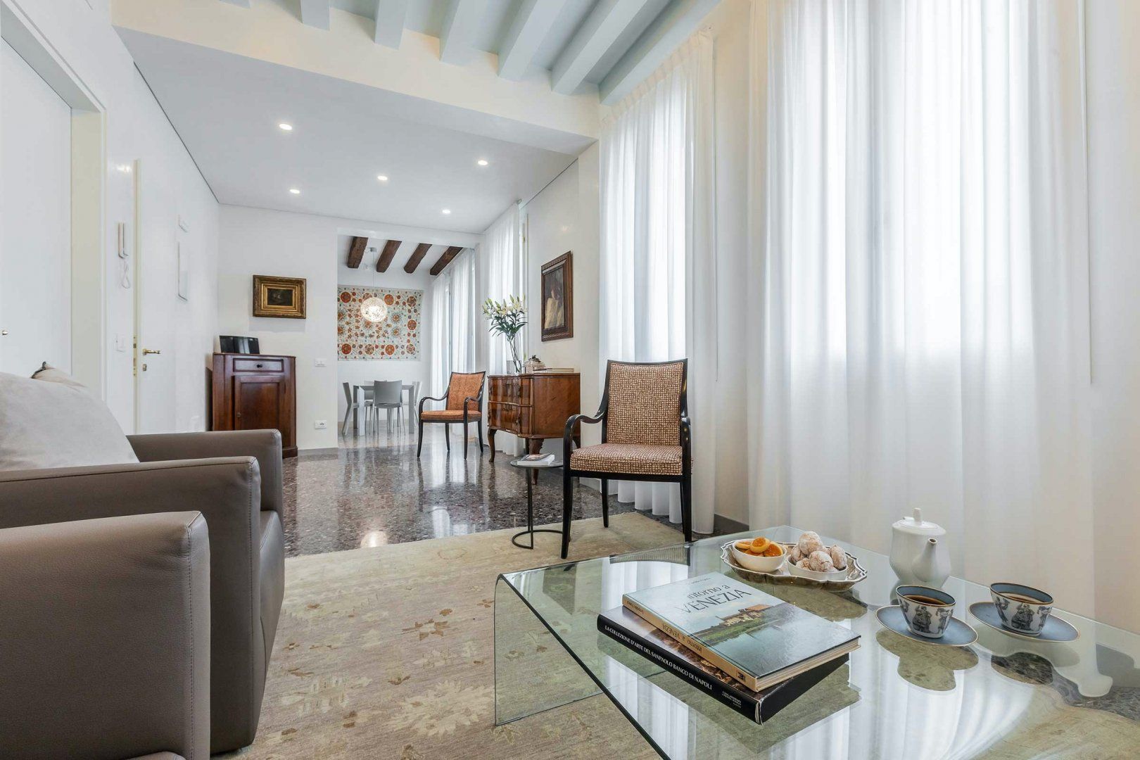 Elegant, eclectic, and effortlessly Italian, this chic holiday home offers a great location within the sought-after Dorsoduro District of Venice, just moments from Accademia Bride and one Vaporetto stop from the world-famous Piazza San Marco. Step outside and immediately feel the heartbeat of the city as you are surrounded by artisanal shops, cafes, bars, and Osterias. Within this grand, typically Venetian-style building you will find a number of living areas, two well-equipped modern kitchens, and six bedrooms (many of which are ensuite), all finished to an impeccably high standard. There's also a lovely furnished roof terrace that boasts a great view over this iconic city – the perfect place to watch the sun go down with a glass of wine.