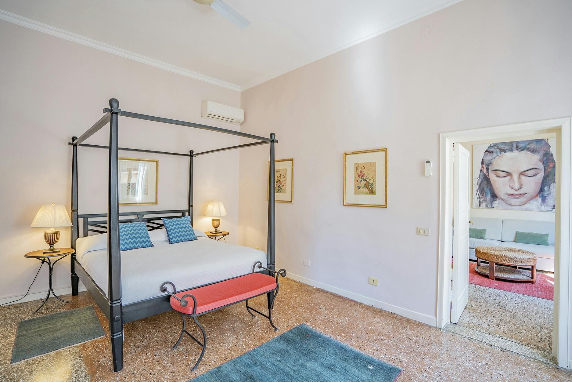 This chic little apartment is a great base in Venice. It’s away from the hustle and bustle of the touristy areas, standing proudly in a salmon-pink palazzetto in upmarket San Samuele. The neighbourhood – once home to Casanova – is home to antique shops and galleries, including the Palazzo Grassi Museum of Modern Art. It’s just a short stroll from St Mark’s Square, as well as the Accademia Bridge and Campo Santo Stefano. The four-poster bed is a nice touch, though guest number three will be on a sofa bed in the open-plan living and dining space.