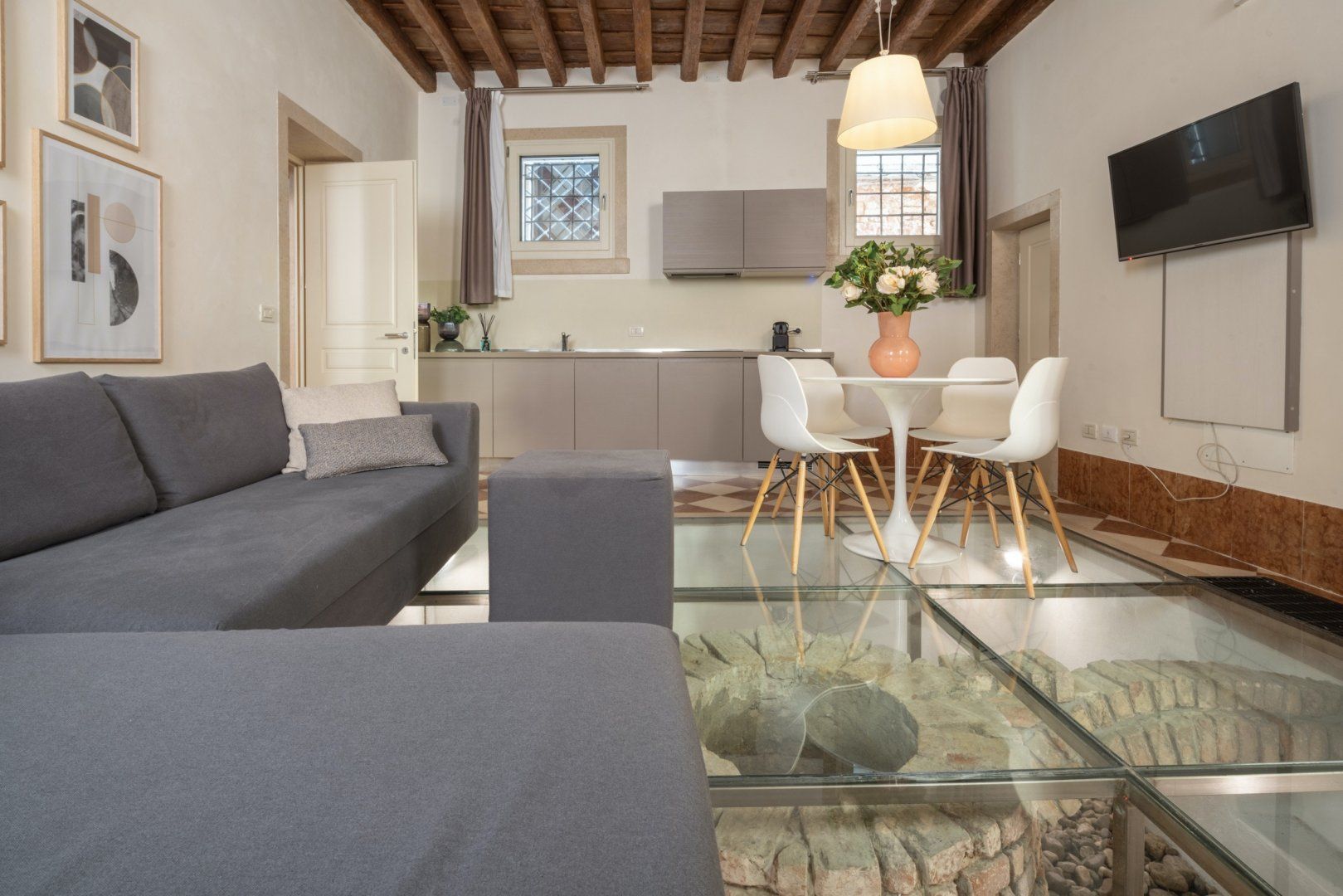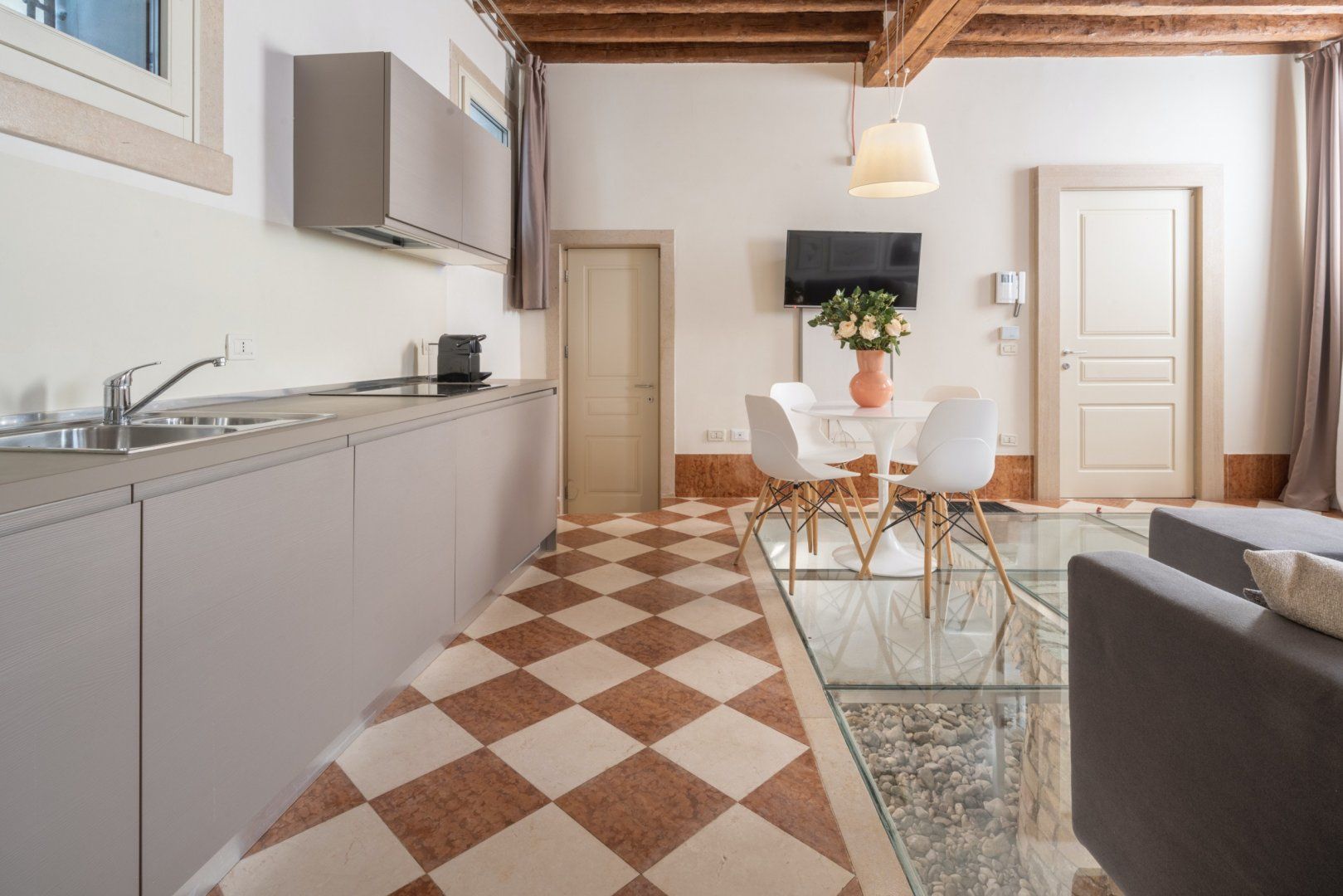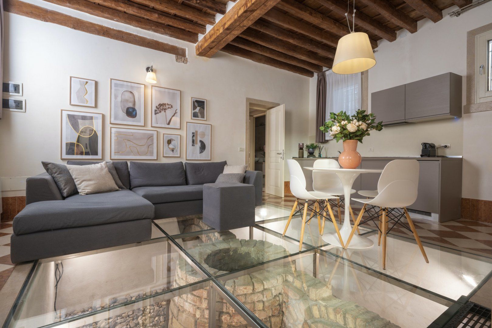 If you’re looking for something a little quirky, you’ve found it. Overlooking the famous Canale dei Greci, this cosy apartment is right in the thick of Venice’s fascinating centre, and with the water bus stop just a five-minute walk away, the city is yours to explore. The sofa bed makes this home ideal for a small family or two couples travelling together, but the highlight here has to be the living area’s glass floor, exposing an ancient well below.