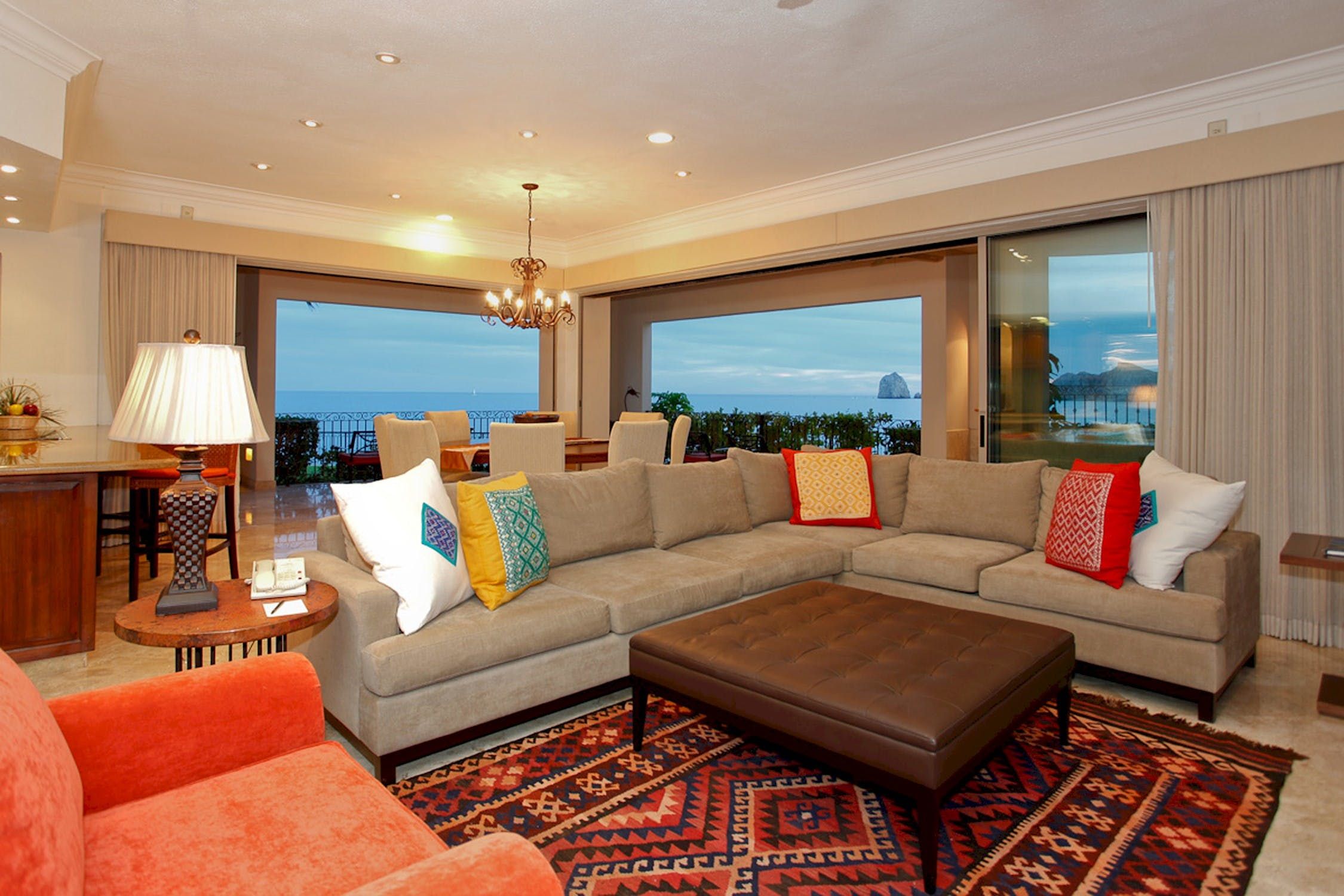 Perched on the ocean front, this luxury villa overlooking Medano Beach, Land's End and Cabo San Lucas, offers sweeping views from every room in the home. That being said, there's no better spot to catch the sunrise and sunset than outside on the 1000 square feet terrace.
