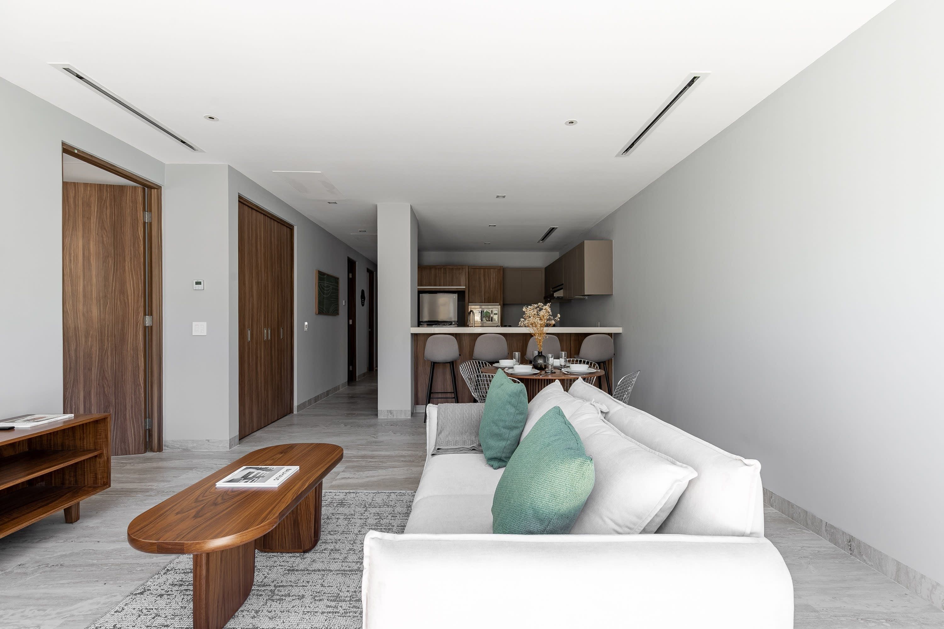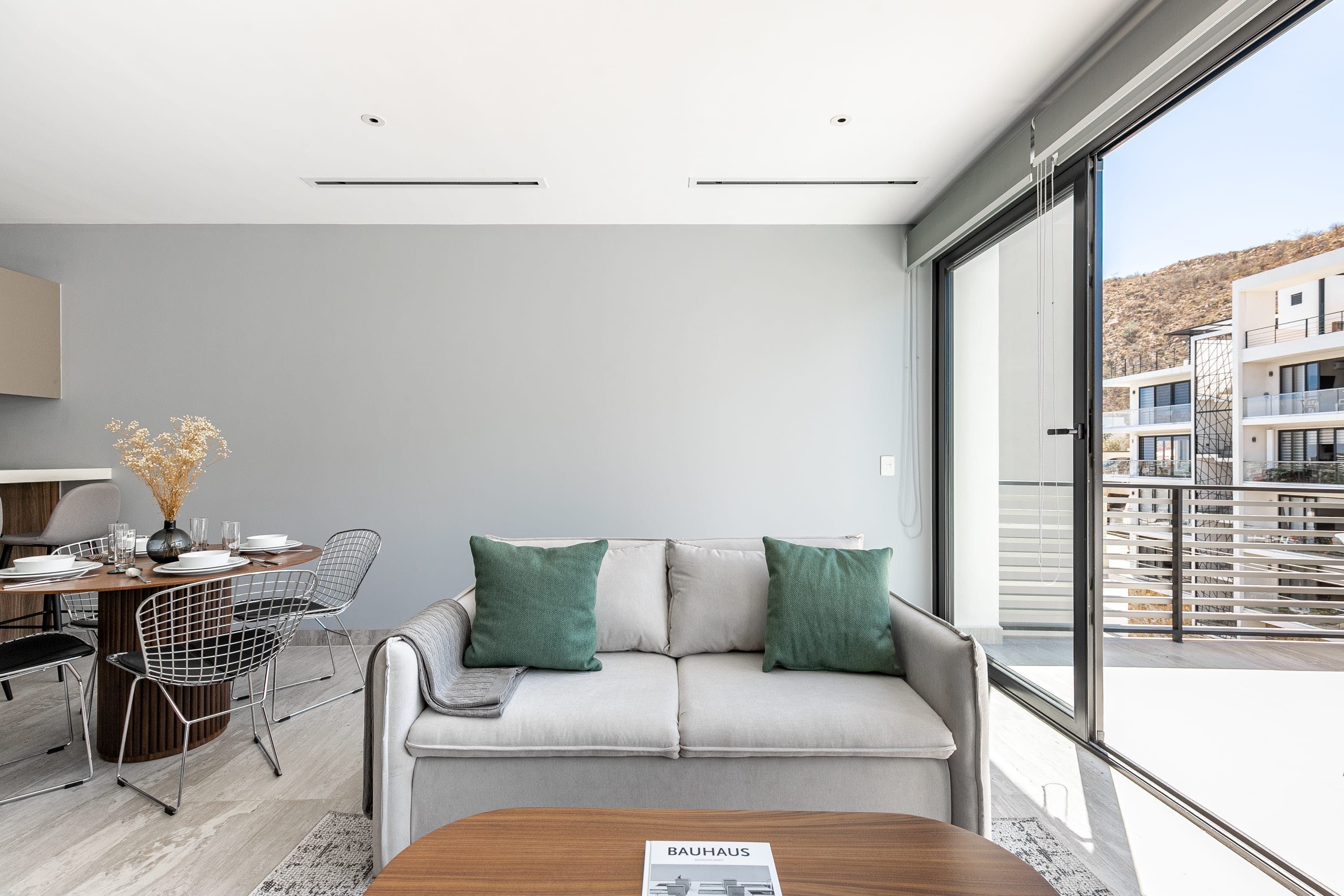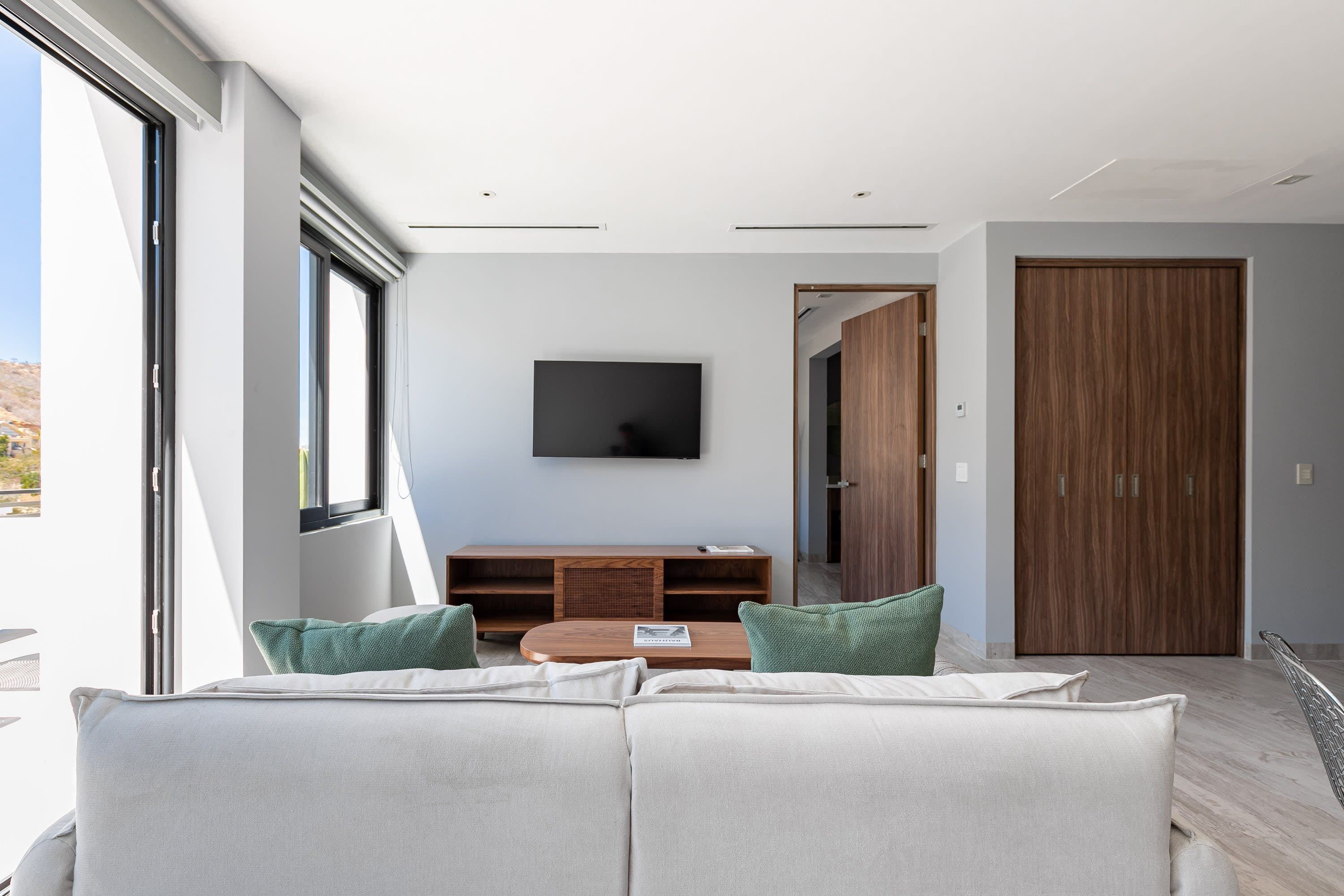This modern and stylish apartment in downtown Cabo San Lucas is perfect for families or groups of friends. With three bedrooms, two bathrooms, a balcony, and a fully-equipped kitchen, guests can enjoy all the comforts of home. The highlight of this apartment is the exclusive rooftop terrace with access to a pool. Guests can also benefit from 24-hour security, contactless check-in, fast wi-fi, comfortable bedding, designer coffee, and bathroom amenities. The location is unbeatable, with local stores, restaurants, and parks just steps away. The marina is also nearby, where sailboats, catamarans, and yachts come to dock. Free private parking is available nearby and guests can easily explore the area on foot or by car.