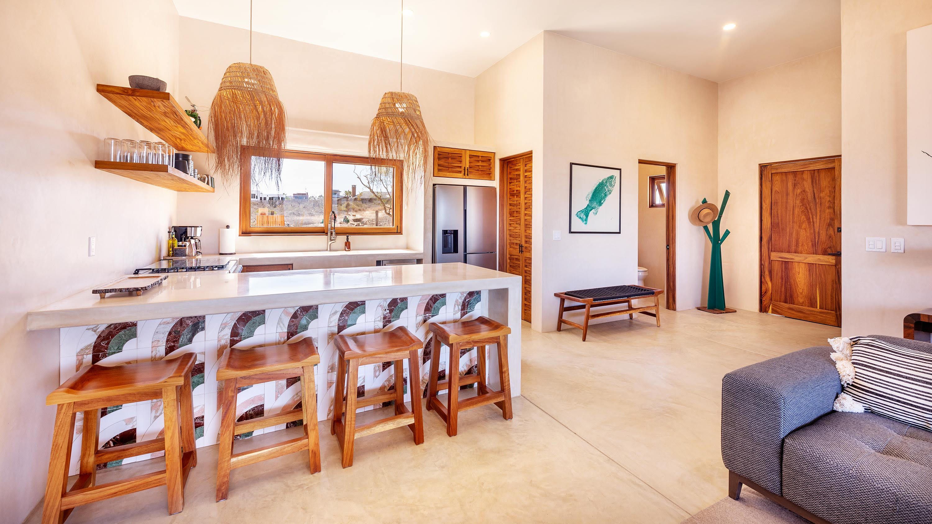 This beautiful villa is immersed in the desert beauty of Baja California Sur, nestled between the Sierra Laguna mountains and the Pacific coastline. The private pool and hot tub offer space to relax under the sun, while the terrace boasts some stunning views right out to the sea. Every bedroom has its own en-suite, and the third bedroom has two single beds accessed by ladders, ideal for kids. The nearest sandy beaches are an easy walk away, but we think you might want a car here for further exploration of the area.