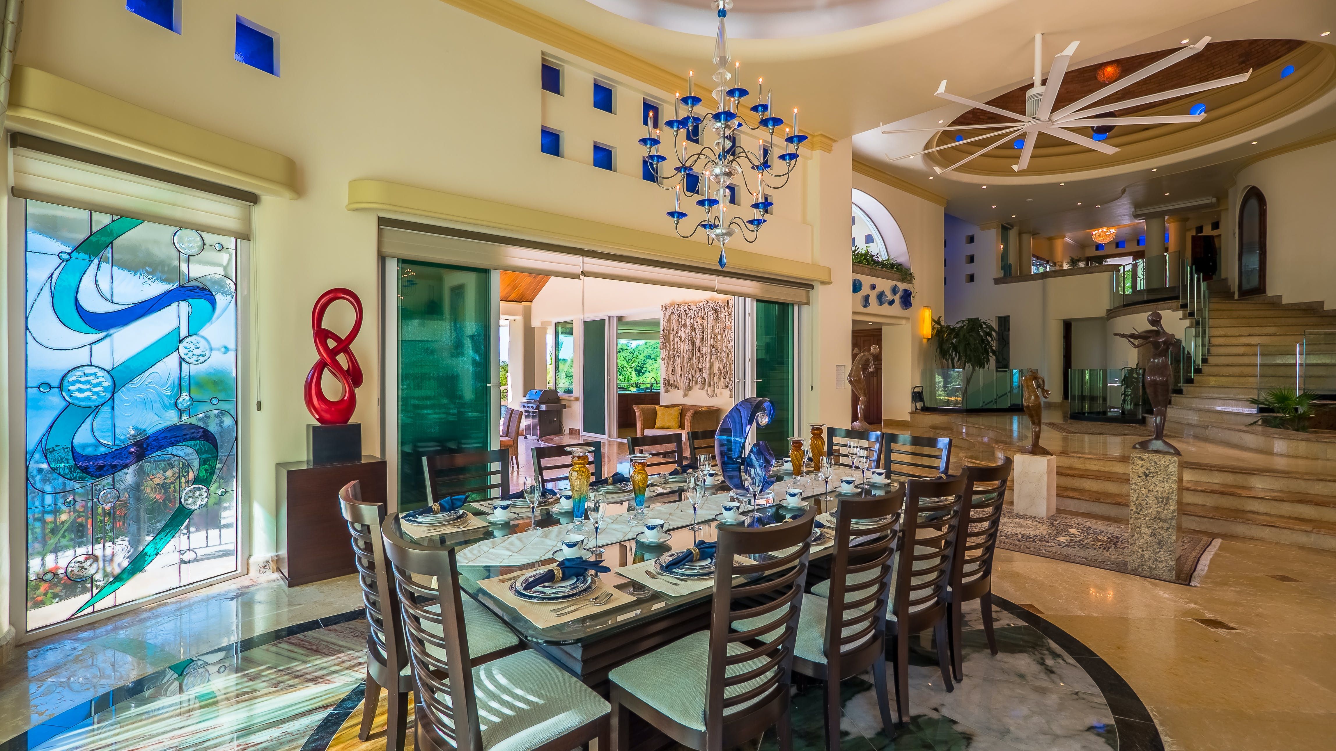 *While there is plenty of room for everyone at the outdoor dining area, the indoor dining table seats twelve so isn’t big enough to accommodate everyone when the villa is at full occupancy.