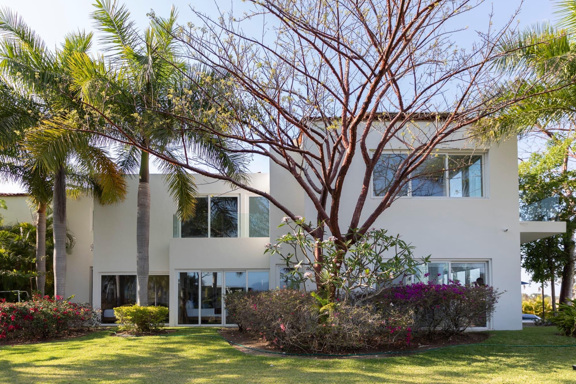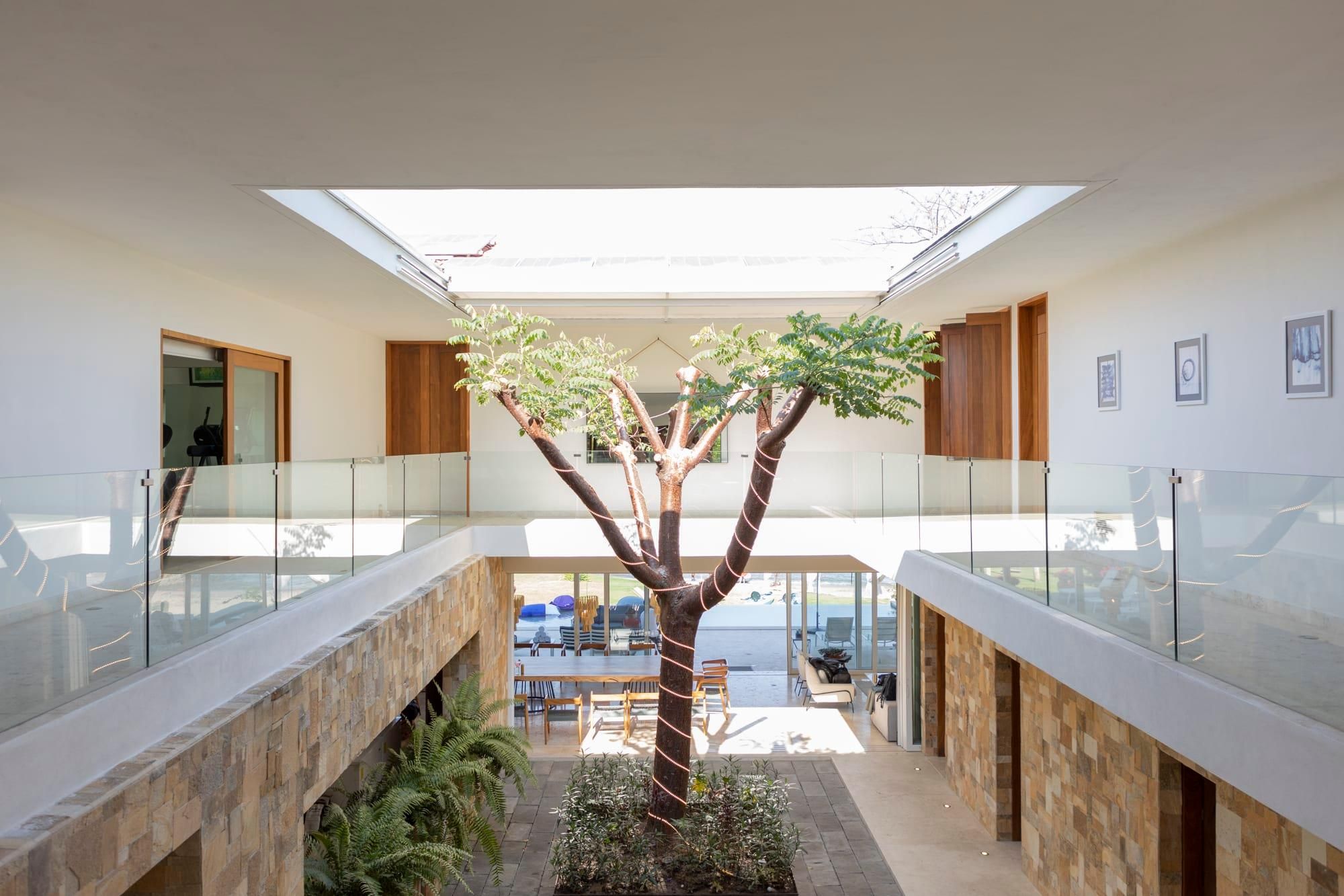 Enter the home and your eye will definitely be drawn to the indoor tree. Reaching towards the skylight and surrounded by ferns, this focal point is lively and fun, but also goes a long way in brightening up the villa. Not too far away from this courtyard, you’ll find a dining space perfect for eating chef-prepared meals together and simply enjoying each other's company. There’s also a barbecue for nights when you’d rather stand around the fire basking in the aroma of whatever you’re sizzling on the grill.