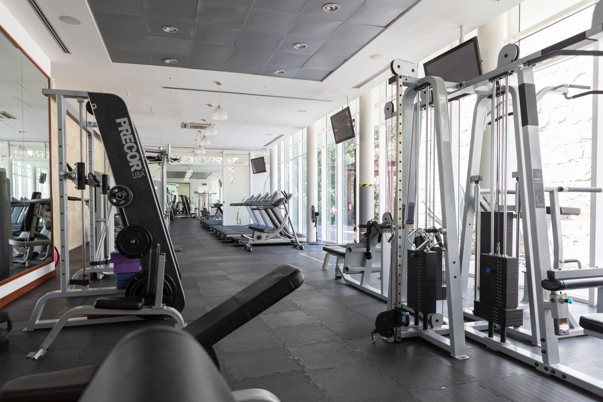 *The gym is shared with other residents, and so is the hot tub