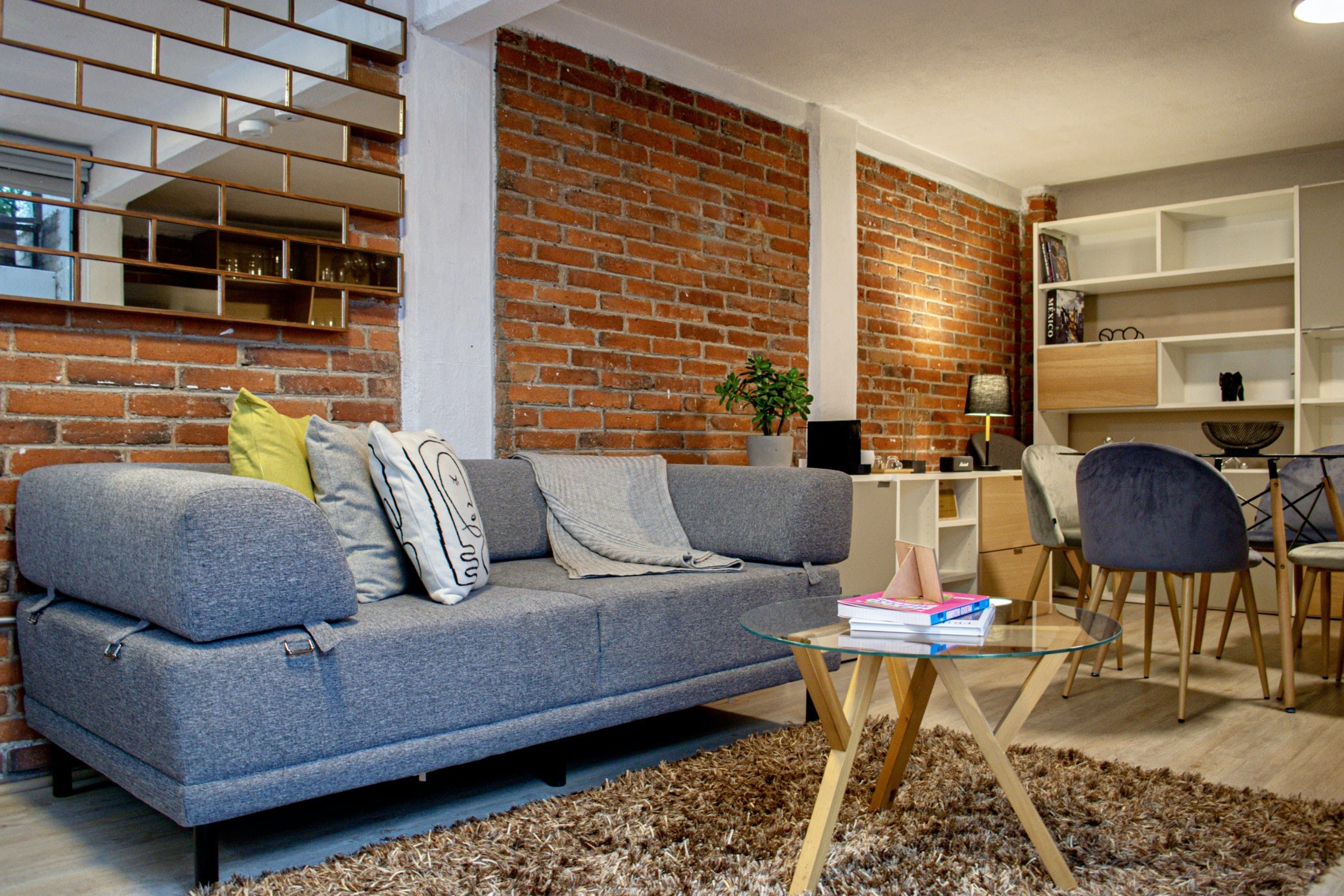 This cosy loft is your ticket to authentic Coayacan immersion. Right in the heart of the city, you'll be a short walk away from abundant parks, historical sites, and famous bars and restaurants. The home itself comes with its very own outdoor space to enjoy morning coffee or evening drinks. It's a compact space – with a sofa bed in the living room for your third guest. And there's no oven in the small kitchen, but who needs one when the smell of sizzling tacos and fresh quesadillas drifts over from the market down the road?