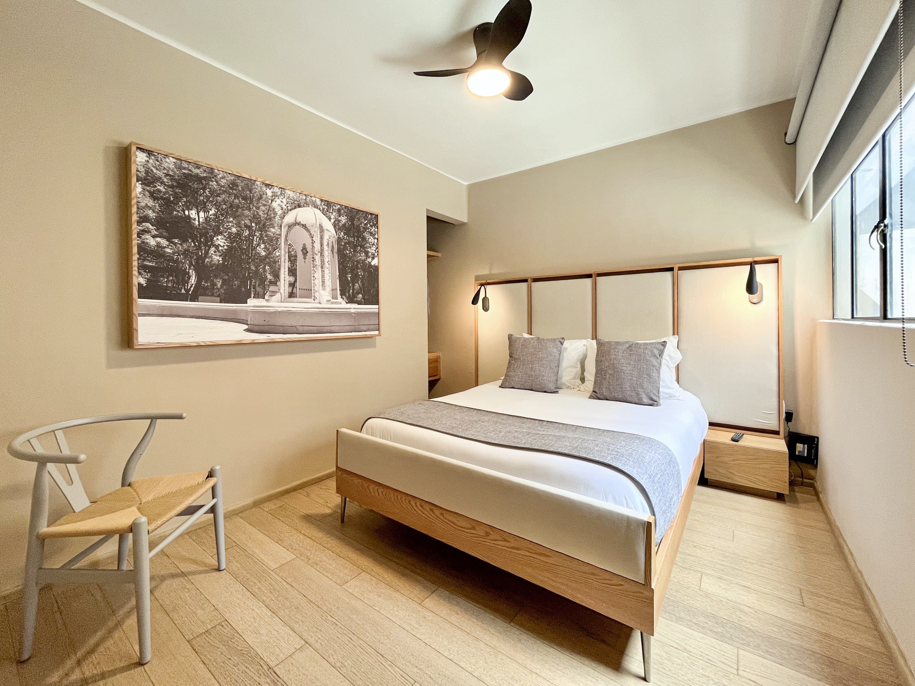 Our interior designer has crafted a clean and modern oasis that will instantly make you feel at home. This urban retreat, located in the heart of Colonia Nápoles, Mexico City, offers a serene escape from the bustling city streets. Step inside and be captivated by the chic yet welcoming atmosphere created by tasteful decor and stylish furnishings. The fully equipped kitchen is perfect for culinary adventures, while the comfortable bedrooms provide a restful sanctuary at the end of each day. One of the highlights of this property is the terrace, where you can unwind and bask in the warm sunlight with a good book or a cup of coffee. Experience tranquility amidst the vibrant energy of Mexico City at our modern hideaway.