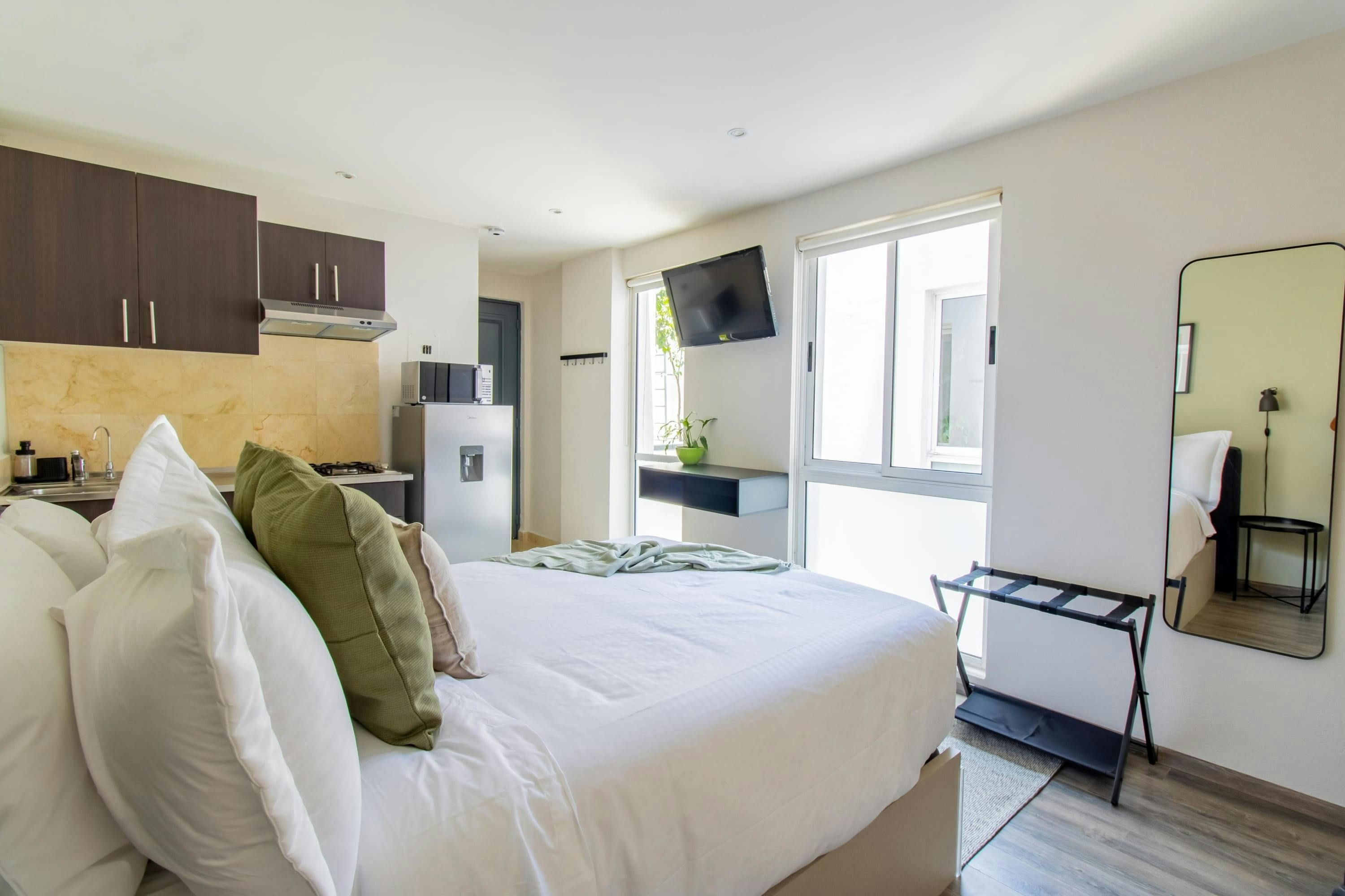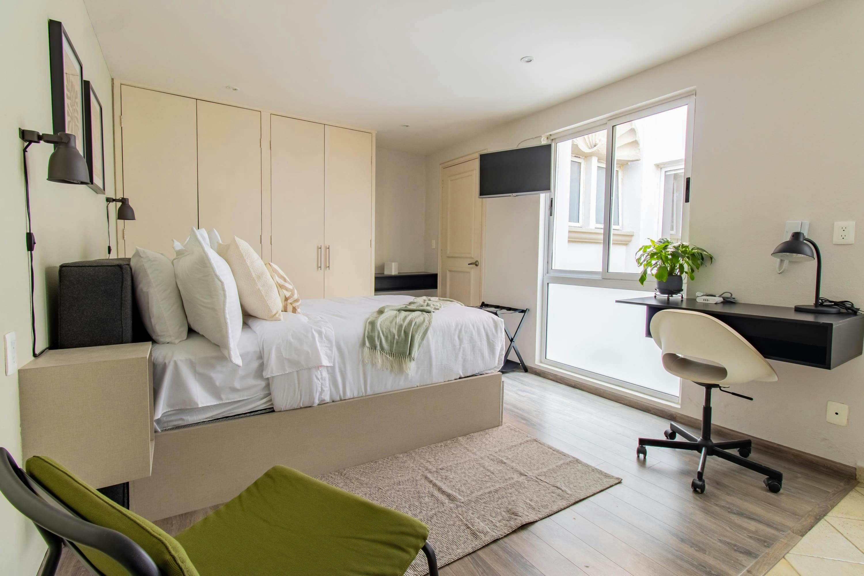 Discover a distinctive lodging journey in our spacious loft, thoughtfully crafted for an unparalleled hospitality experience. Nestled in the coveted locale of Polanco, soak in the vibrant atmosphere and indulge in the city's rich culture. This space offers the perfect blend of comfort and style, with natural light cascading through oversized windows, highlighting the impeccable design. Step into the fully-equipped kitchen where you can craft your morning brew or prepare a gourmet dinner, boasting an array of utensils and appliances at your disposal. Unwind in the bathroom, designed for ultimate relaxation with plush towels and premium toiletries at your service, ensuring your utmost comfort. Whether you're exploring the city or immersing yourself in the tranquil ambiance, this loft is your urban sanctuary.