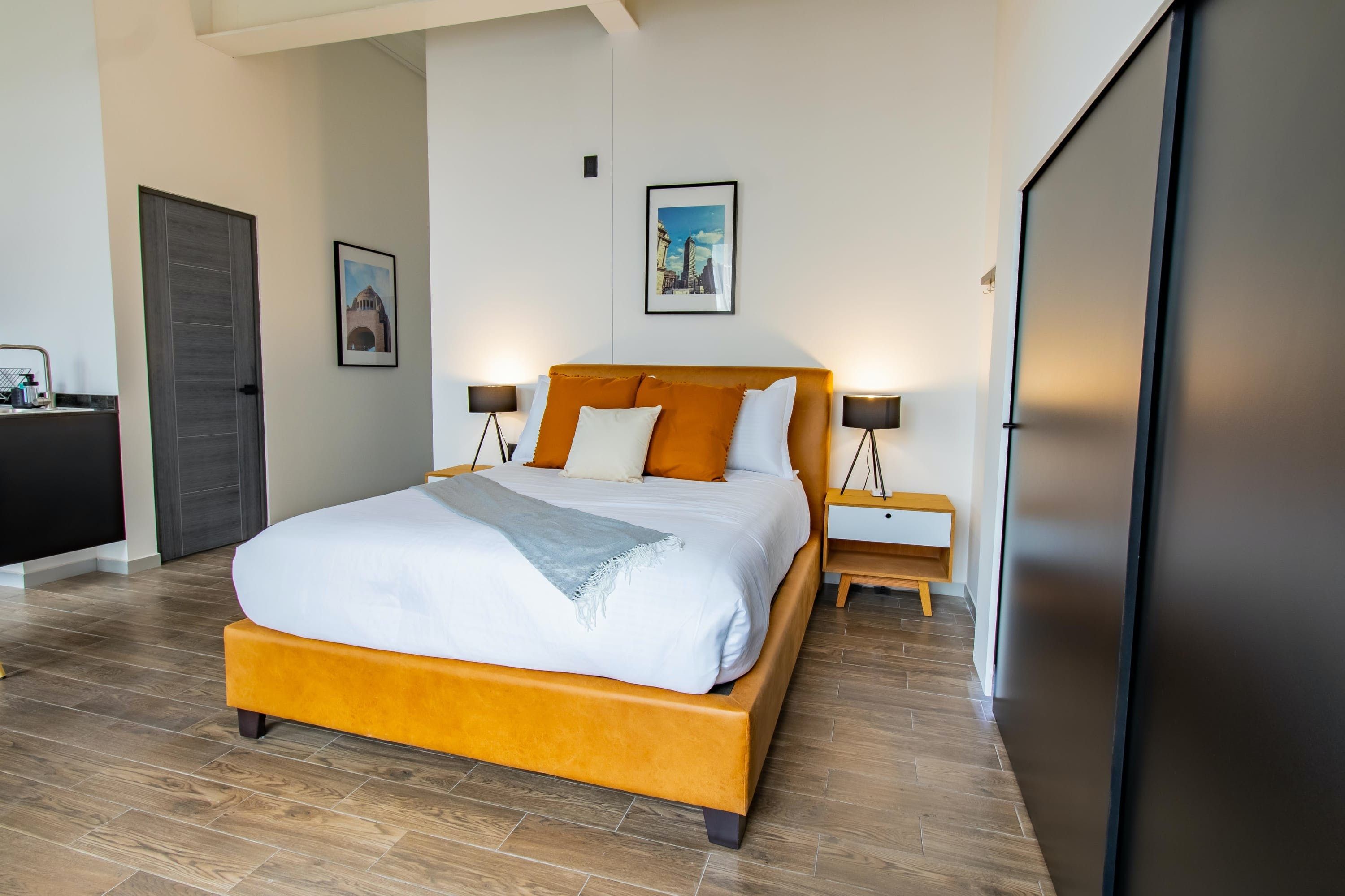This home is in the perfect location to explore Mexico City. Halfway between the Monument to the Revolution and the Palacio de Bellas Artes, you're in the heart of the city – yet the quiet side-street entrance feels separate from the bustle. There's no living area in this loft studio, but it features a fully equipped kitchen, a compact dining area, and a desk – and if you're looking for a more focused workspace, take advantage of the coworking lounge in the building. The functional style of this home isn't exactly memorable – but does it matter when you're this close to the sights?