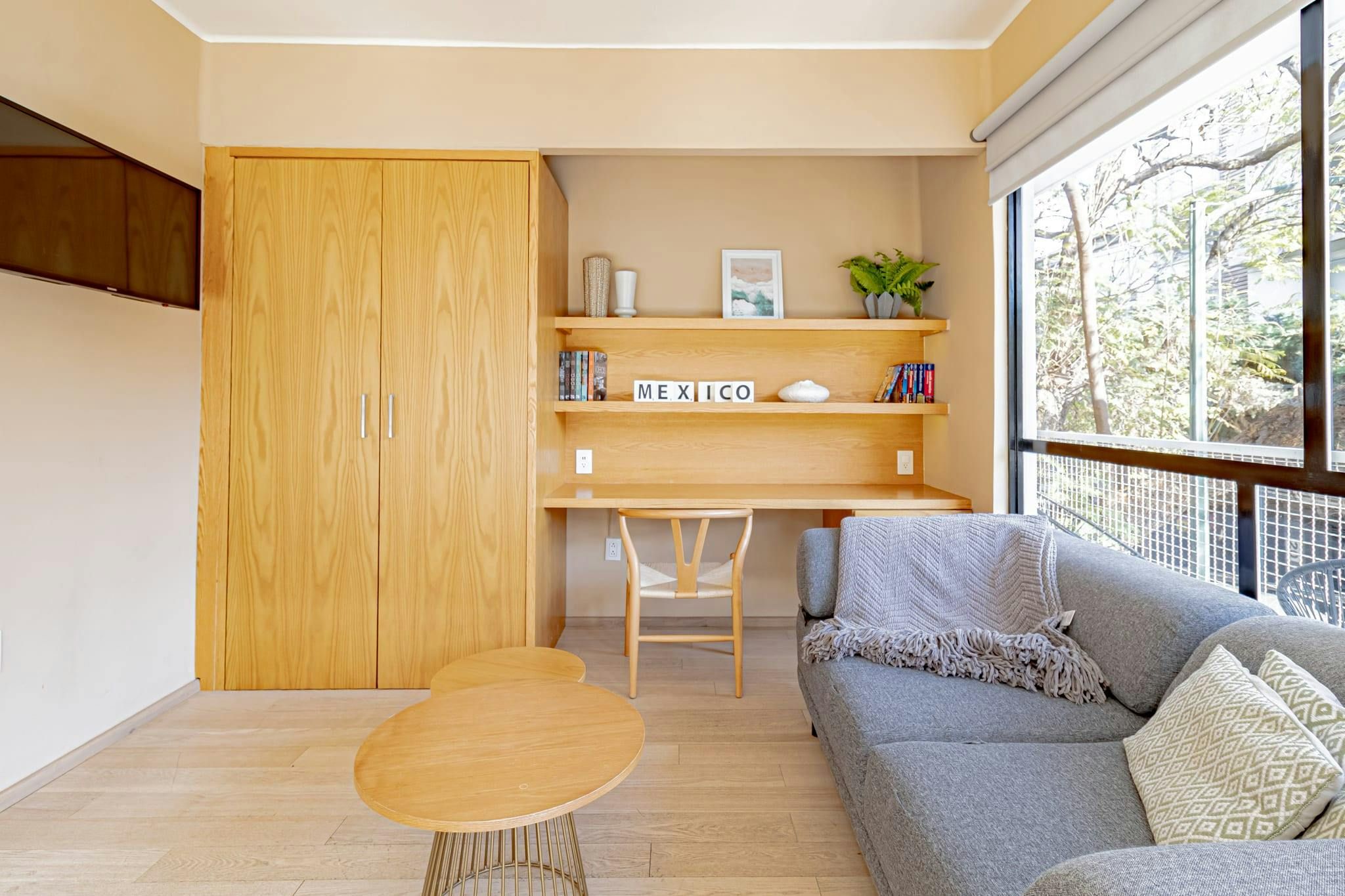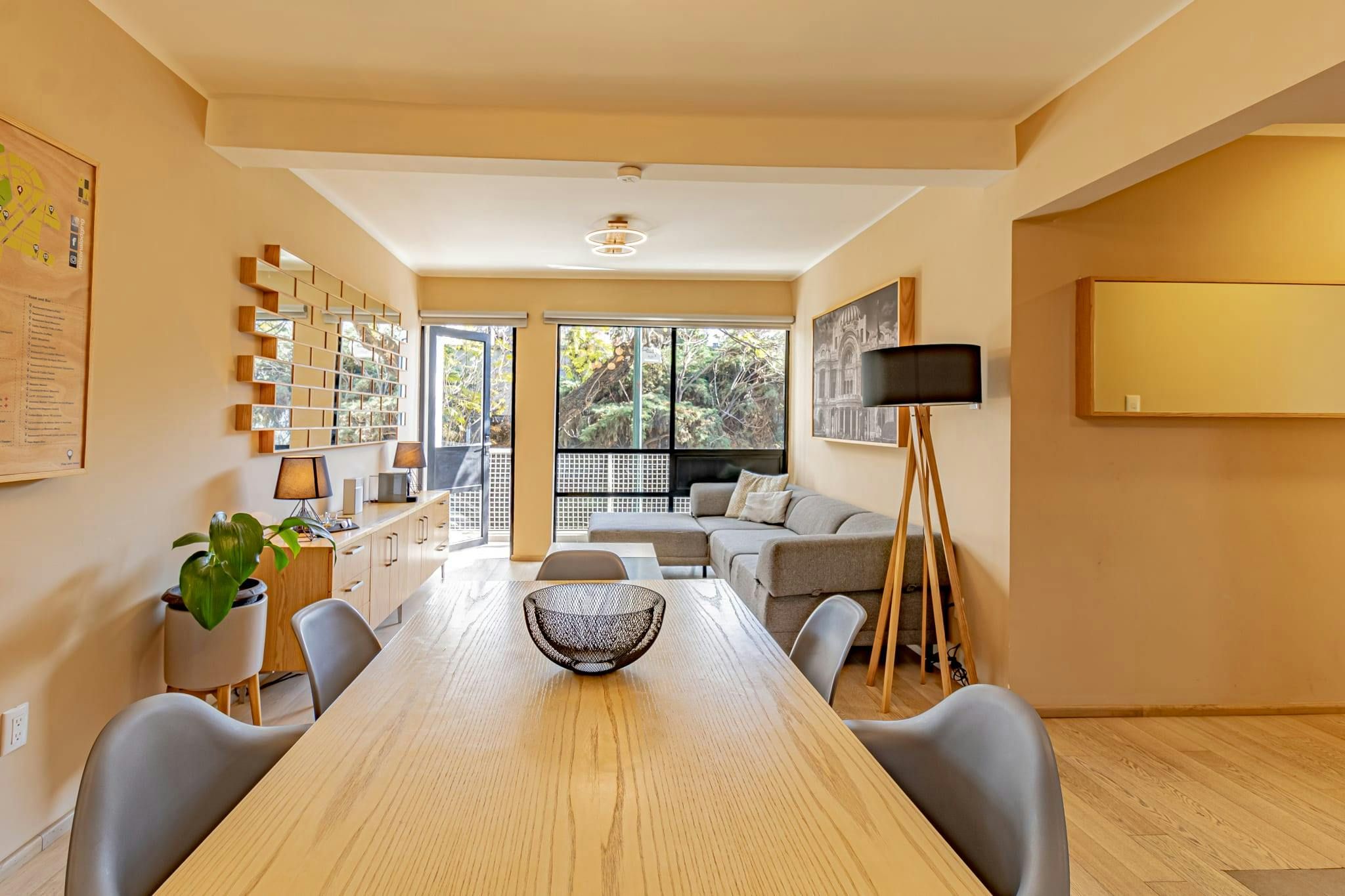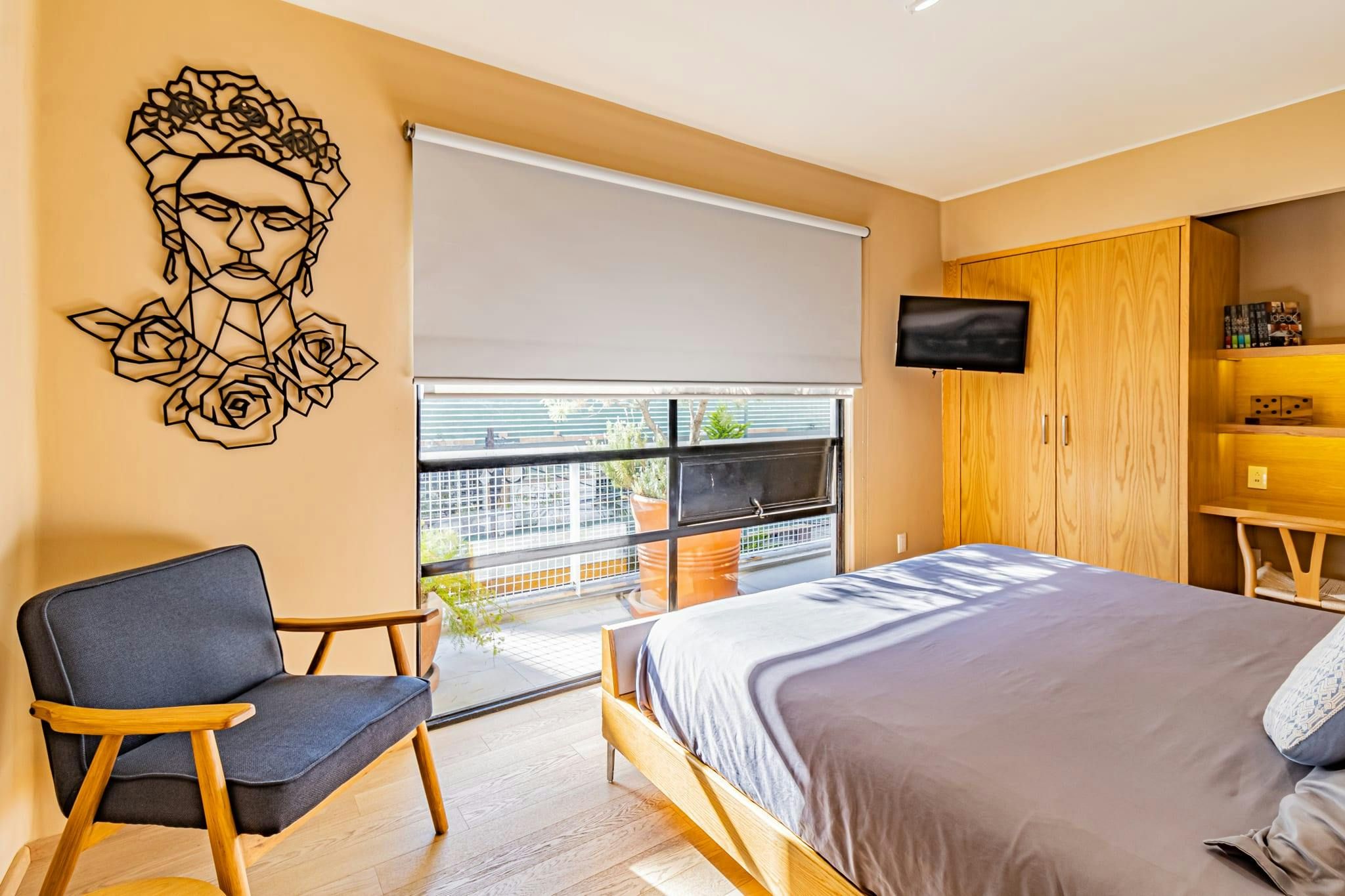 This sophisticated apartment is a tribute to Mexico City, exhibiting the most characteristic of the city in its walls and decoration. Immerse yourself in the rich culture as you step through the doors of this uniquely designed retreat. Adorned with vibrant colors, local artwork, and authentic touches, it encapsulates the spirit of this cosmopolitan metropolis. The tranquil ambiance welcomes you, offering a peaceful oasis amidst the energetic atmosphere outside. Relax in the cozy living area after a day exploring the neighborhood's lively streets and savor the flavors of Mexico City in the fully equipped kitchen. With two stylish bedrooms, each carefully curated with thoughtfully chosen furnishings, this urban escape provides comfort and respite. Whether you're seeking a romantic getaway or an immersive cultural experience, this enchanting Mexican abode promises a memorable stay in the heart of Colonia Nápoles.
