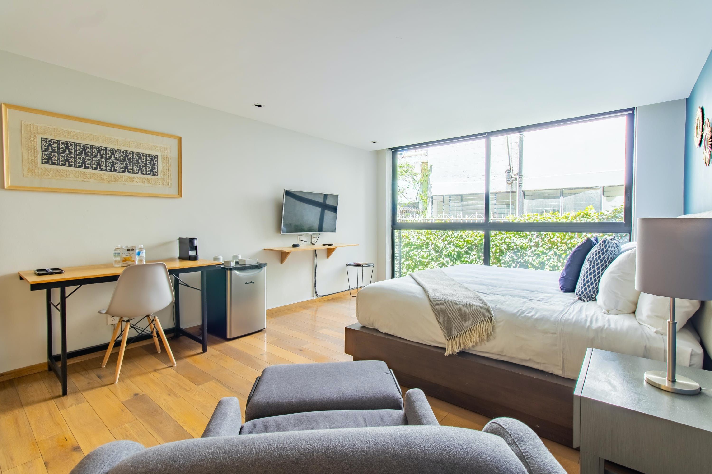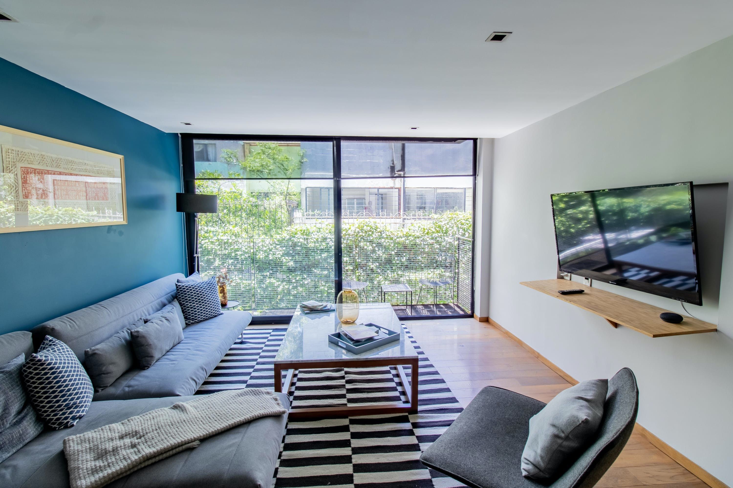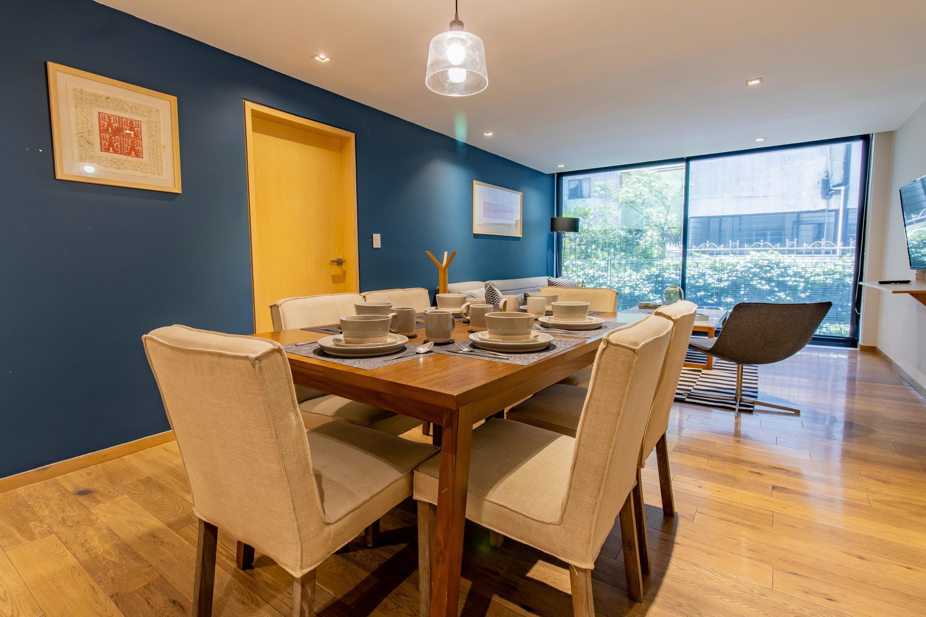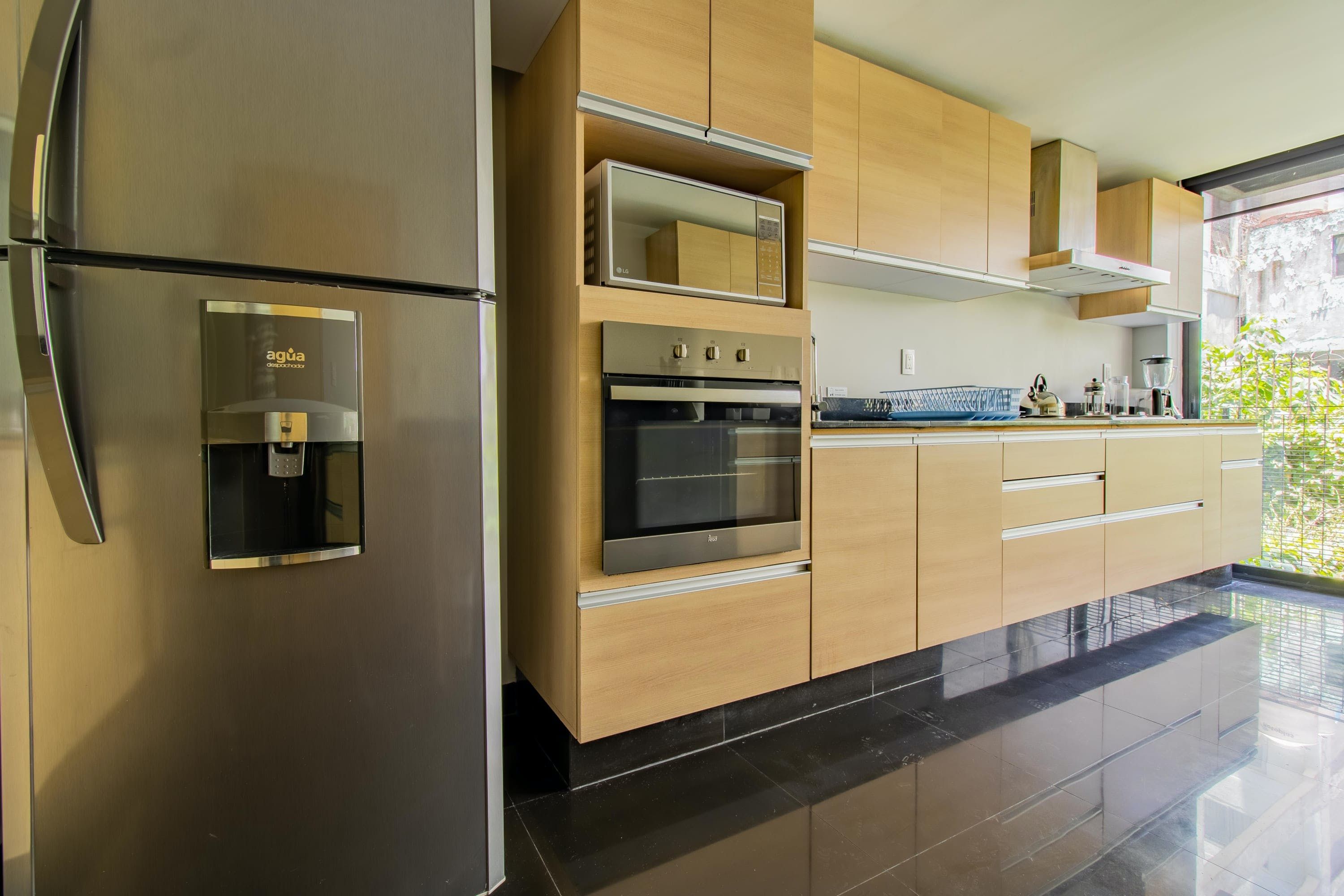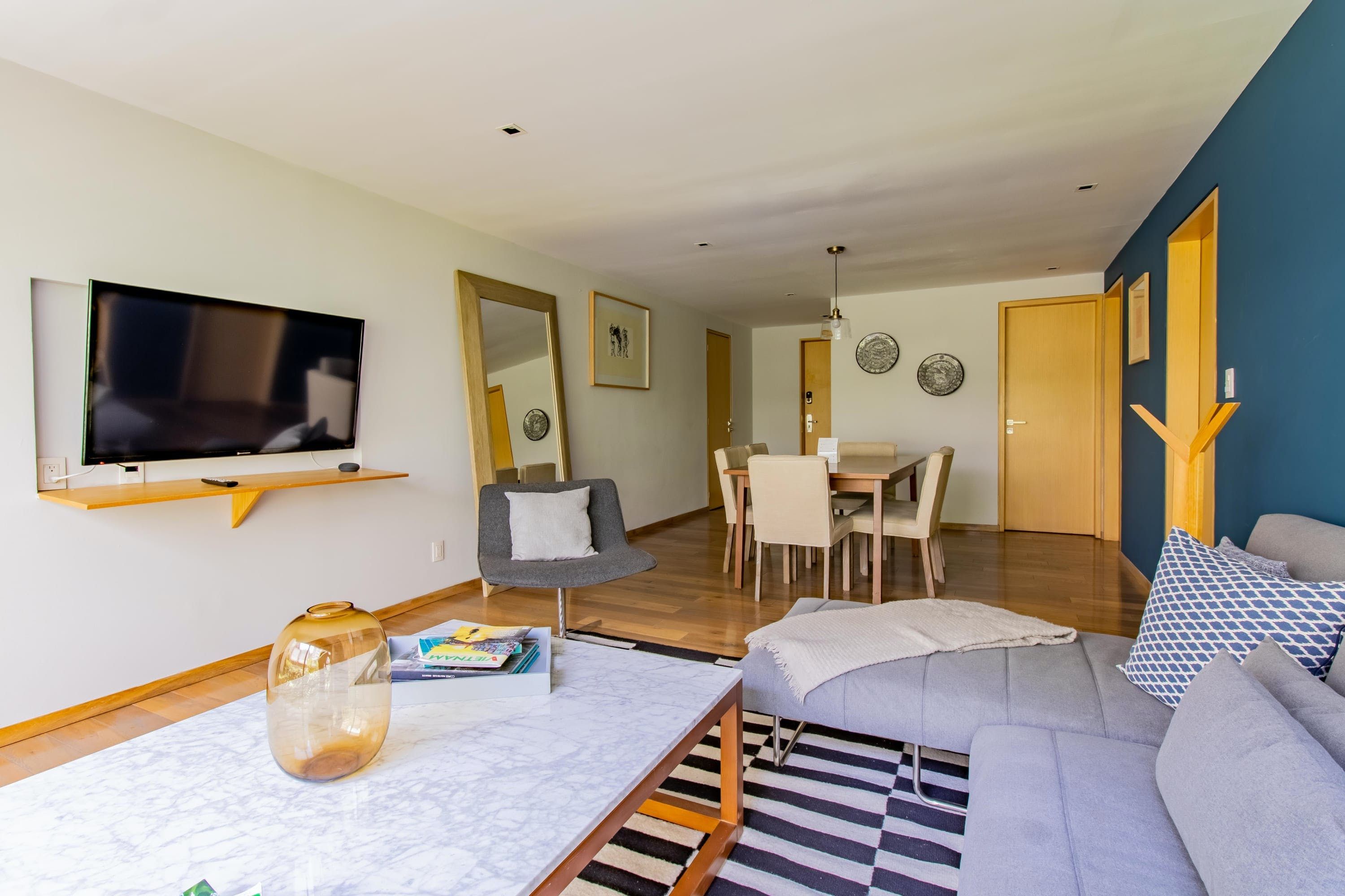 Welcome to our cozy 2-bedroom apartment in the prestigious neighborhood of Polanco. This bright and modern space offers you an exceptional experience during your stay in the vibrant city of Mexico City. Upon entering the apartment, you will be welcomed by a modern and sophisticated living room, designed with attention to detail and high-quality furnishings. Relax on the comfortable sofa, take advantage of our high-speed internet in your workspace, or unwind on your balcony. The fully equipped kitchen is a dream come true for gastronomy enthusiasts. It features modern appliances such as a stove, an oven, a refrigerator, and a microwave, as well as cooking utensils and complete tableware. Don't wait any longer and book this incredible luxury apartment at Temístocles 40, Polanco, to enjoy an unforgettable experience in Mexico City!