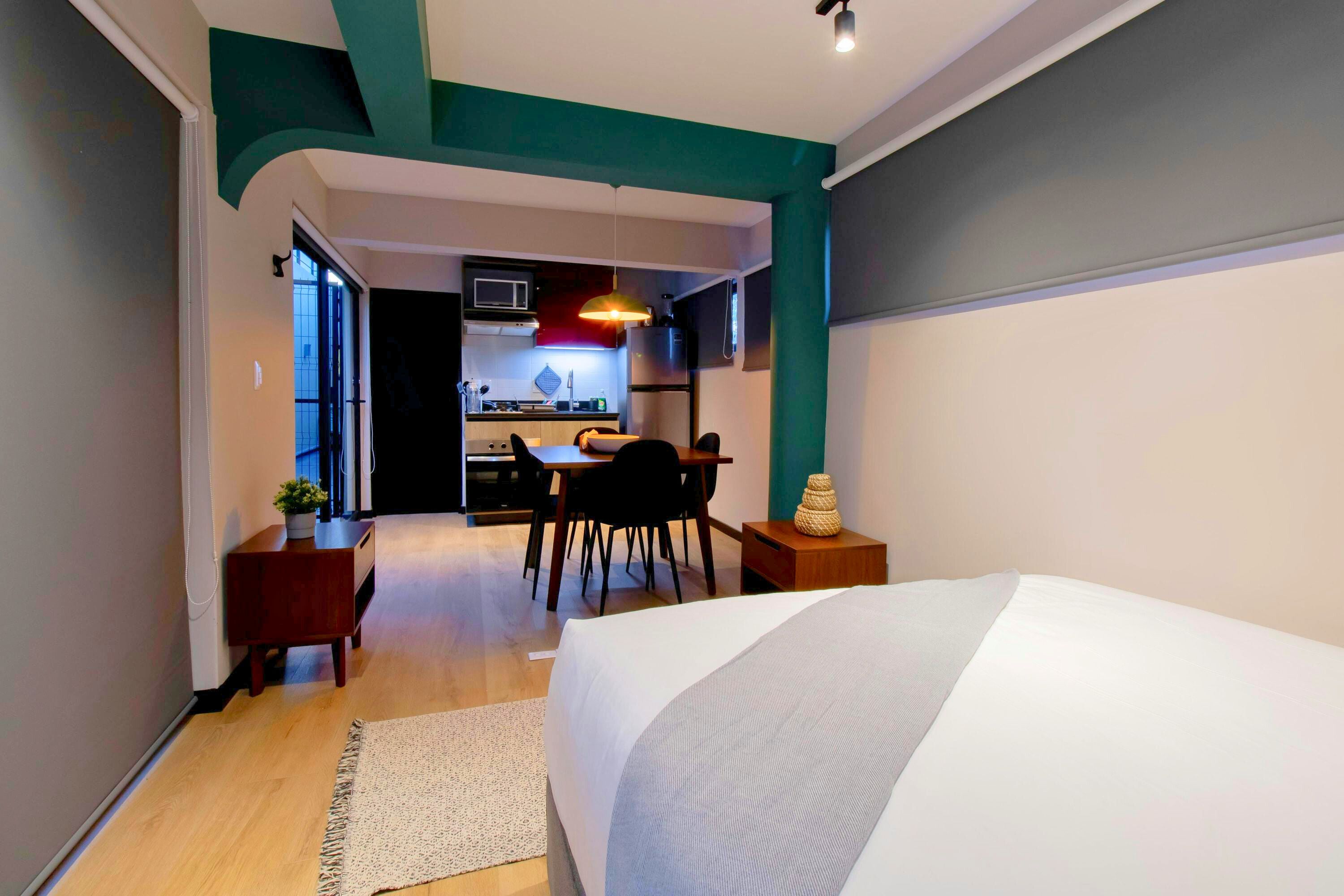 Discover luxury living in Condesa, CDMX, with our elegant Studio. This residence perfectly balances modern design and classic charm. Step out onto the rooftop garden, an urban oasis. Here, you can relax, read, or take in the cityscape. Rest easy with 24/7 on-site security. The apartment boasts a luxurious interior with high-end finishes and designer touches for your comfort. Your stay promises an unforgettable experience