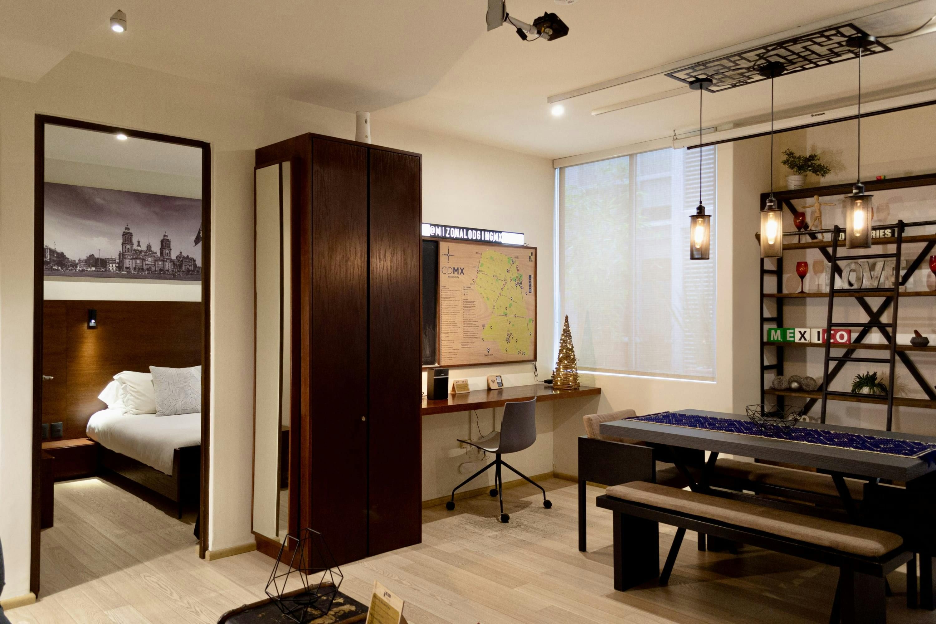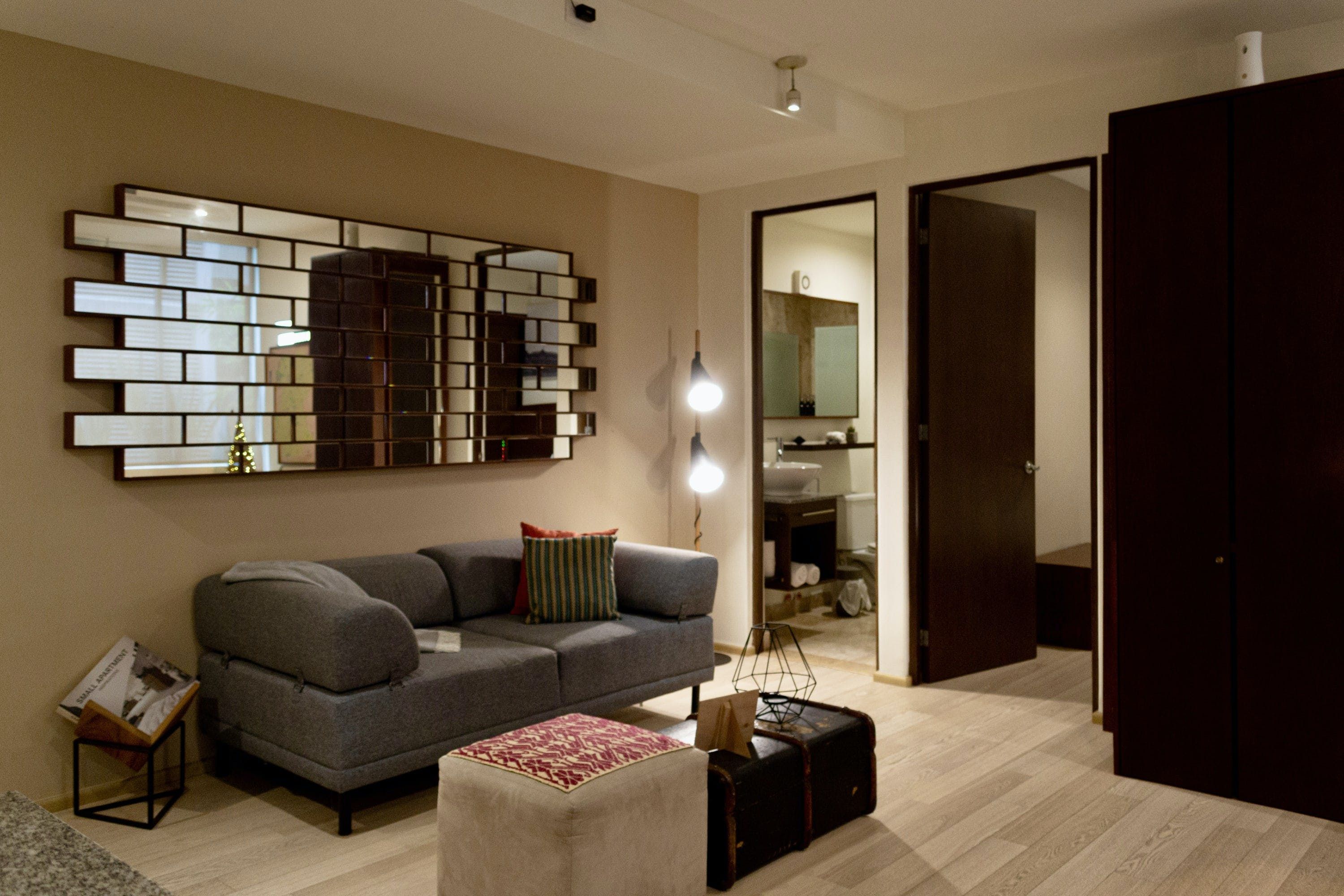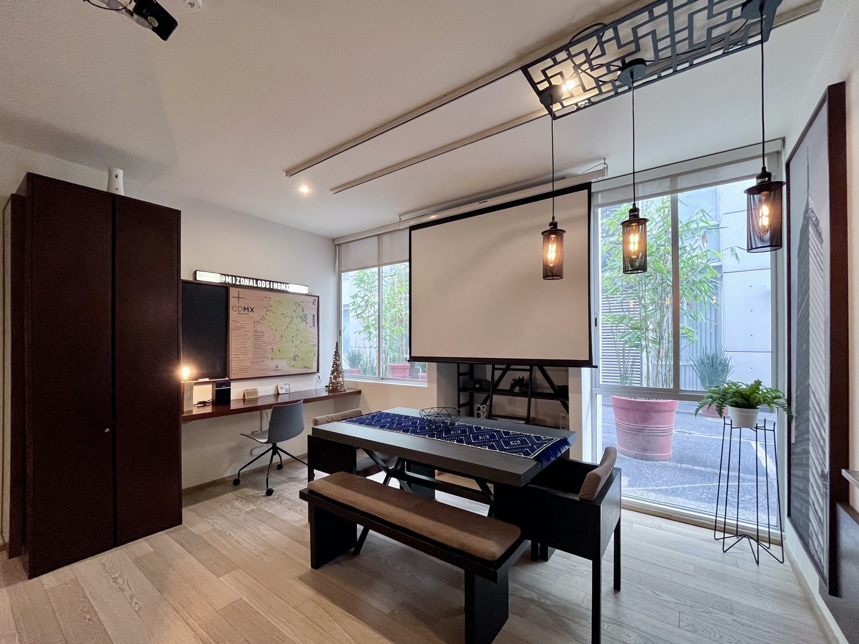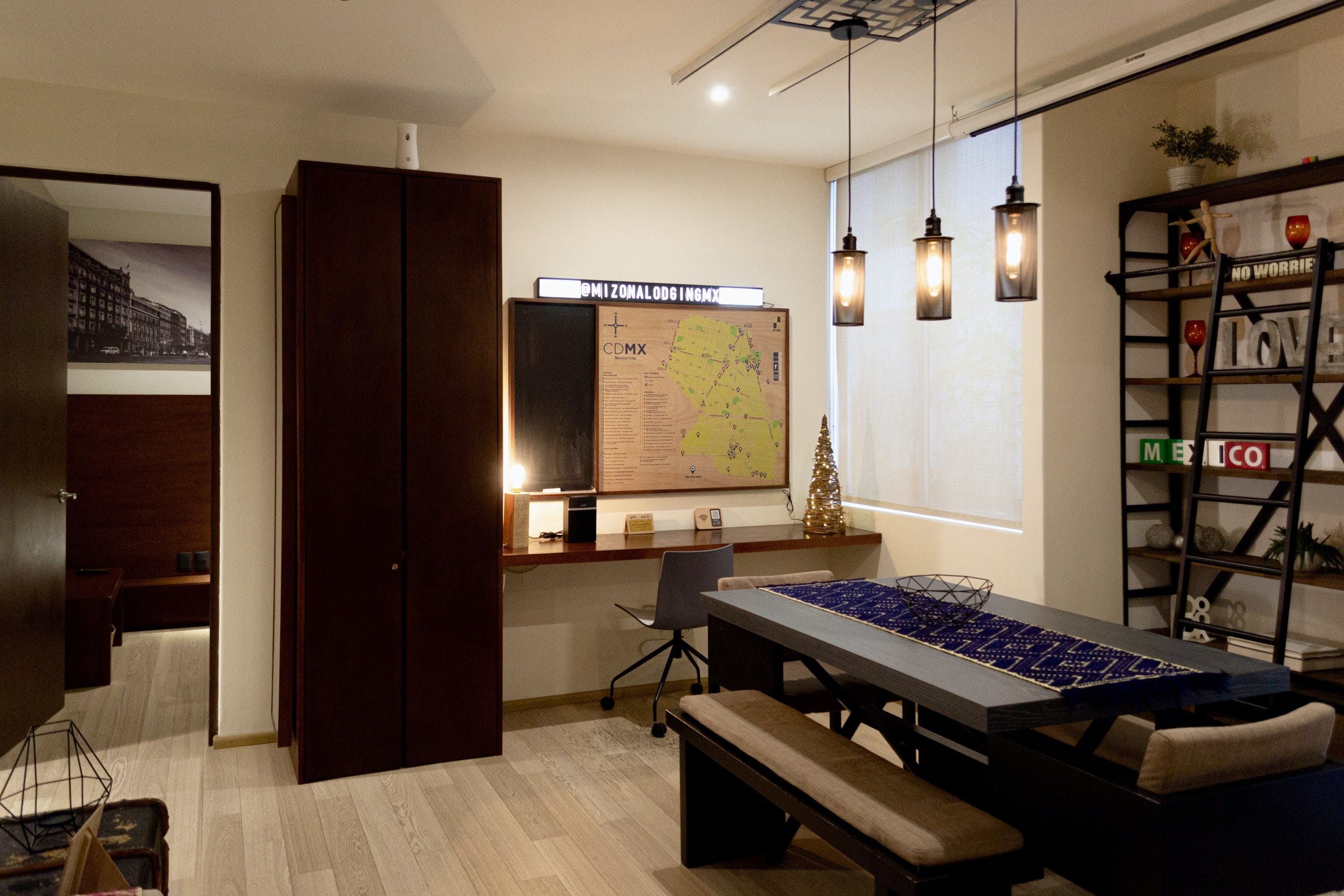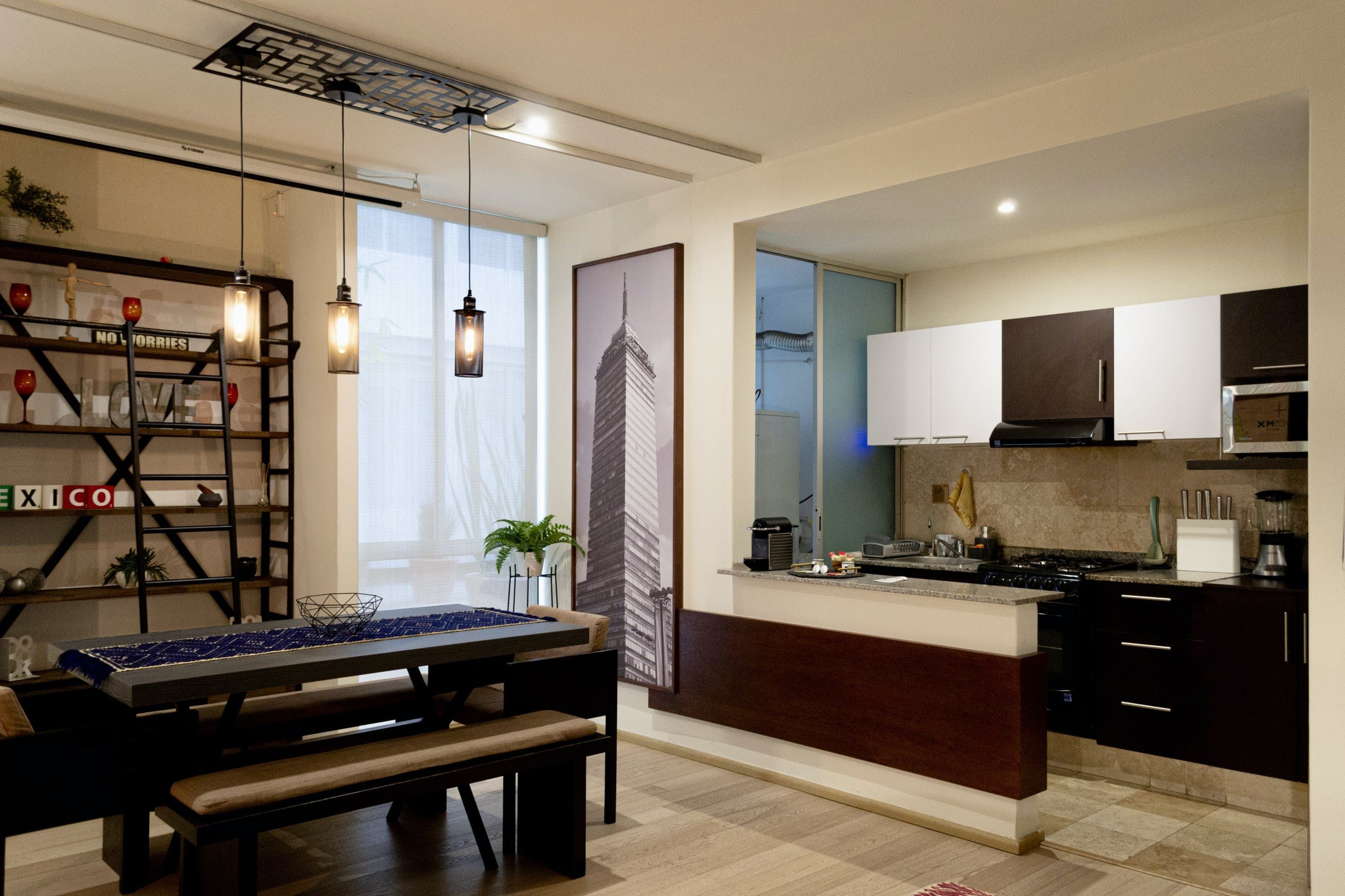 The apartment offers an elegant and urban design with a unique touch. Decorated in neutral tones and warm lighting, this urban oasis aims to create an atmosphere that feels like stepping into a serene retreat amid the vibrant dynamism of the city. The space invites guests to unwind and recharge, providing a peaceful sanctuary after a day exploring the bustling streets. With a blend of contemporary art pieces and cozy furnishings, the ambiance exudes both comfort and sophistication. Open the windows to let in the gentle breeze while enjoying panoramic views of Ciudad de México. Immerse yourself in the city's cultural landmarks, indulge in authentic cuisine, then return to this charming urban getaway to relax and rejuvenate for another exciting day.