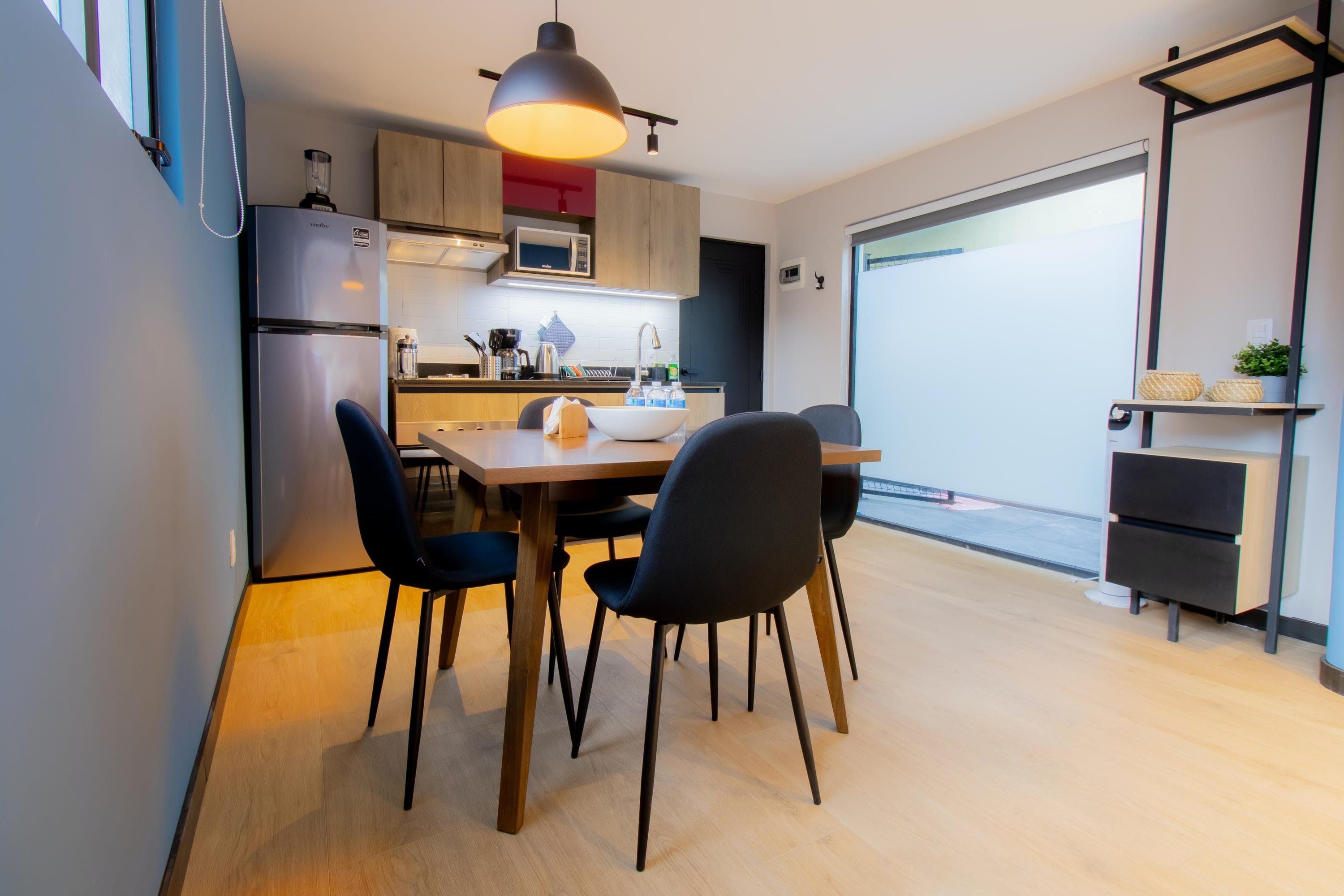 This is a stunning home with a private terrace in Condesa, CDMX. The home is perfectly balanced between modern design and classic charm. The terrace is the perfect place to enjoy coffee with a view of the city. The rooftop garden is an urban oasis where you can relax, read, or take in the cityscape. The apartment boasts a luxurious interior with high-end finishes and designer touches for your comfort. Your stay promises an unforgettable experience.