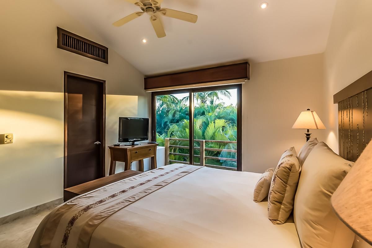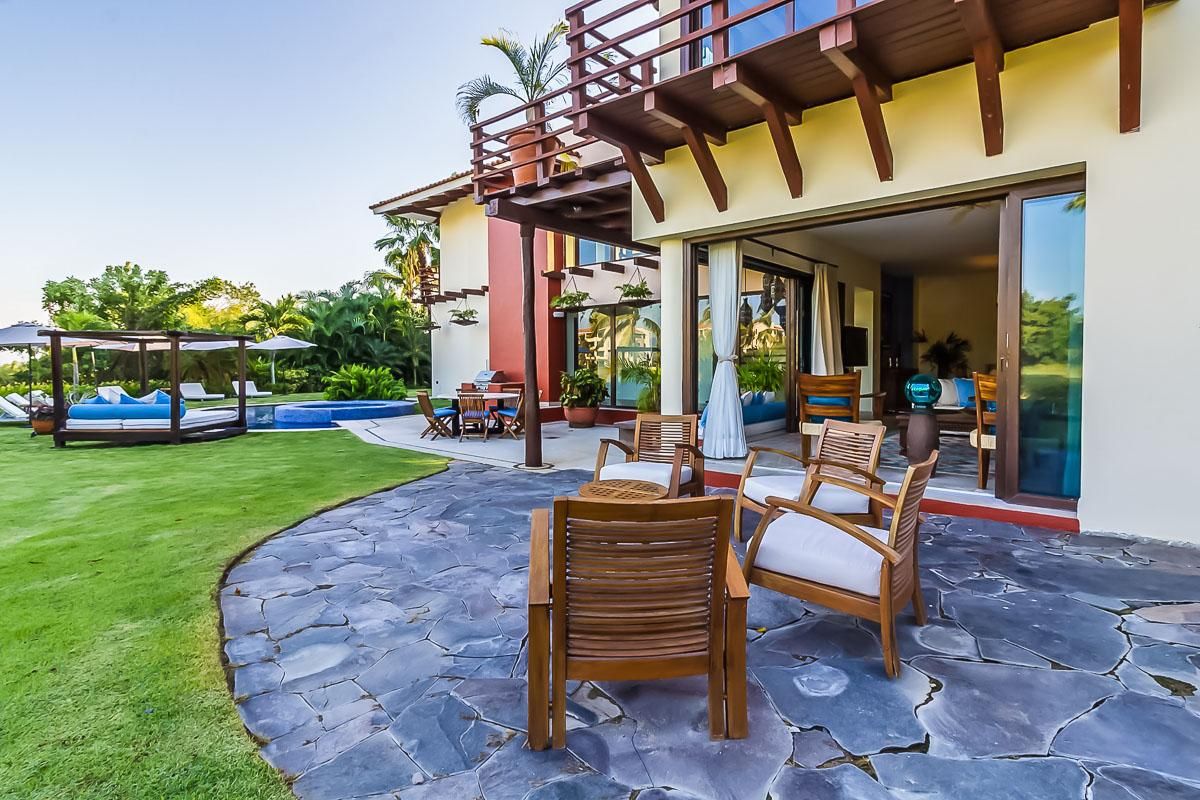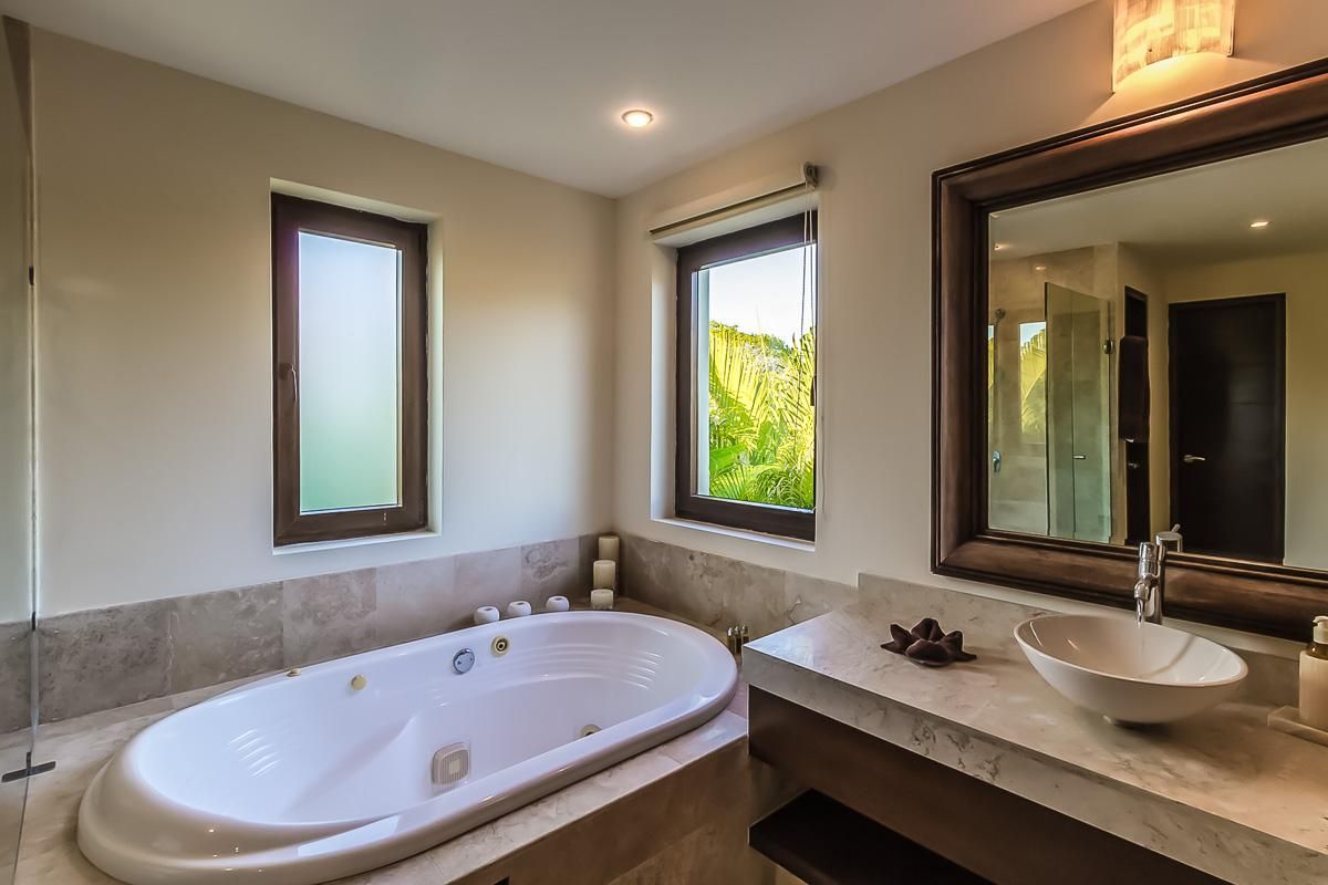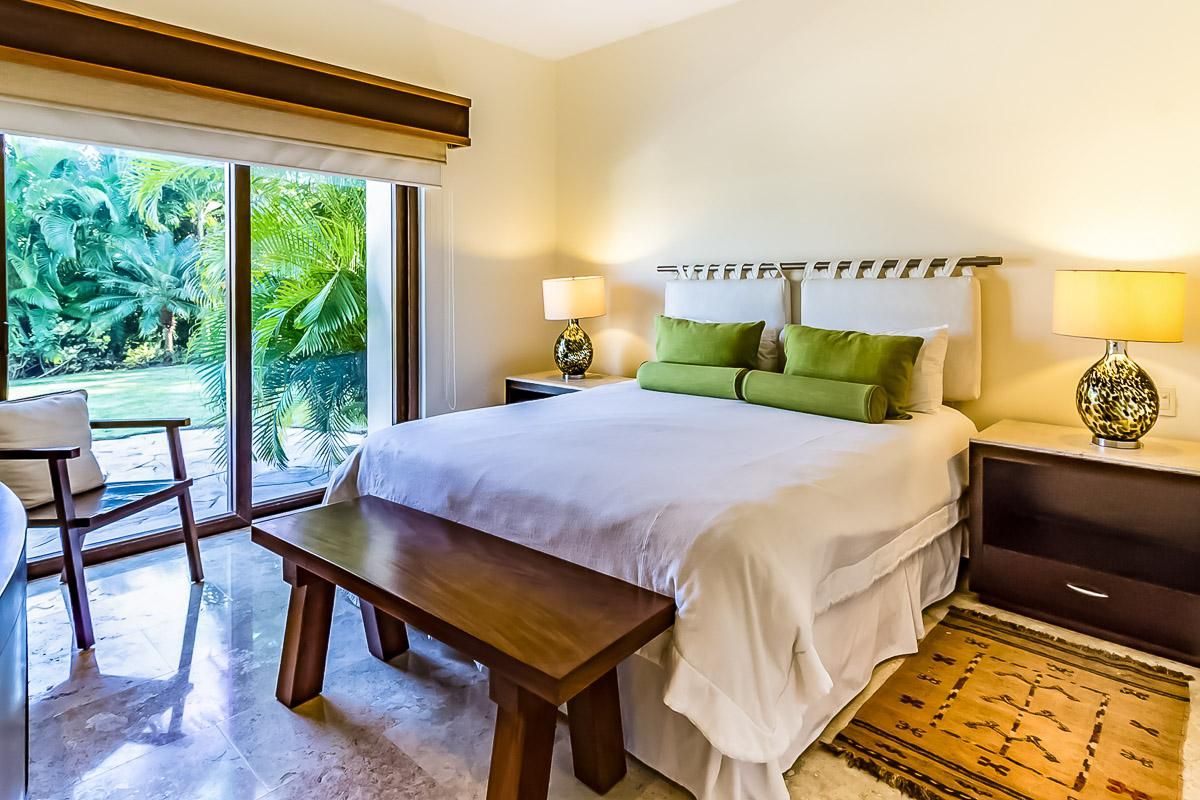 The villa nods to traditional Mexican style but has been designed to blend the old and new. Exposed wooden beams and tiled floors sit alongside epic floor-to-ceiling glass walls that bring the outside in, with the verdant garden visible from almost every angle. When you’re inside, you’ll spend your time cooking in the gourmet kitchen – or watching a private chef do the hard work for you – and relaxing in comfortable luxury. The master suite boasts a whirlpool tub that’s ideal for soaking away your troubles, as well as a private deck. You can sip your morning coffee while drinking in the view of the golf course.