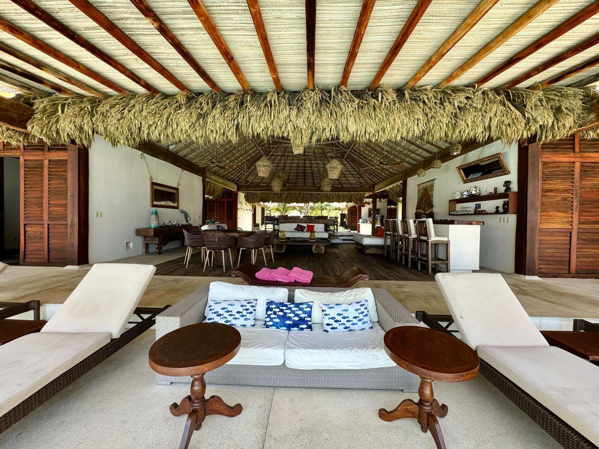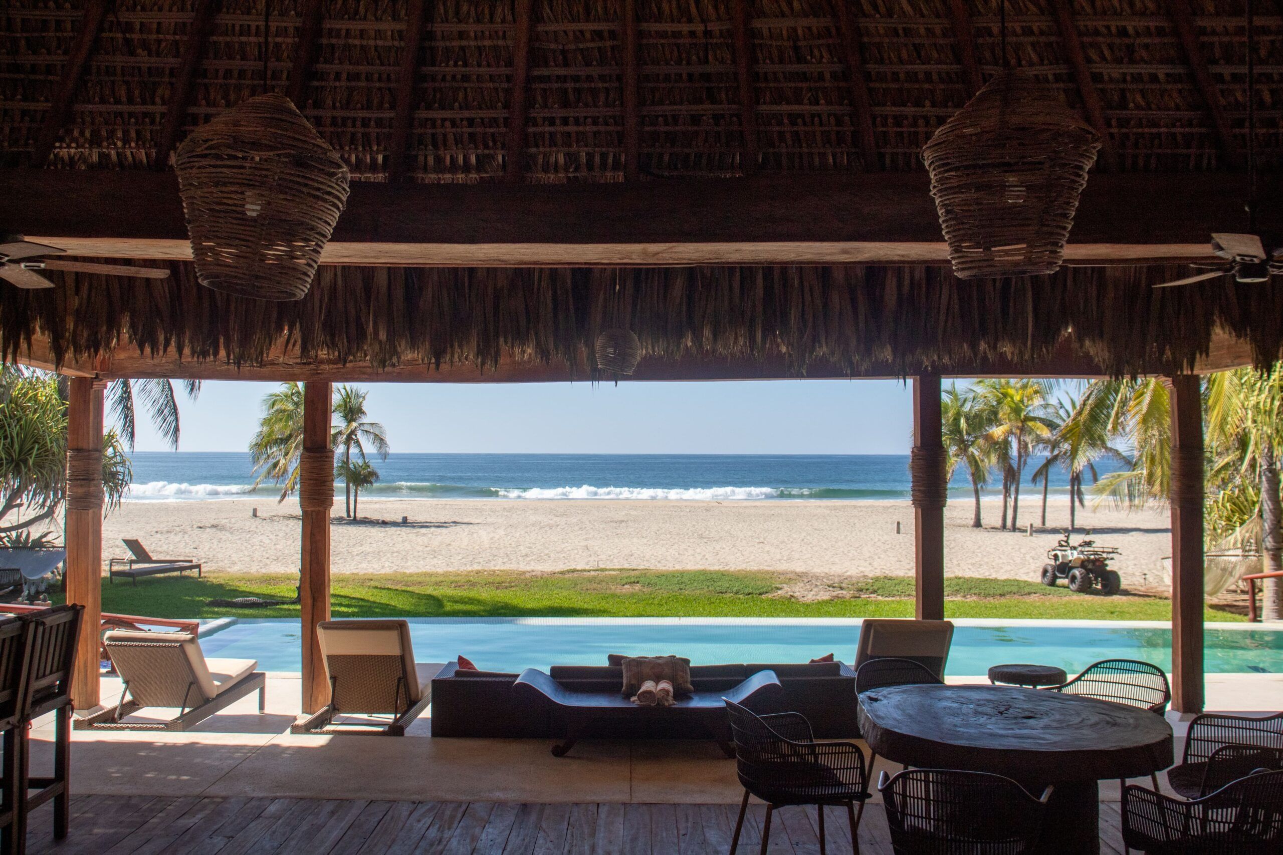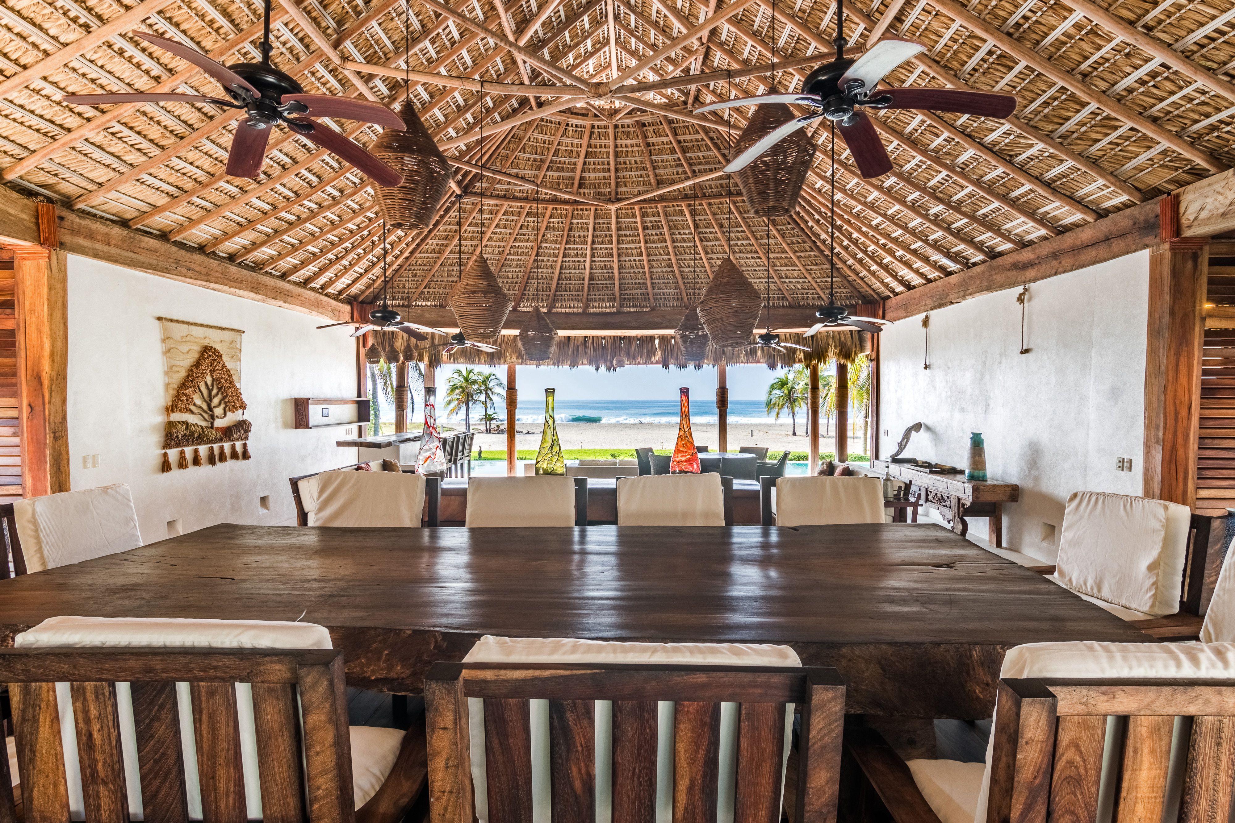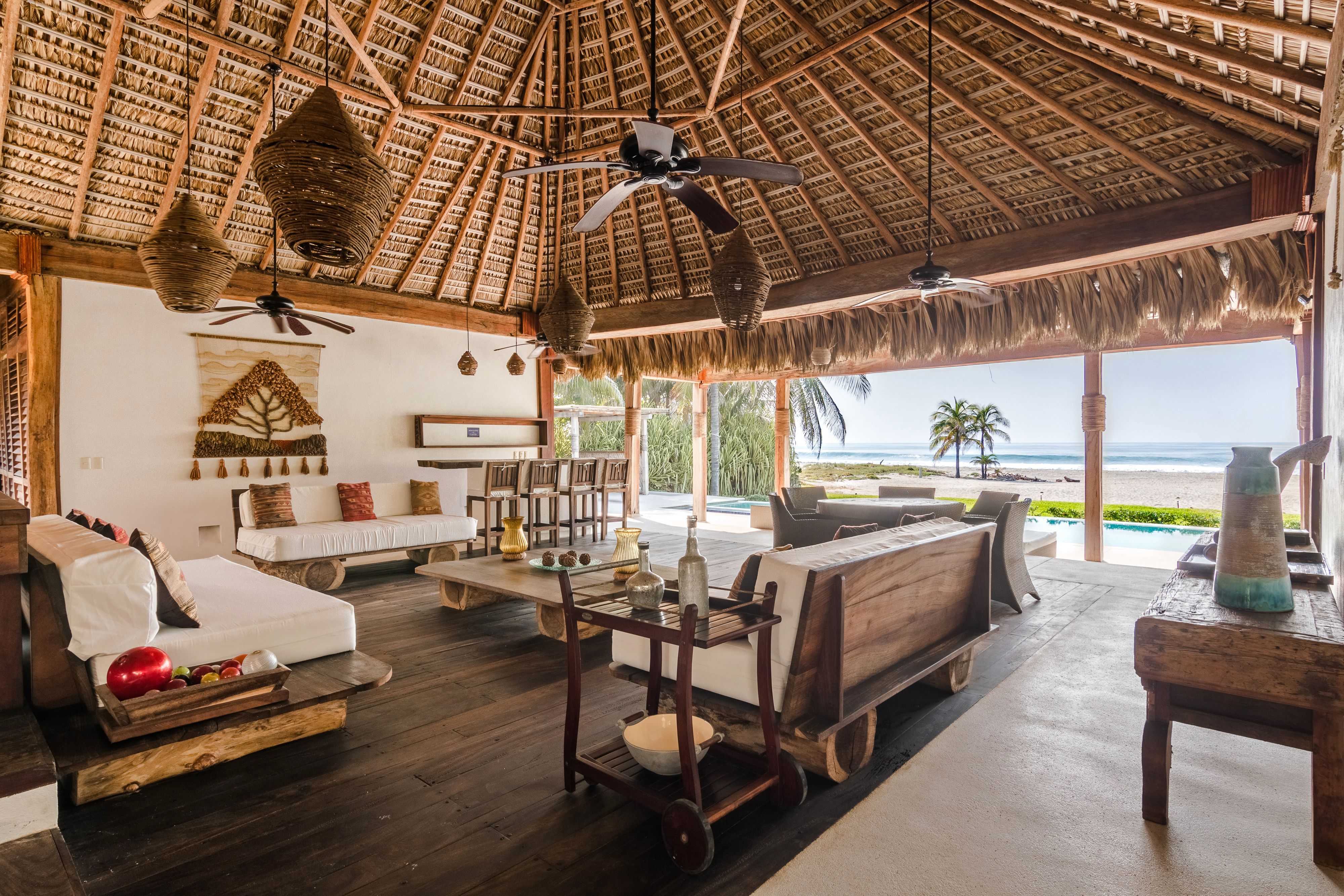 At this impressive home, nothing stands between you and the stunning Oaxacan coastline. Wake up to sea views from your bedroom (and maybe catch sight of the resident sea turtles). A dip in the pool or hot tub might be your idea of a perfect day, but there's the option of water sports on the semi-private beach, while little ones will love the indoor and outdoor play areas. Avid surfers, take note – you're just a short drive from the world-famous waves at Zicatela beach. You can also enjoy indulgent chef-prepared meals upon request for a fee.