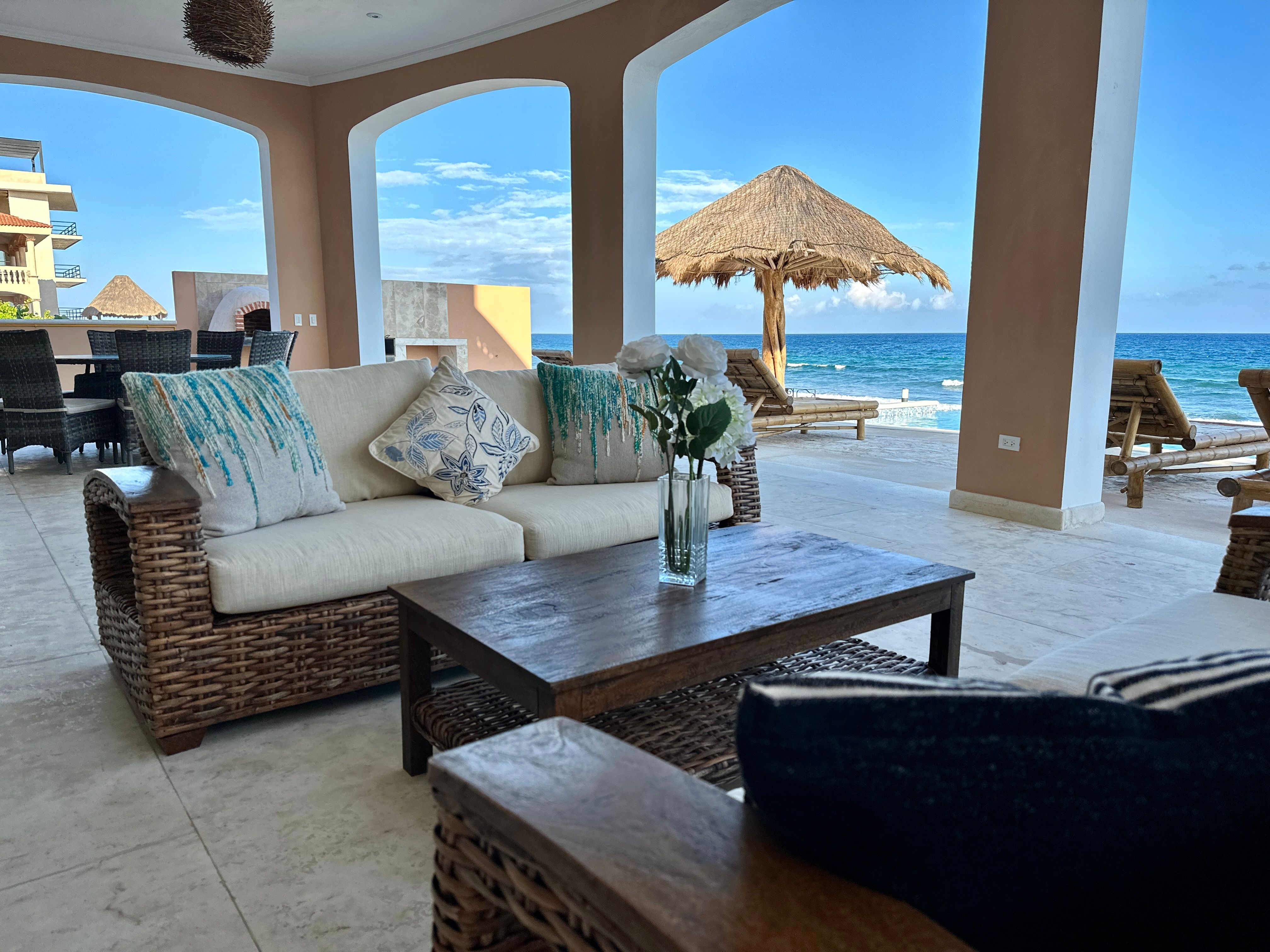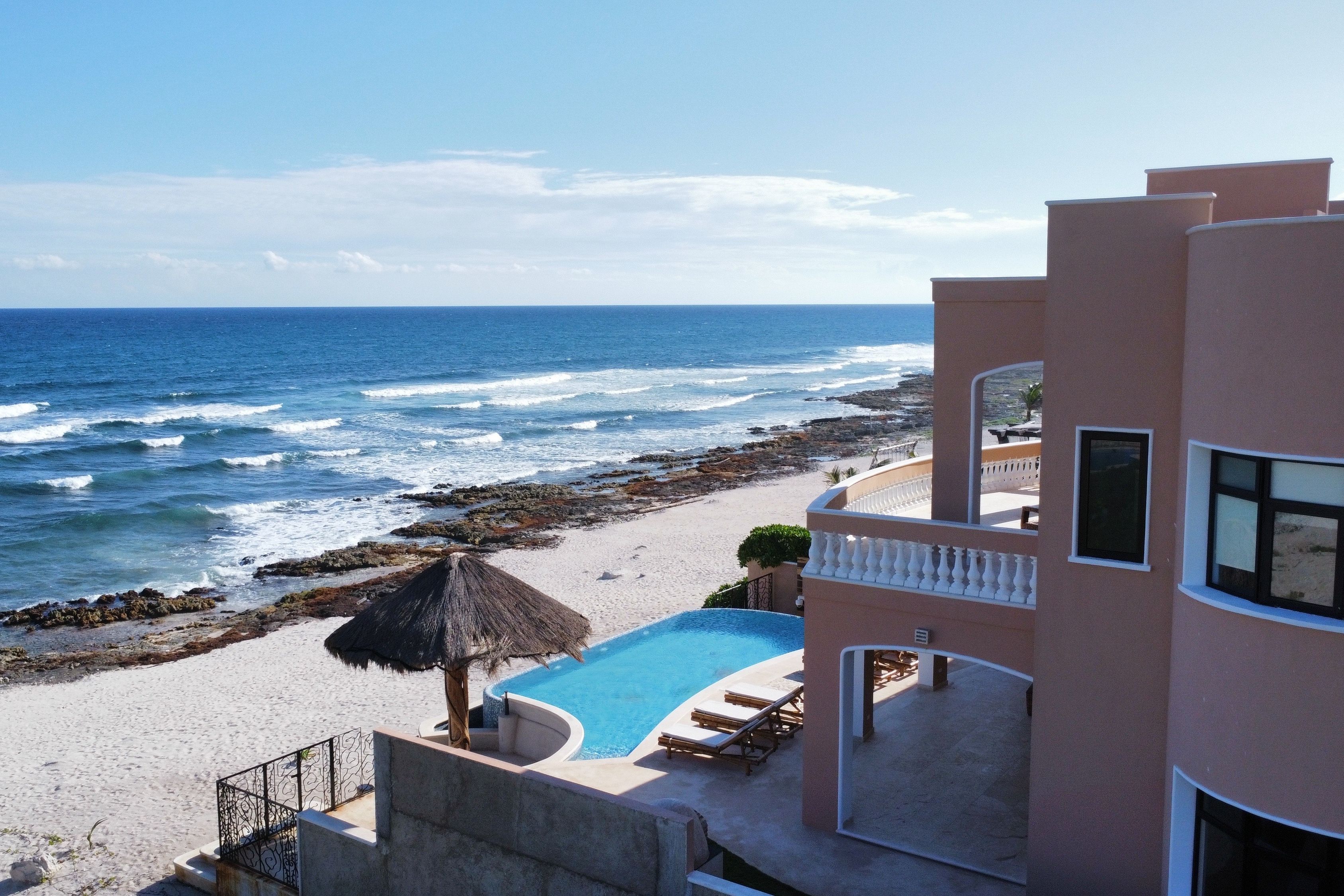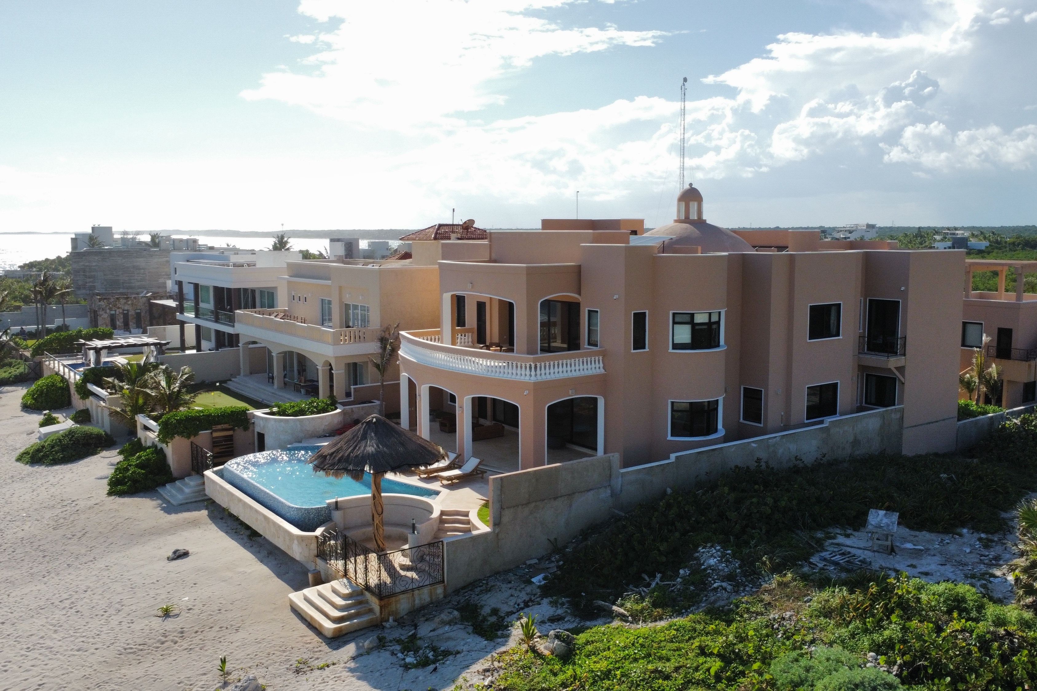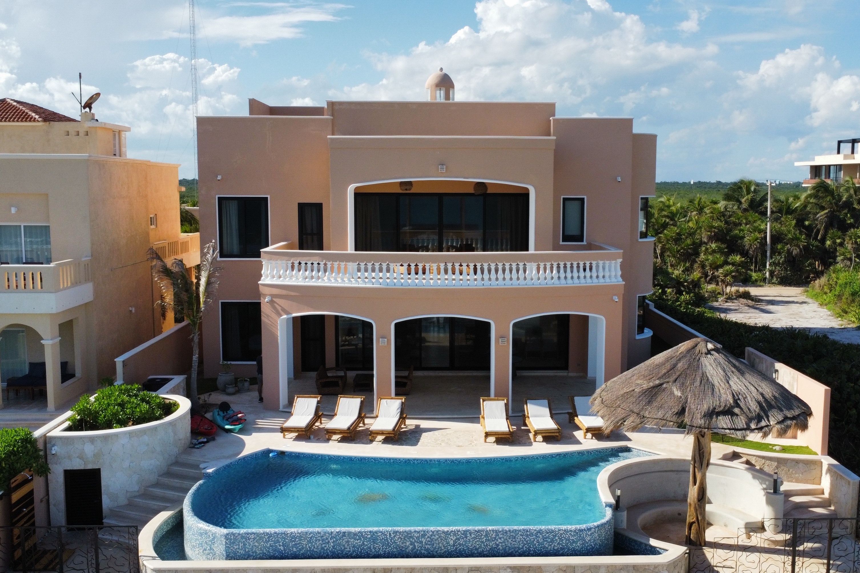 Nestled between mangroves and Tankah Bay in the heart of the ancient Mayan kingdom, this villa makes a stunning setting for family reunions or friendly get-togethers. You’ll find the infinity pool and the Caribbean sea both jostling for your attention out in front. Or, you may prefer to head up to the rooftop deck and sprawl out beneath the sun with a glass of Cuba Libre. We love the interior, too – each of the bathrooms is a marble palace, and the large dining room allows you to share your passion for authentic Mexican cuisine.