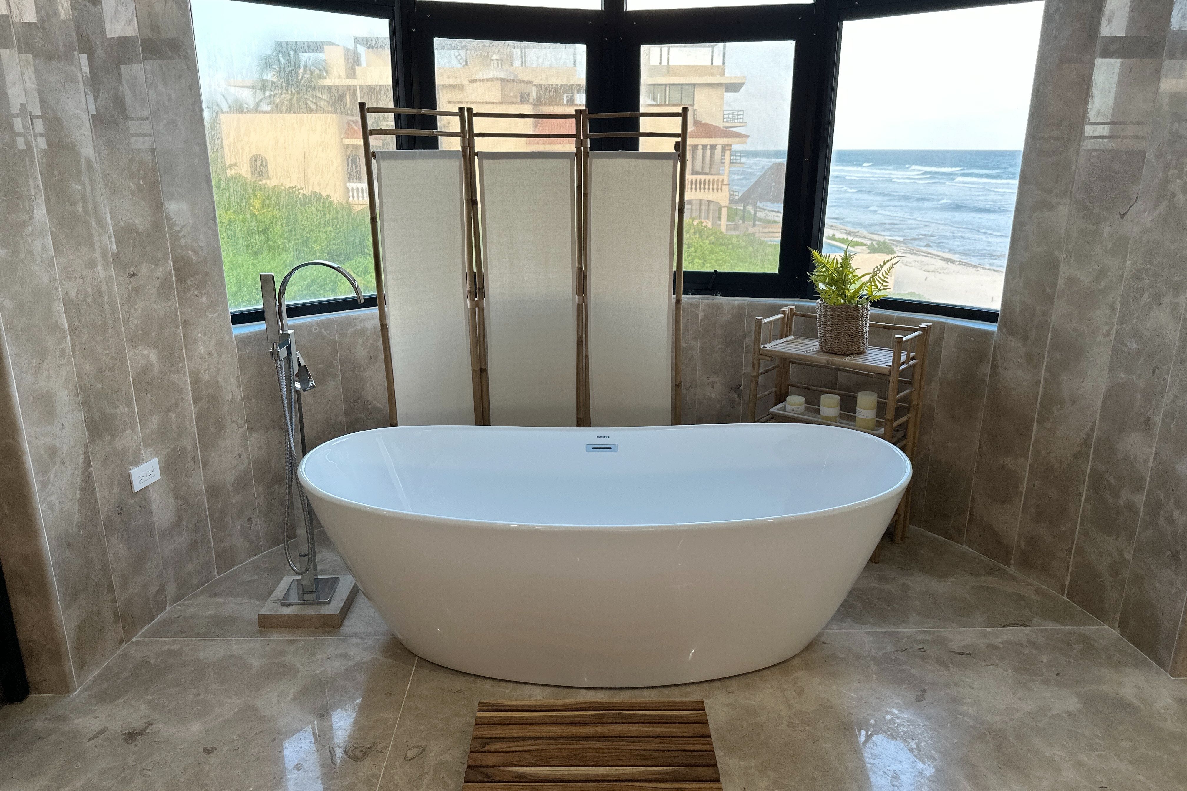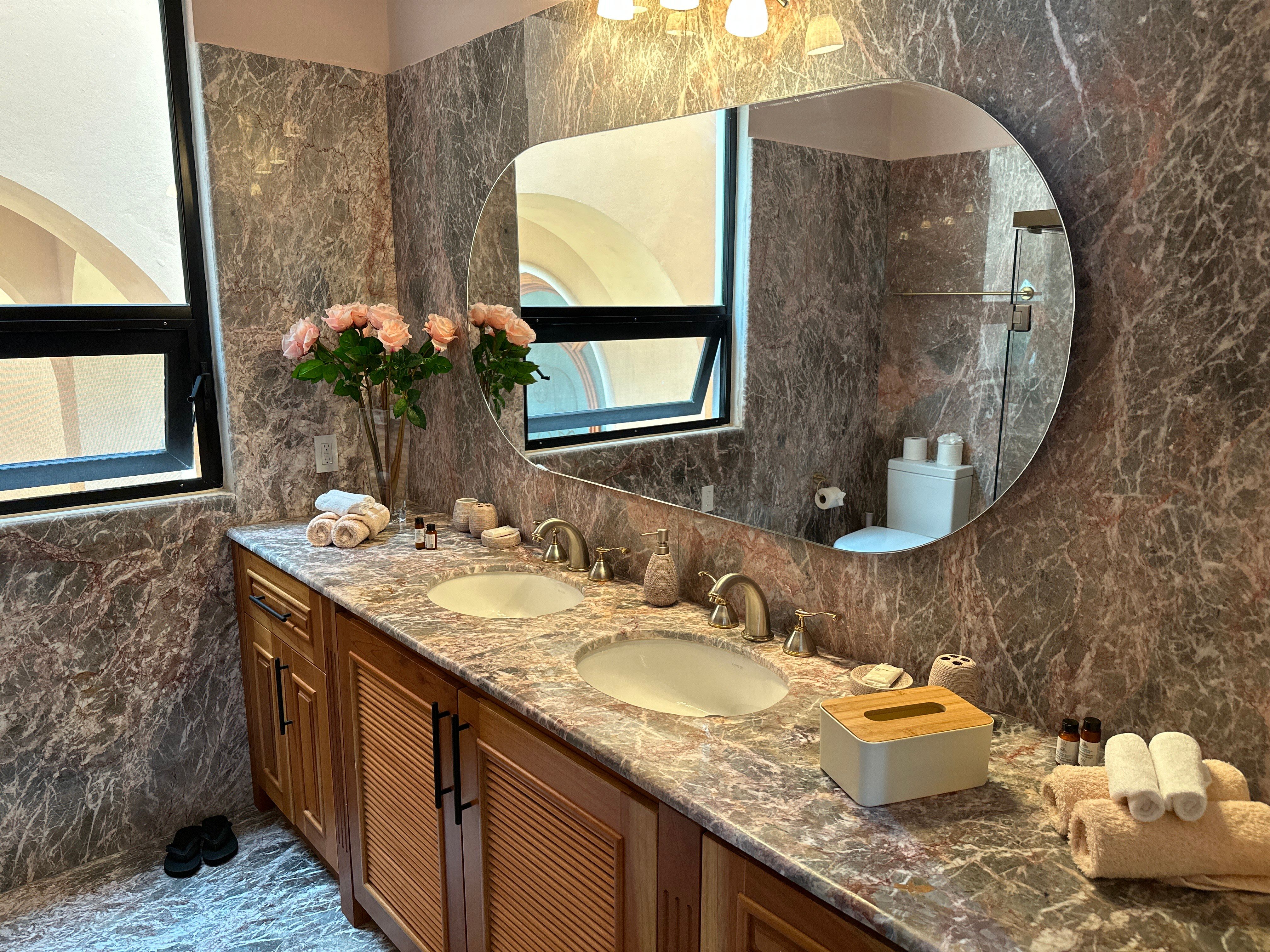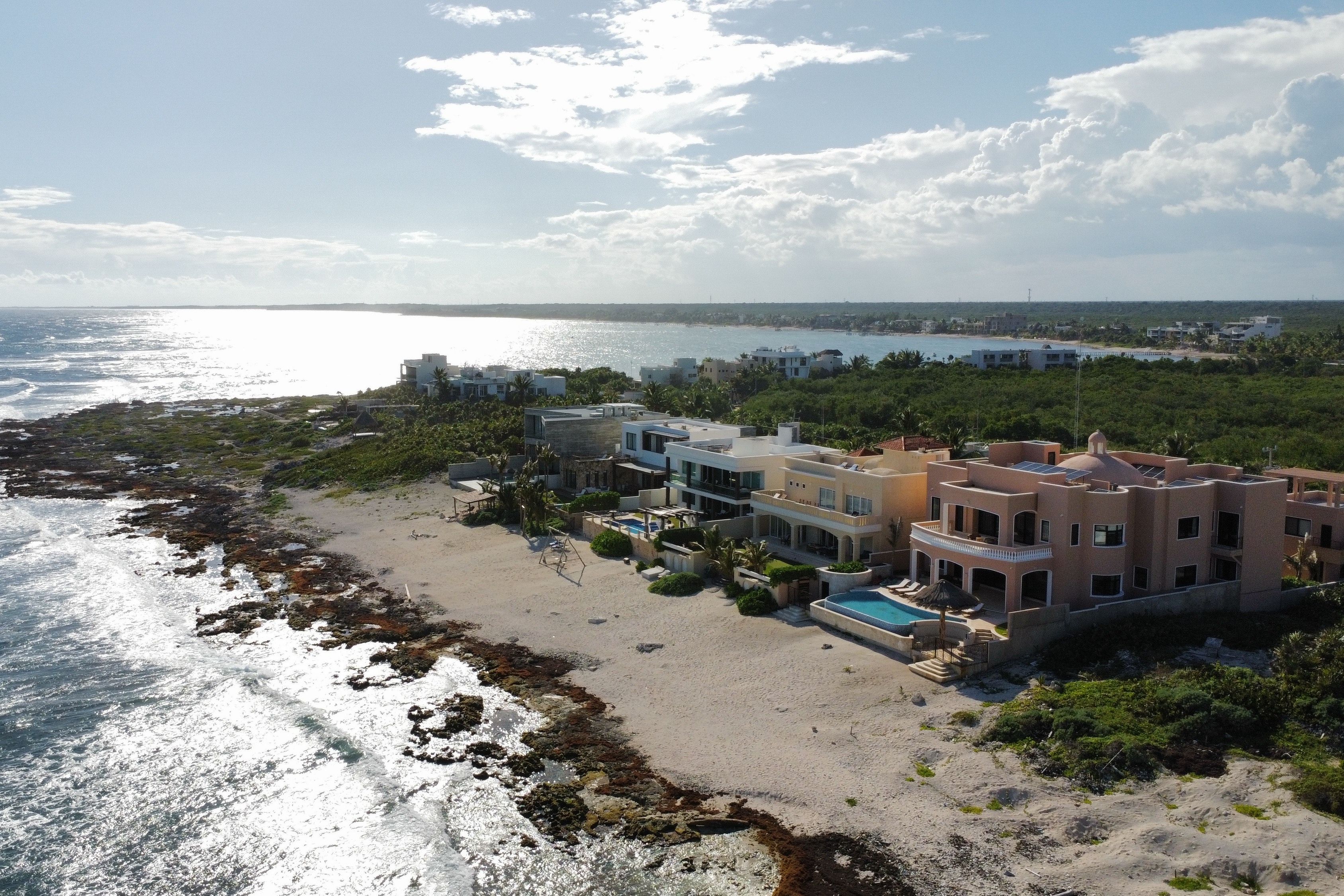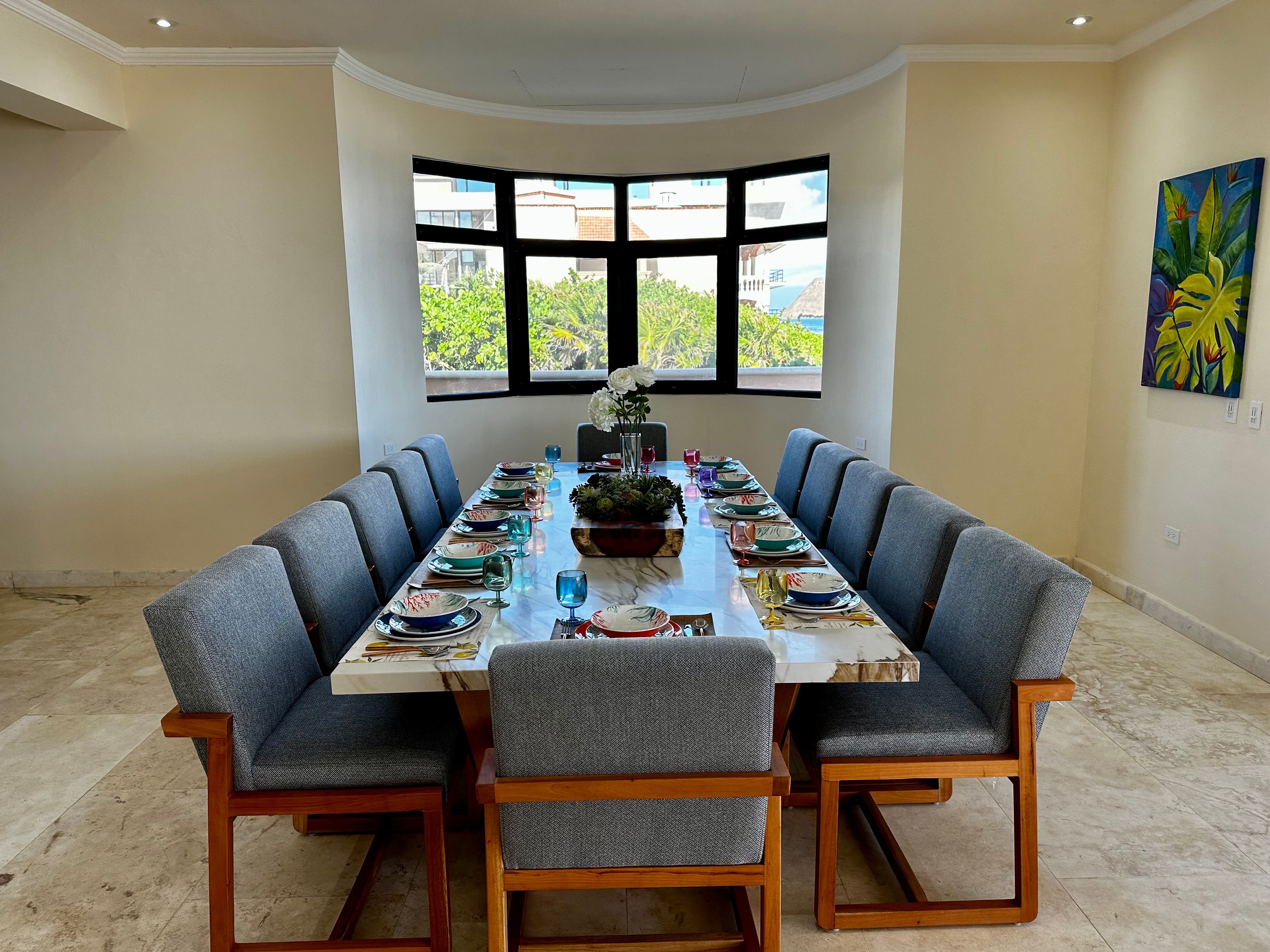 Nestled between mangroves and Tankah Bay in the heart of the ancient Mayan kingdom, this villa makes a stunning setting for family reunions or friendly get-togethers. You’ll find the infinity pool and the Caribbean sea both jostling for your attention out in front. Or, you may prefer to head up to the rooftop deck and sprawl out beneath the sun with a glass of Cuba Libre. We love the interior, too – each of the bathrooms is a marble palace, and the large dining room allows you to share your passion for authentic Mexican cuisine.