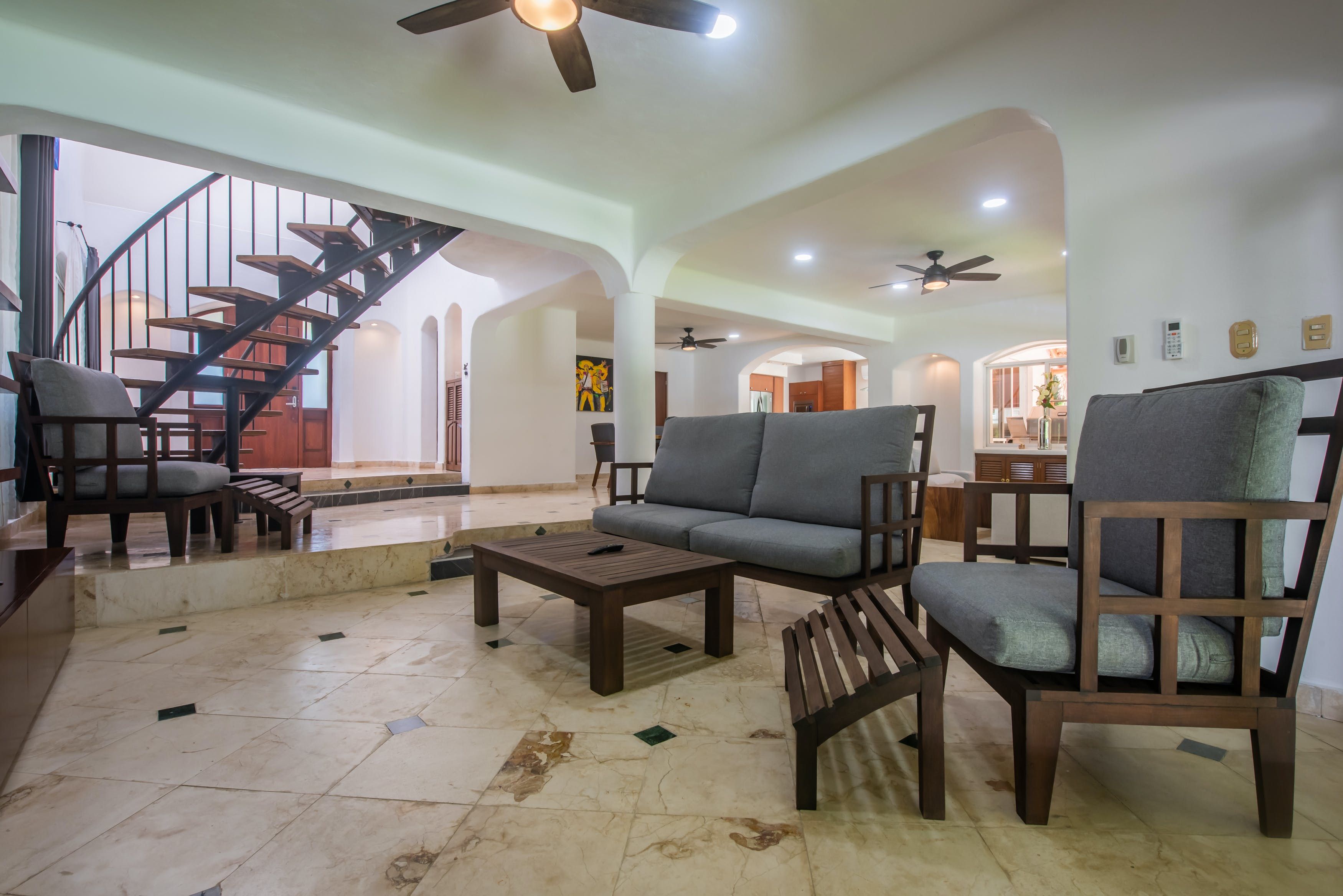This luxury villa is located in Playa del Carmen, just a short walk from the beach and the Hard Rock Golf Club. It has air conditioning throughout, a high speed internet connection, and a fully equipped kitchen. The villa also has a private pool, a barbecue, and a terrace.
