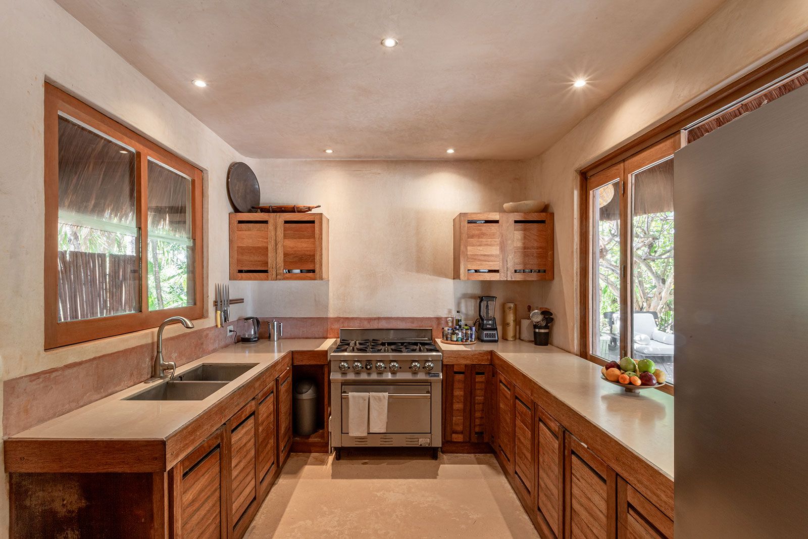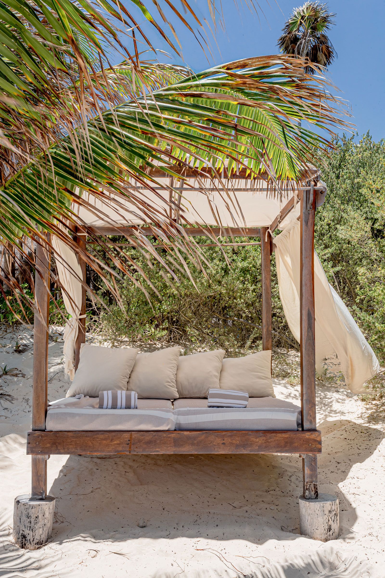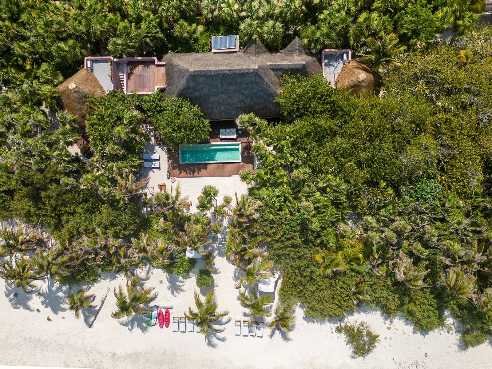 Imagine waking up and stepping outside onto your own private beach. Fortunately, dreams do come true at this unique oceanfront retreat in the Sian Ka’an Biosphere Reserve. Combining luxury and sustainability, you’ll find all the elements you could need to slow down and savour blissful days at home. Enjoy refreshing swims in the pool, watch unforgettable sunsets from the beachside loungers, and tuck into three delicious meals a day prepared by your own private chef. There’s also a concierge service, a butler, and a housekeeper to ensure optimum relaxation. Plus, it’s just a short drive to Tulum and the nearest amenities.
