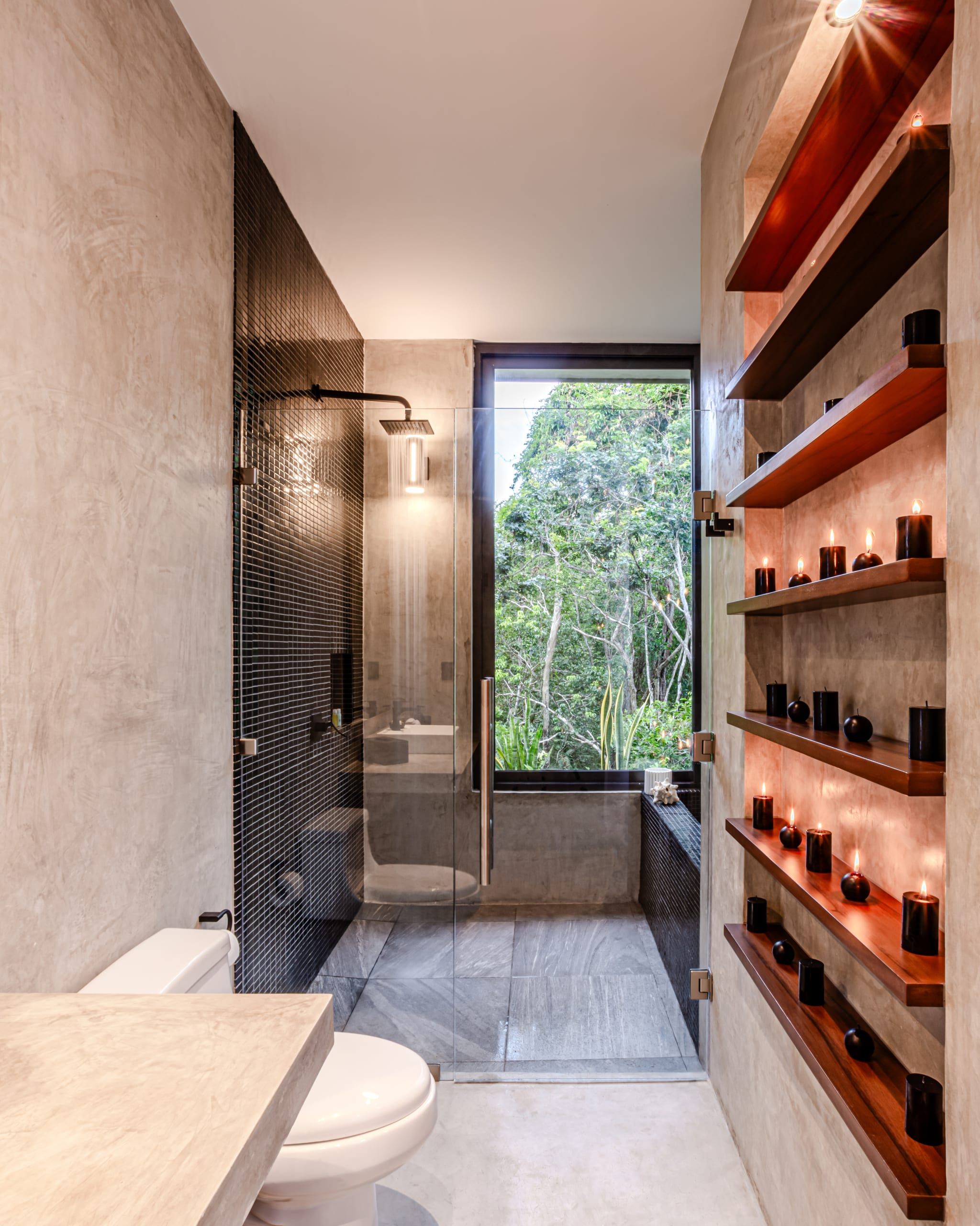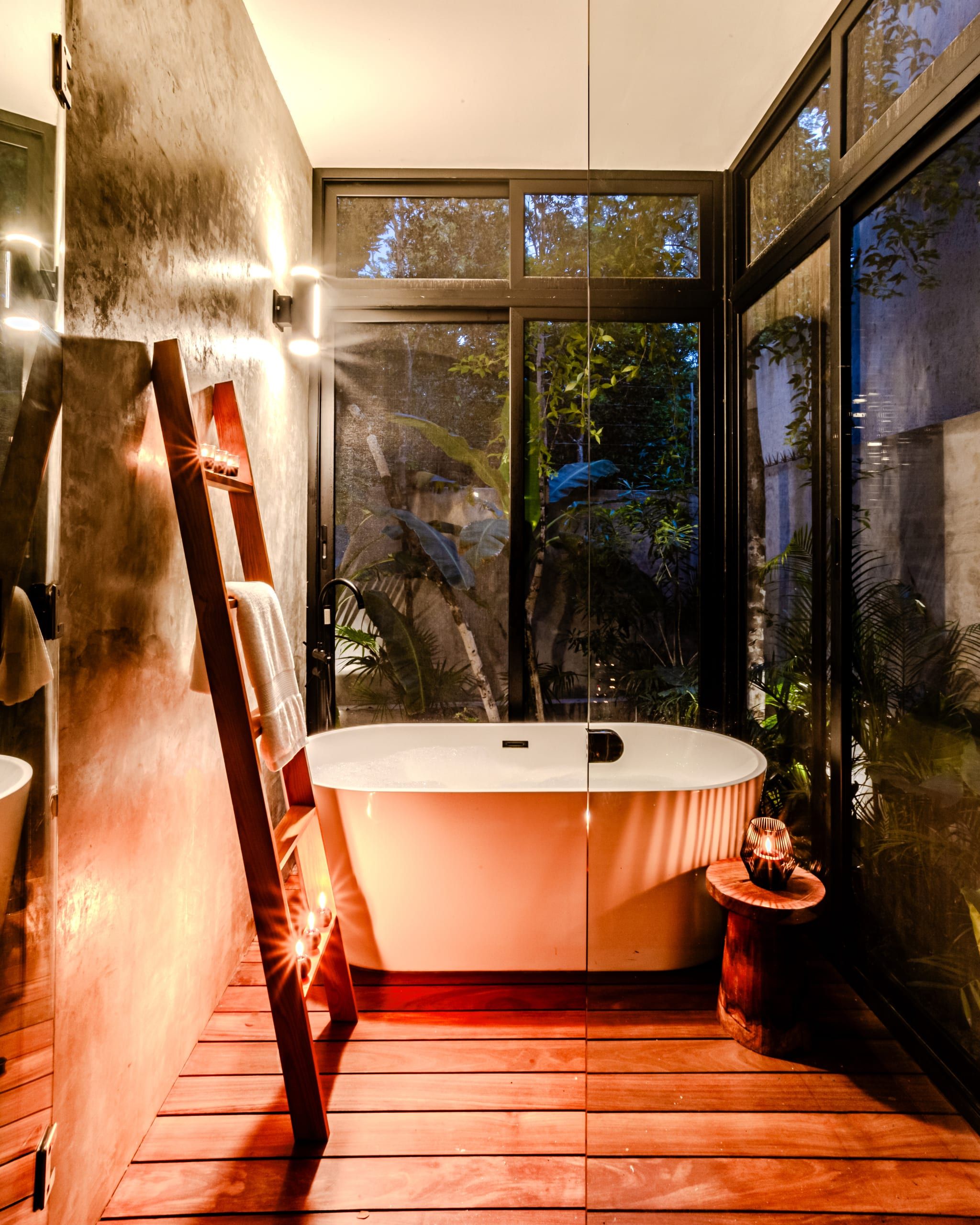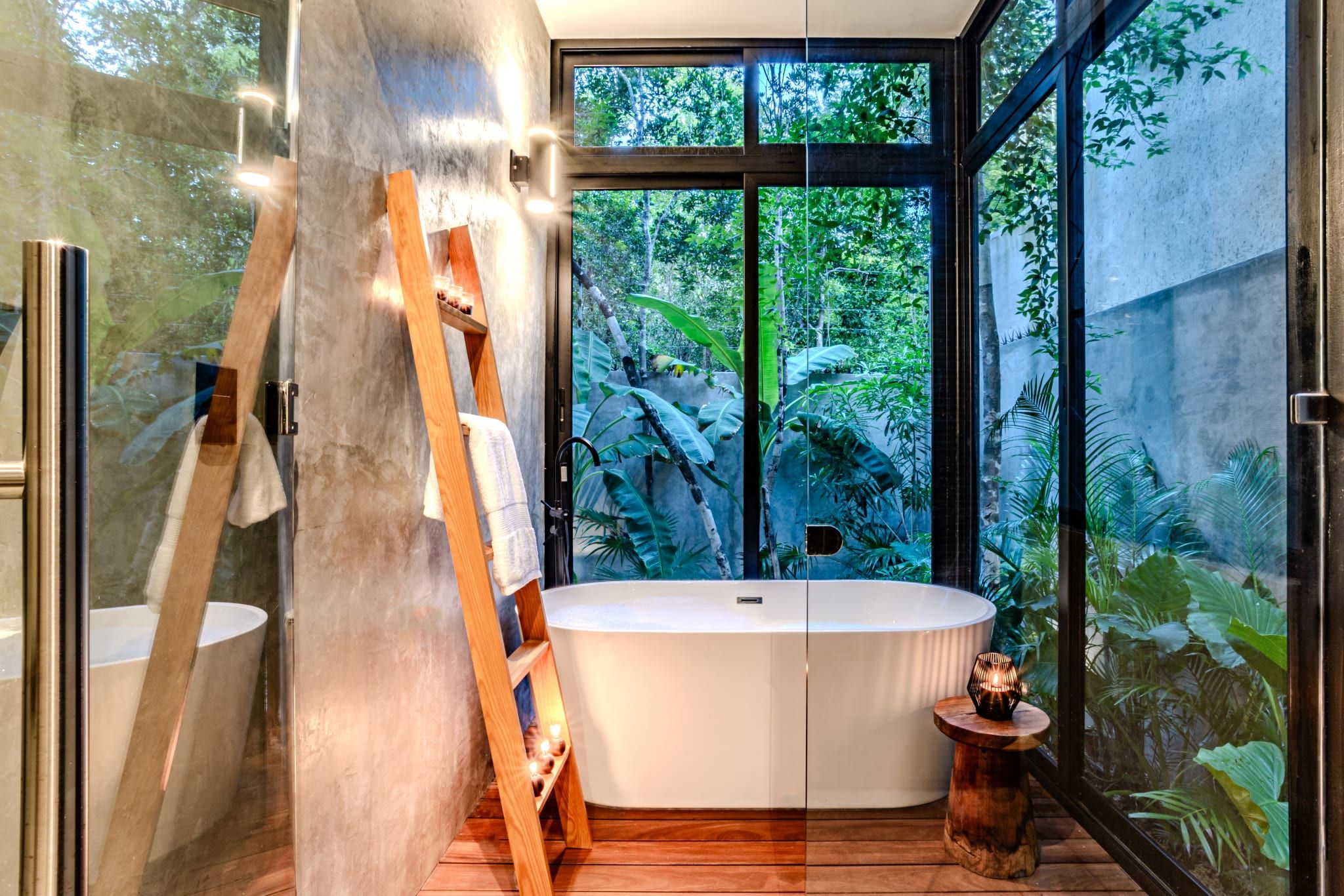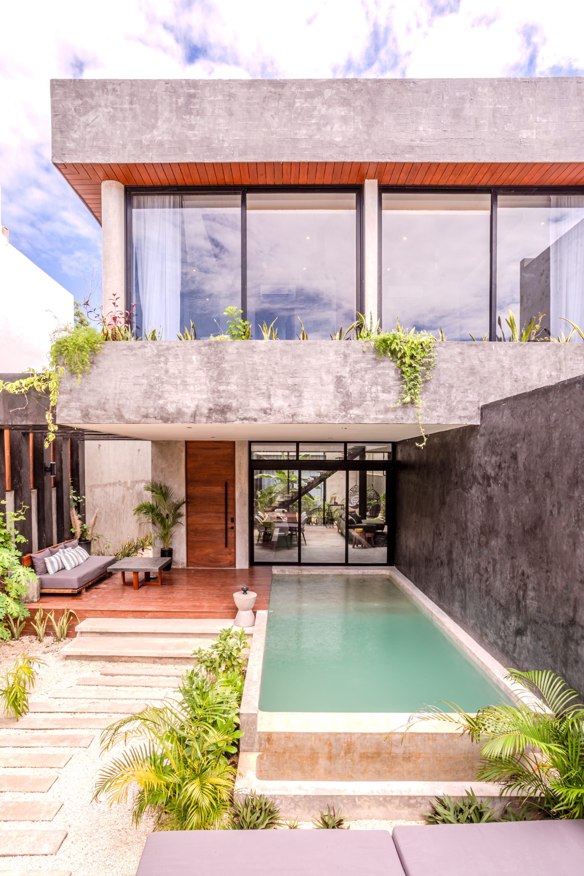 Beautiful and modern, this villa is an elegant oasis beside the jungle of Tulum. It’s a short drive from the beaches and close to Tulum's hotels and nightlife, but it feels a million miles away. Walls of glass and an open-concept layout make it a bright, welcoming space, and the state-of-the-art amenities make it comfortable and convenient. We love the open-air atrium, with its hanging hammock chairs and fountain – it’s particularly romantic in the evening. Outside, a private pool and oversized sunbeds await for relaxing days in the sun.